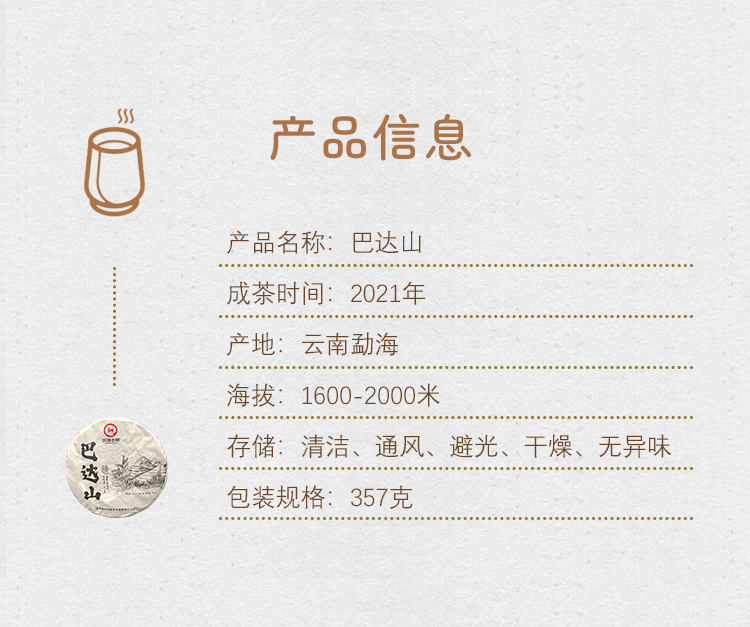生普 | 2021年洪海古树 巴达山 357g/饼