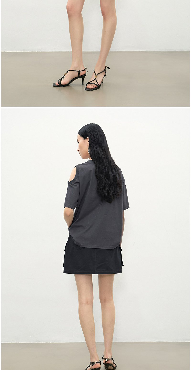 NEELLY纳俪商场同款夏季新款时尚露肩短袖T恤女简约百搭休闲上衣N25053T01166