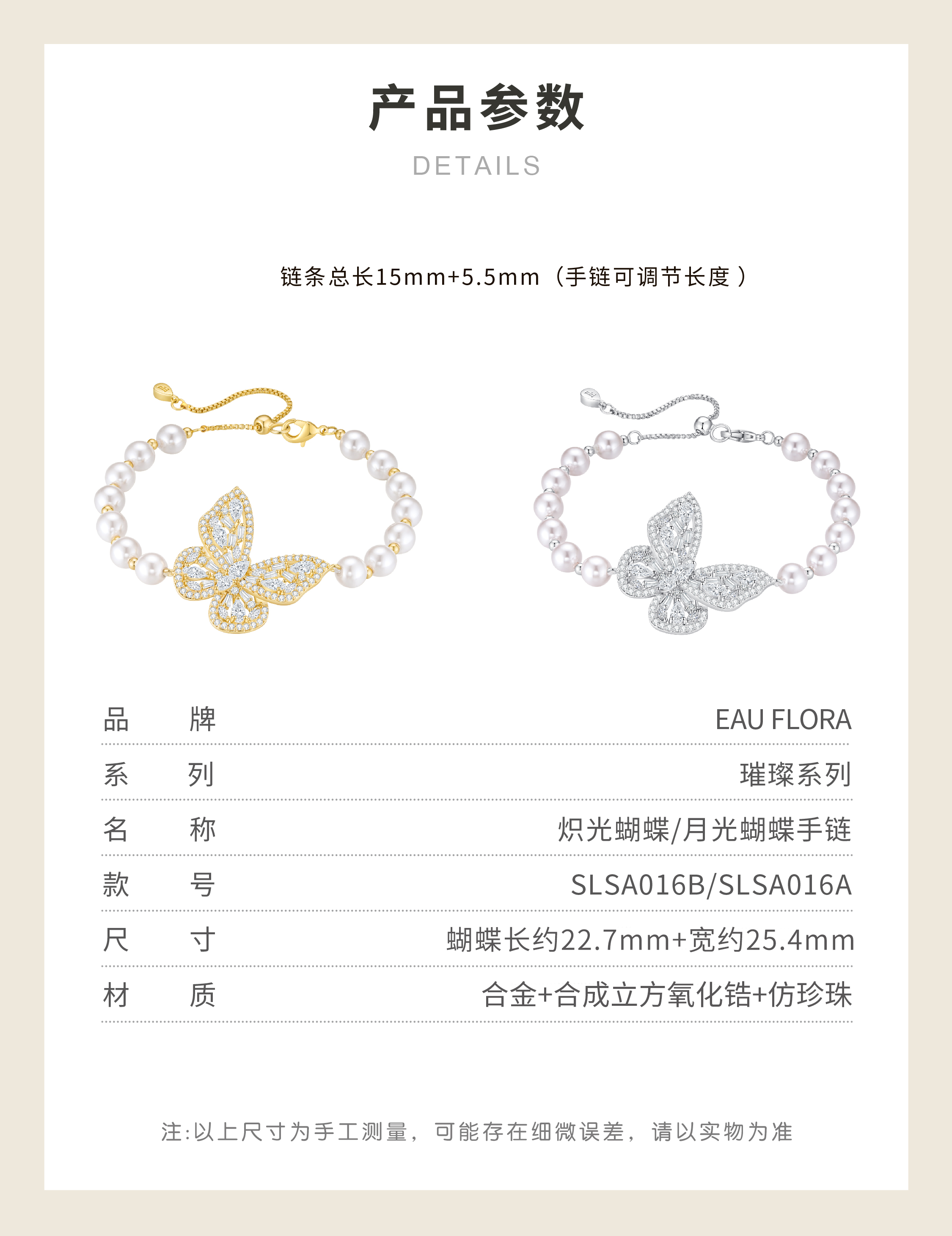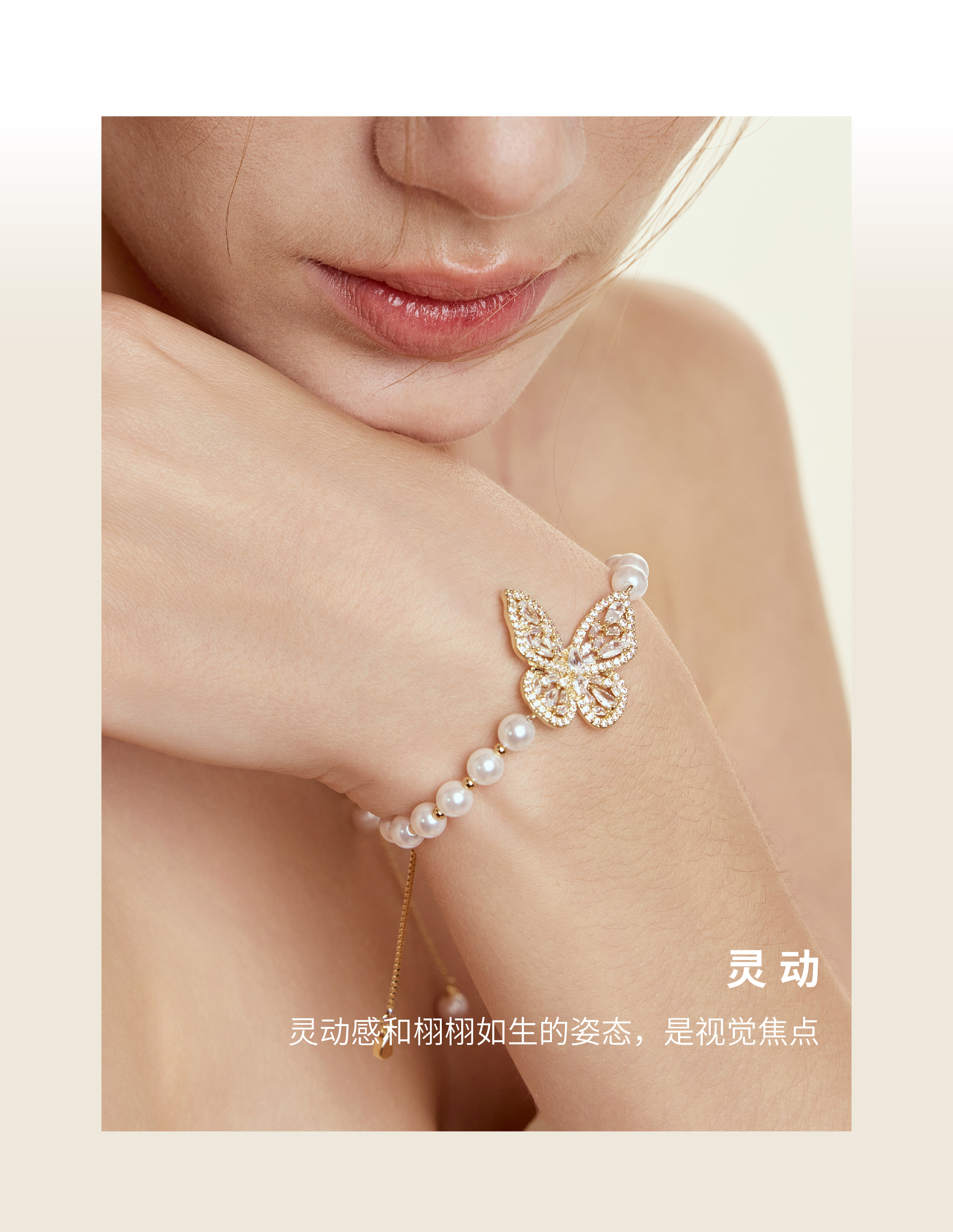 【炽光蝴蝶|月光蝴蝶】仿珍珠蝴蝶手链·金银双色