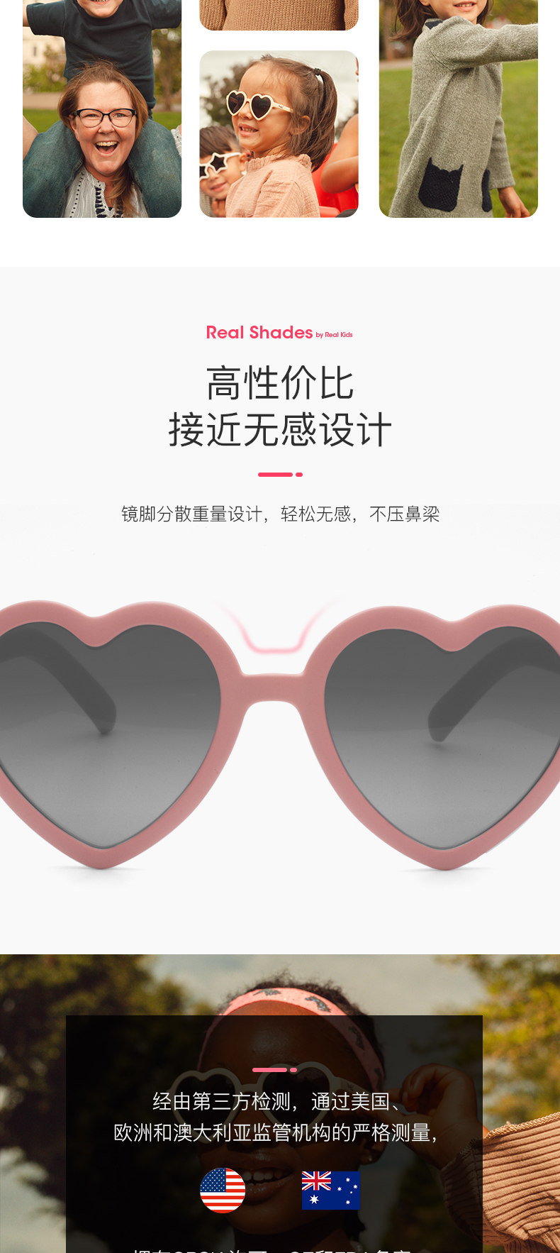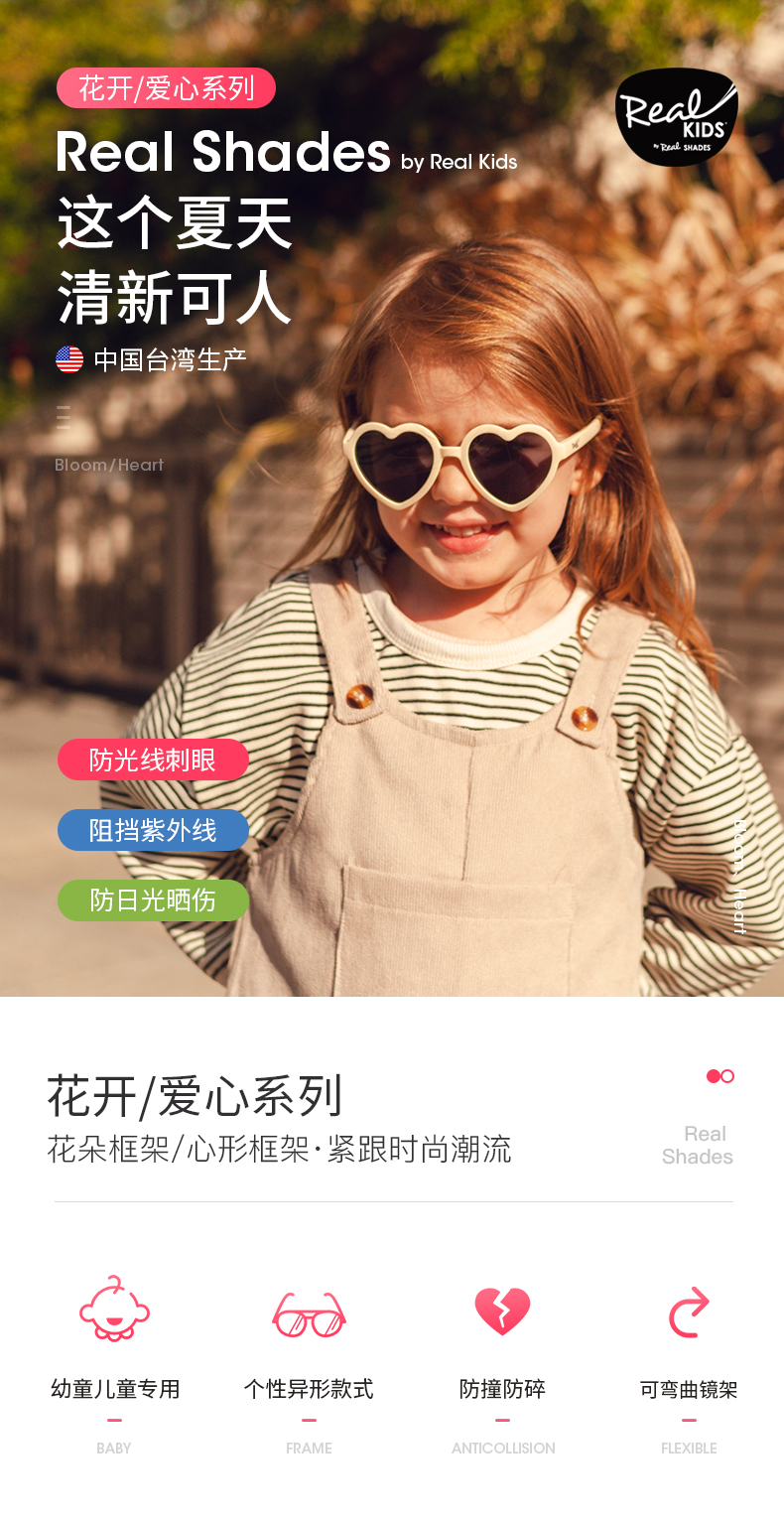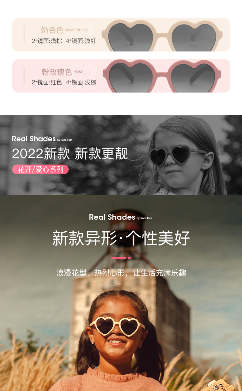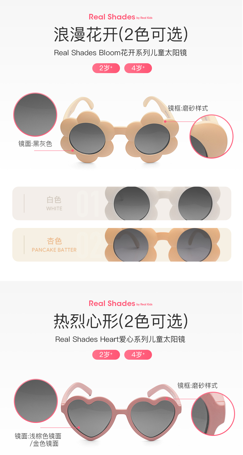 美国Real Shades专业儿童花开系列爱心系列太阳镜FlowerStyle & HeartStyle Flexible Frames with Smoke Lens