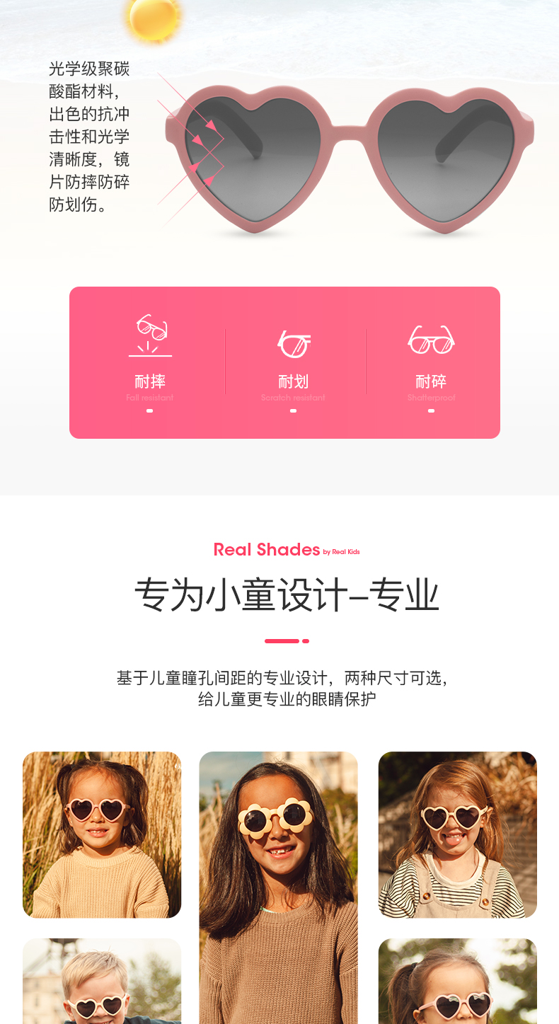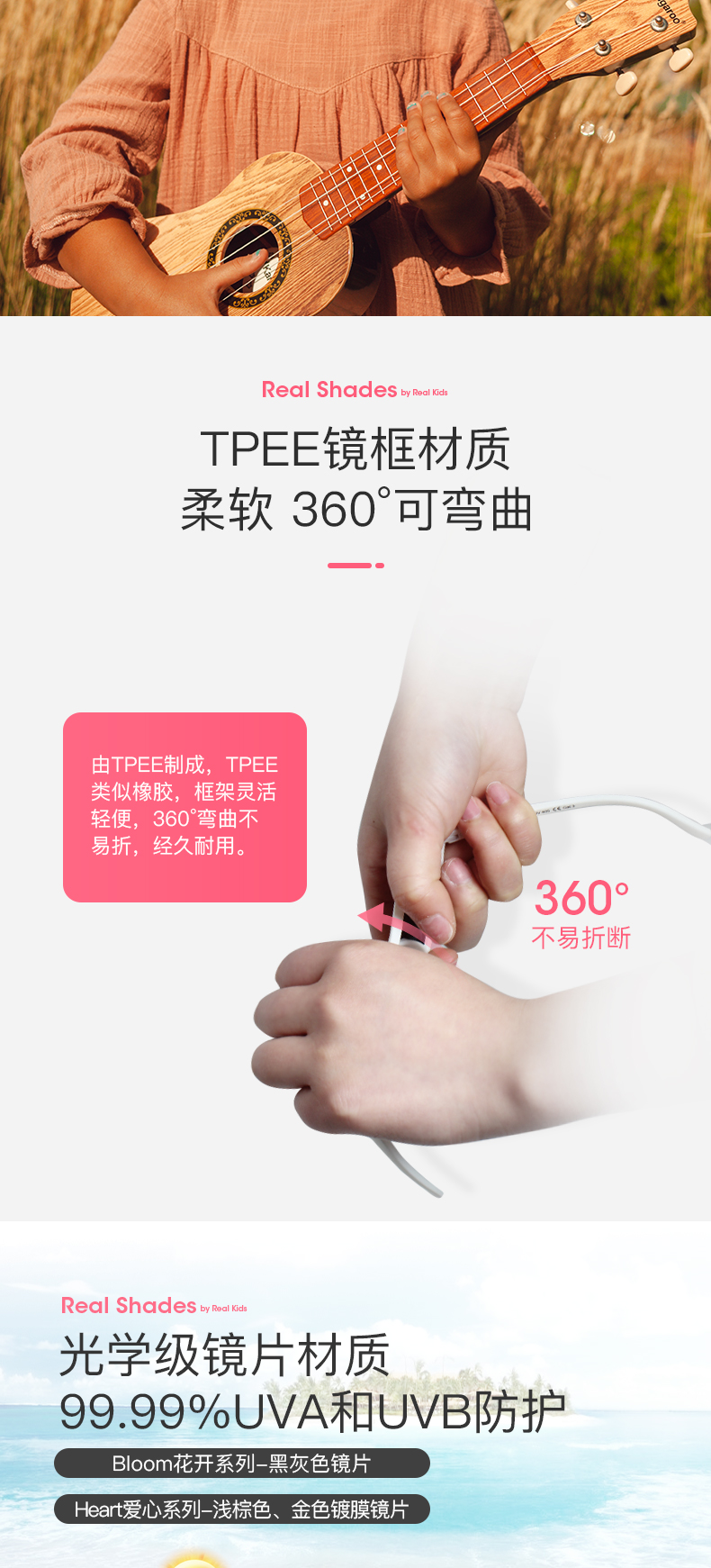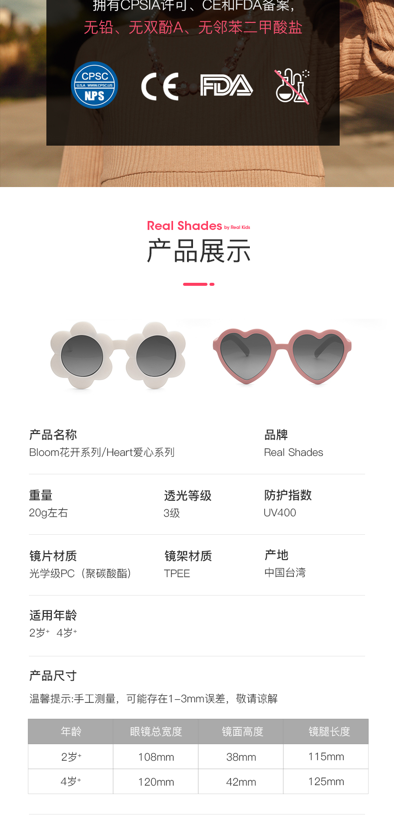 美国Real Shades专业儿童花开系列爱心系列太阳镜FlowerStyle & HeartStyle Flexible Frames with Smoke Lens