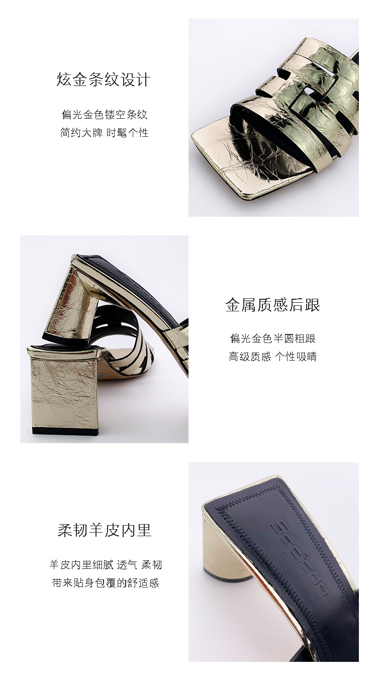 SAFICOO金属色时尚个性方头真皮凉鞋 商品图4