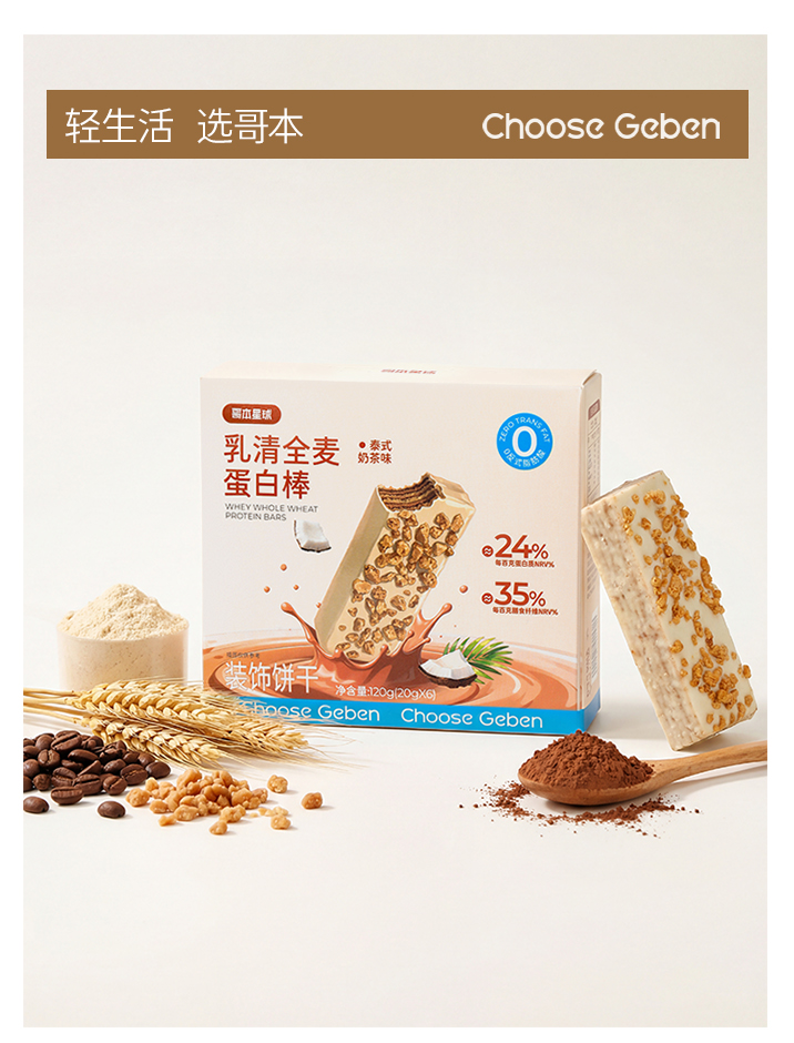 【共享分销】不添加白砂糖!全麦威化蛋白棒 泰式奶茶风味 醇香酥脆 每盒约120g