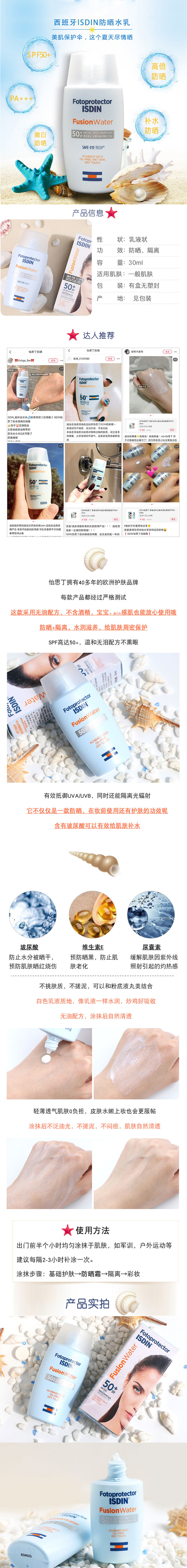 【现货】西班牙ISDIN怡思丁防水隔离防晒霜SPF50海边面部防晒乳50-60ml