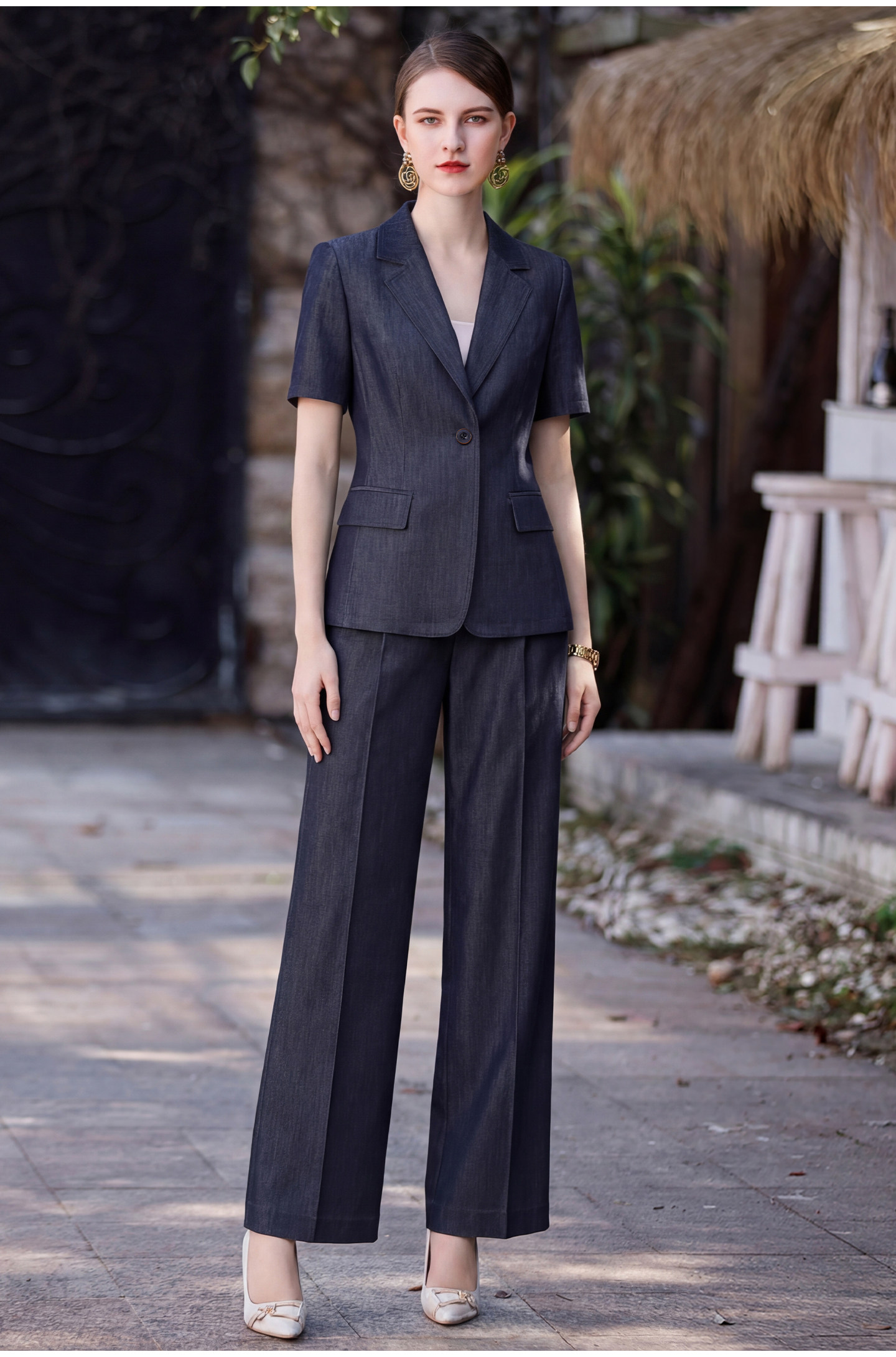 IWY/牛仔蓝夏季职场西装套裙套裤外套气质OL通勤上班高级感工作服26CPS967