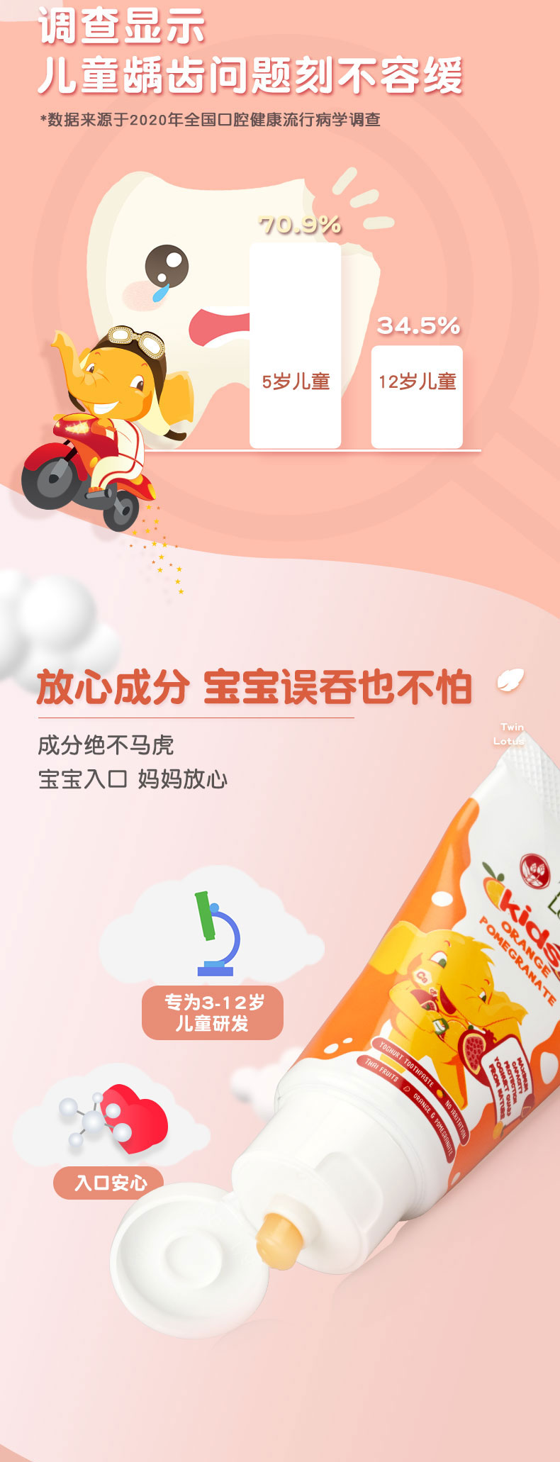 泰国双莲优乳益齿儿童牙 50g