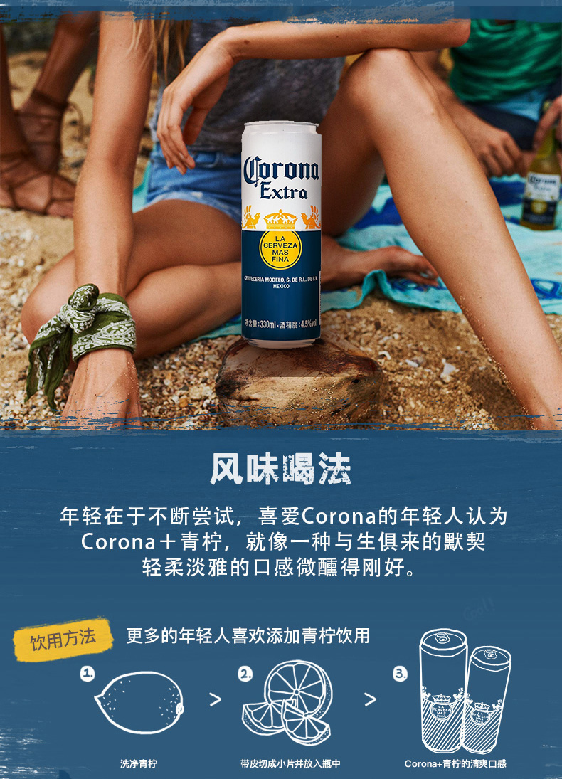 科罗娜啤酒310ml/012630 拉格啤酒黄啤酒口感清醇轻柔淡雅