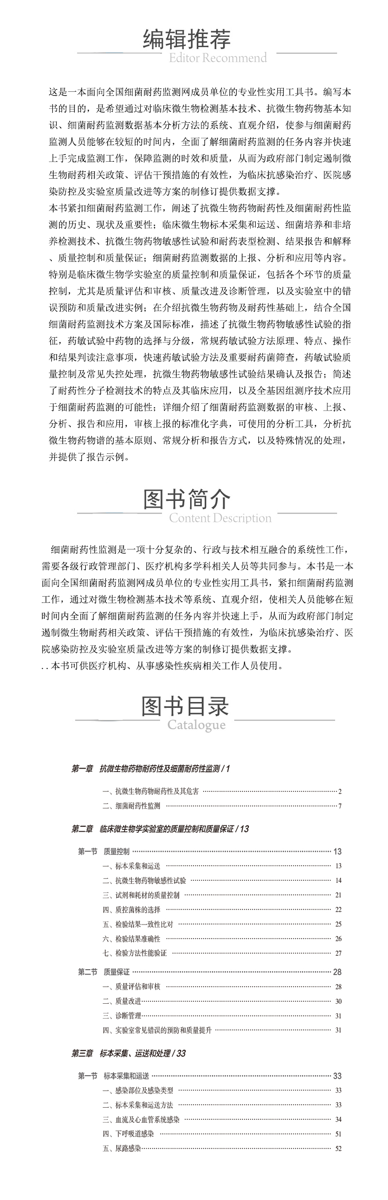 细菌耐药性监测是一项十分复杂的、行政与技术相互融合的系统性工作,需要各级行政管理部门、医疗机构多学科相关人员等共同参与。本书是一本面向全国细菌耐药监测网成员单位的专业性实用工具书,紧扣细菌耐药监测工作,通过对微生物检测基本技术等系统、直观介绍,使相关人员能够在短时间内全面了解细菌耐药监测的任务内容并快速上手,从而为政府部门制定遏制微生物耐药相关政策、评估干预措施的有效性,为临床抗感染治疗、医院感染防控及实验室质量改进等方案的制修订提供数据支撑。本书可供医疗机构、从事感染性疾病相关工作人员使用。