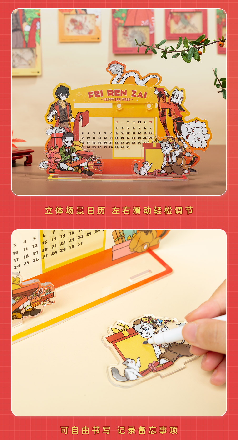 《非人哉官方店》龙重登场2024新年套装书签亚克力台历色纸春节挂饰礼物
