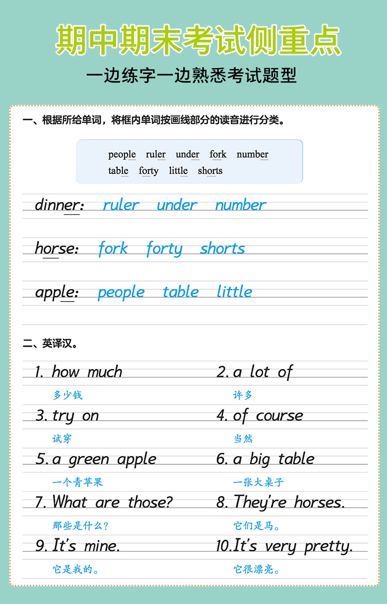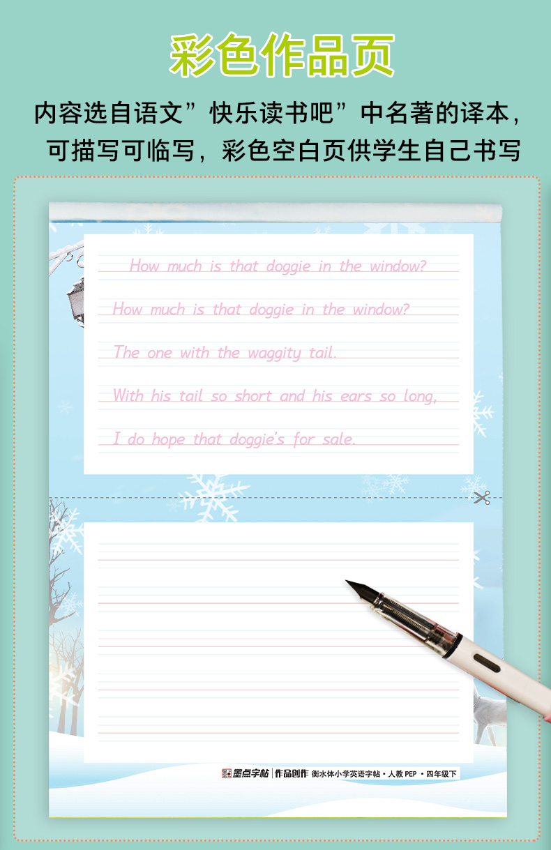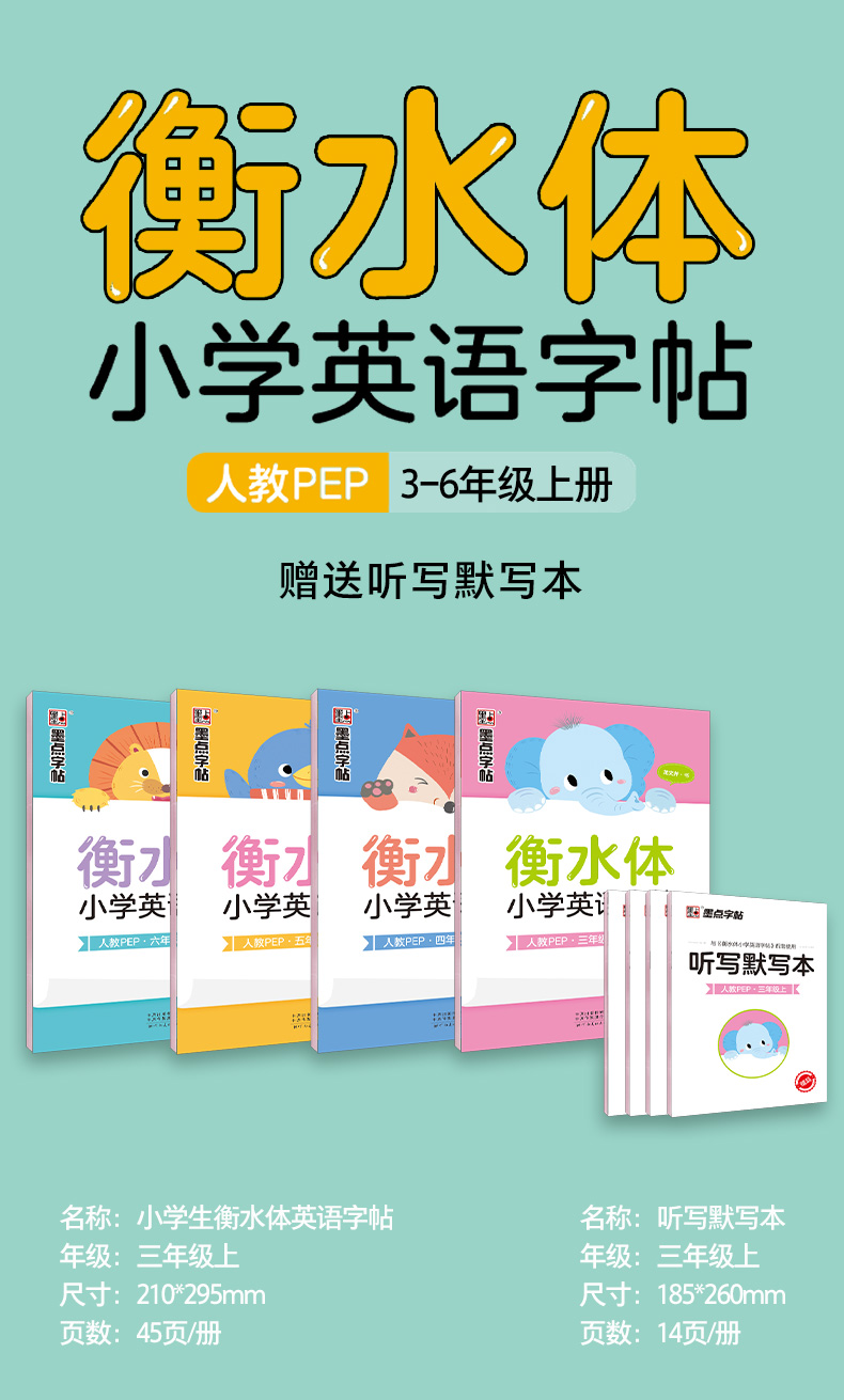 墨点三年级上册衡水体英语字帖四年级五六年级上册人教版英语同步练字帖新版小学生专用26个英文字母单词书写练习册临摹本每日一练