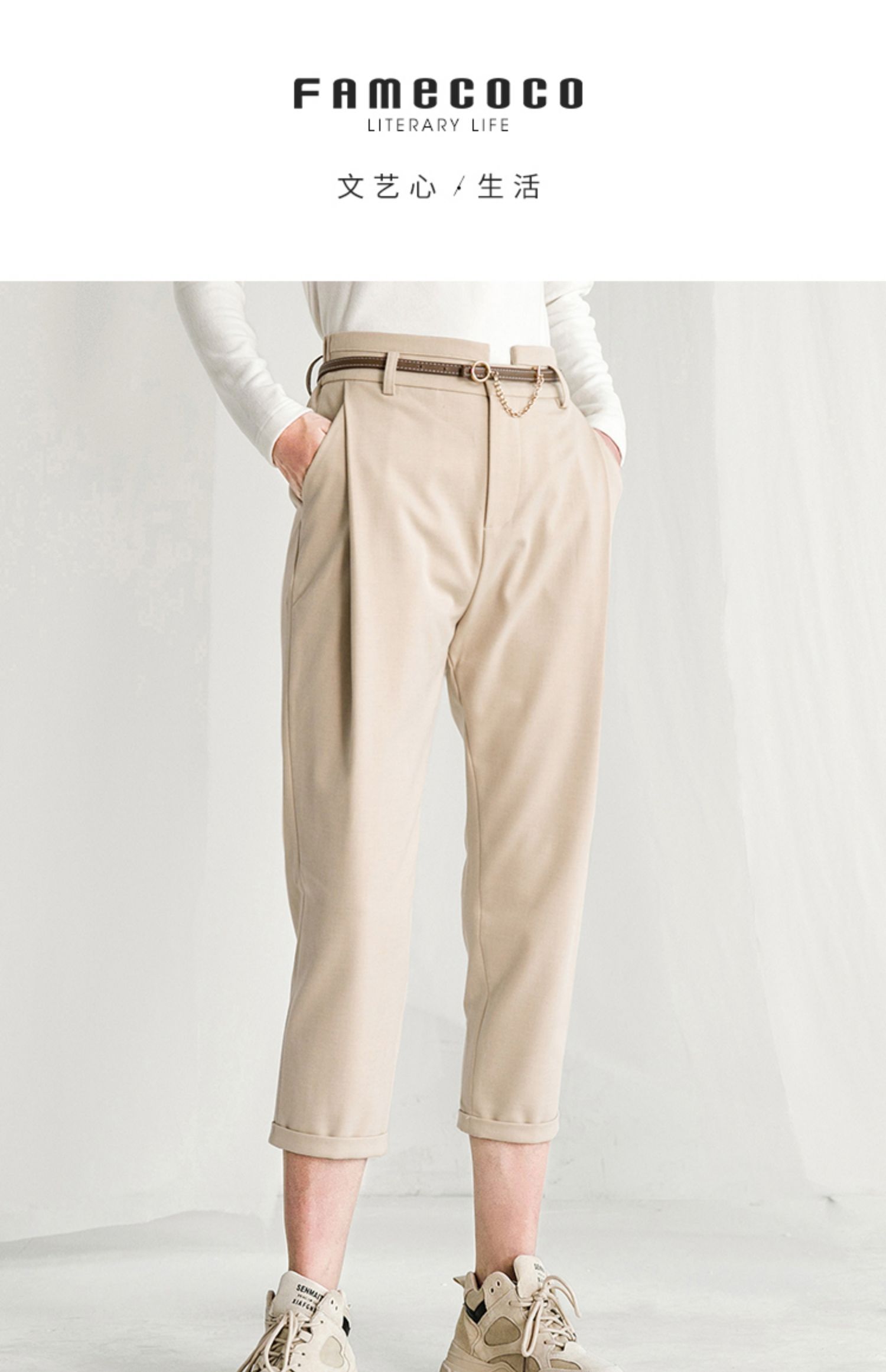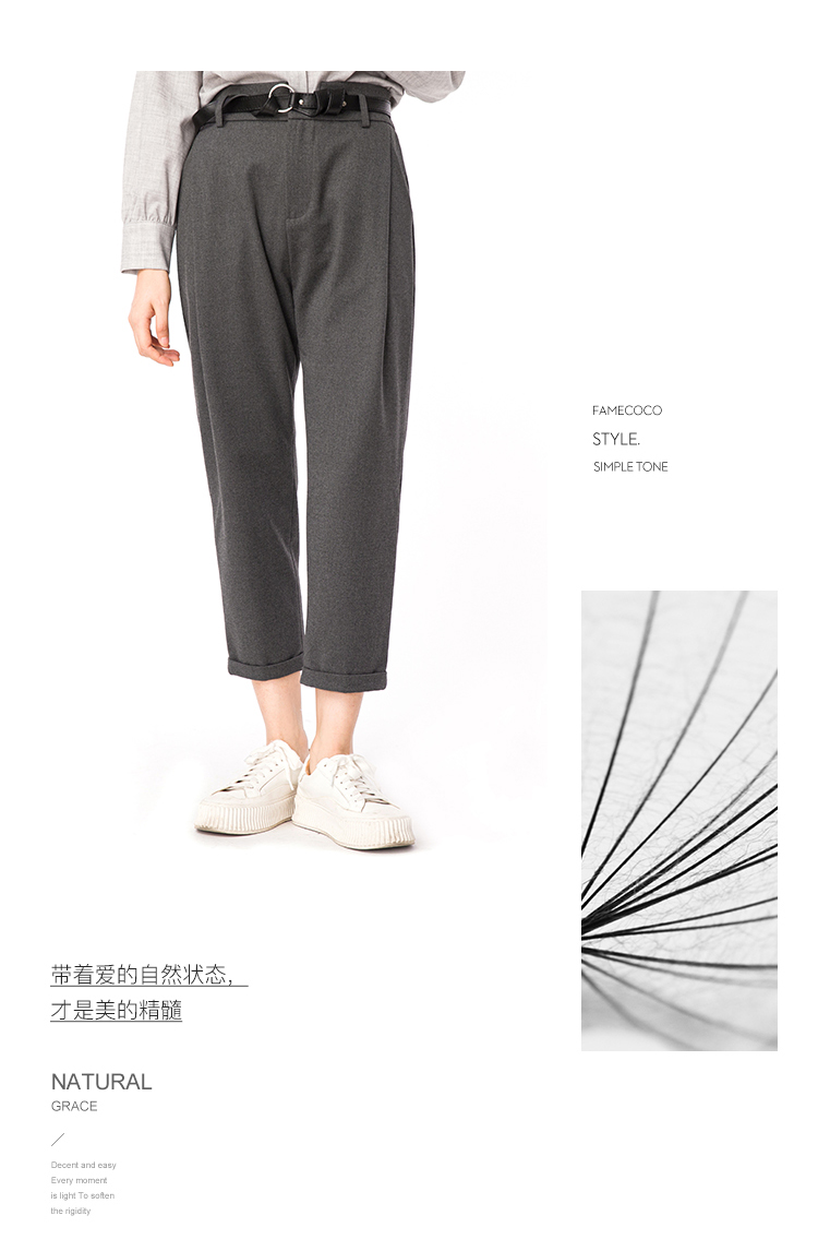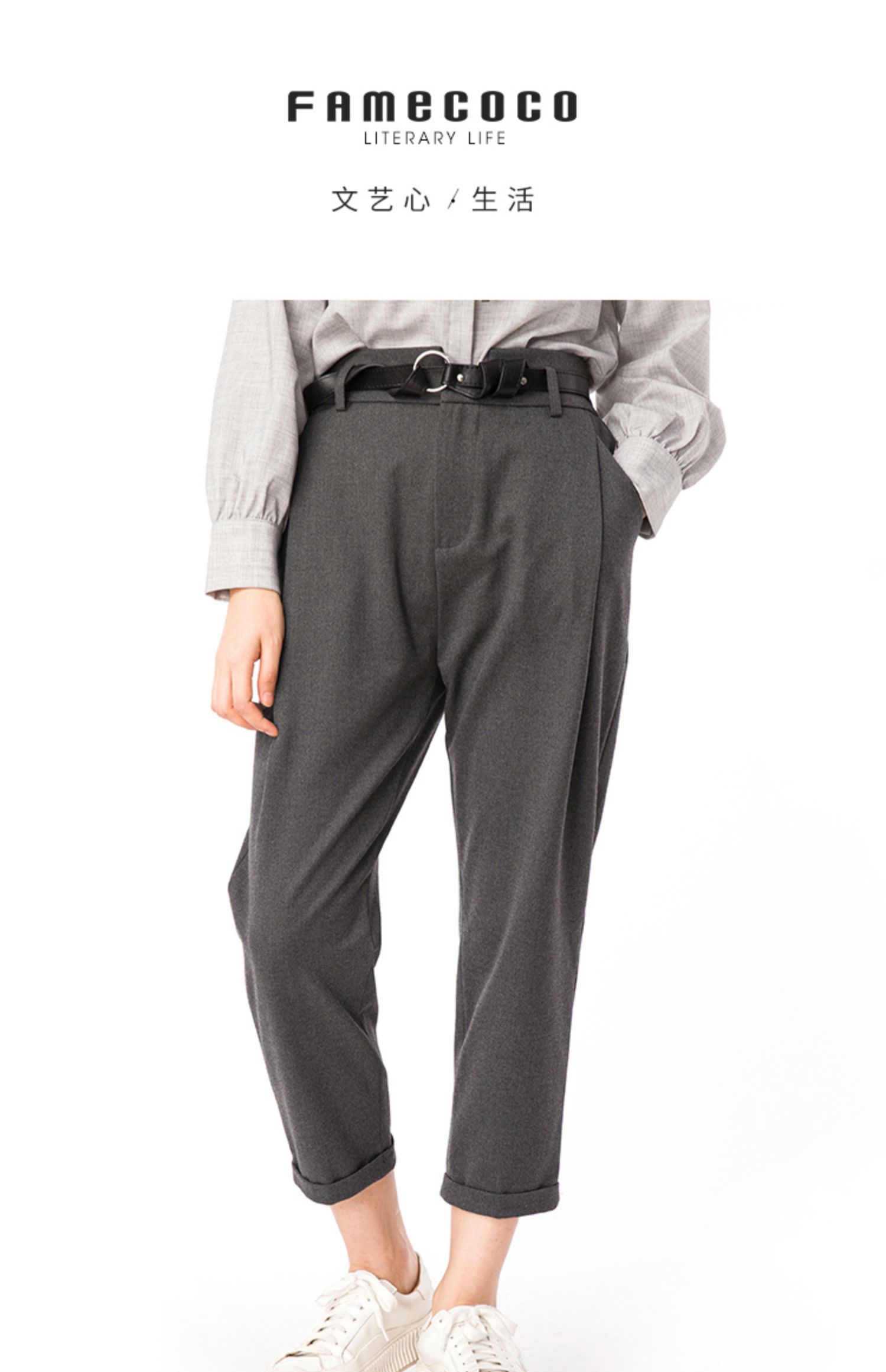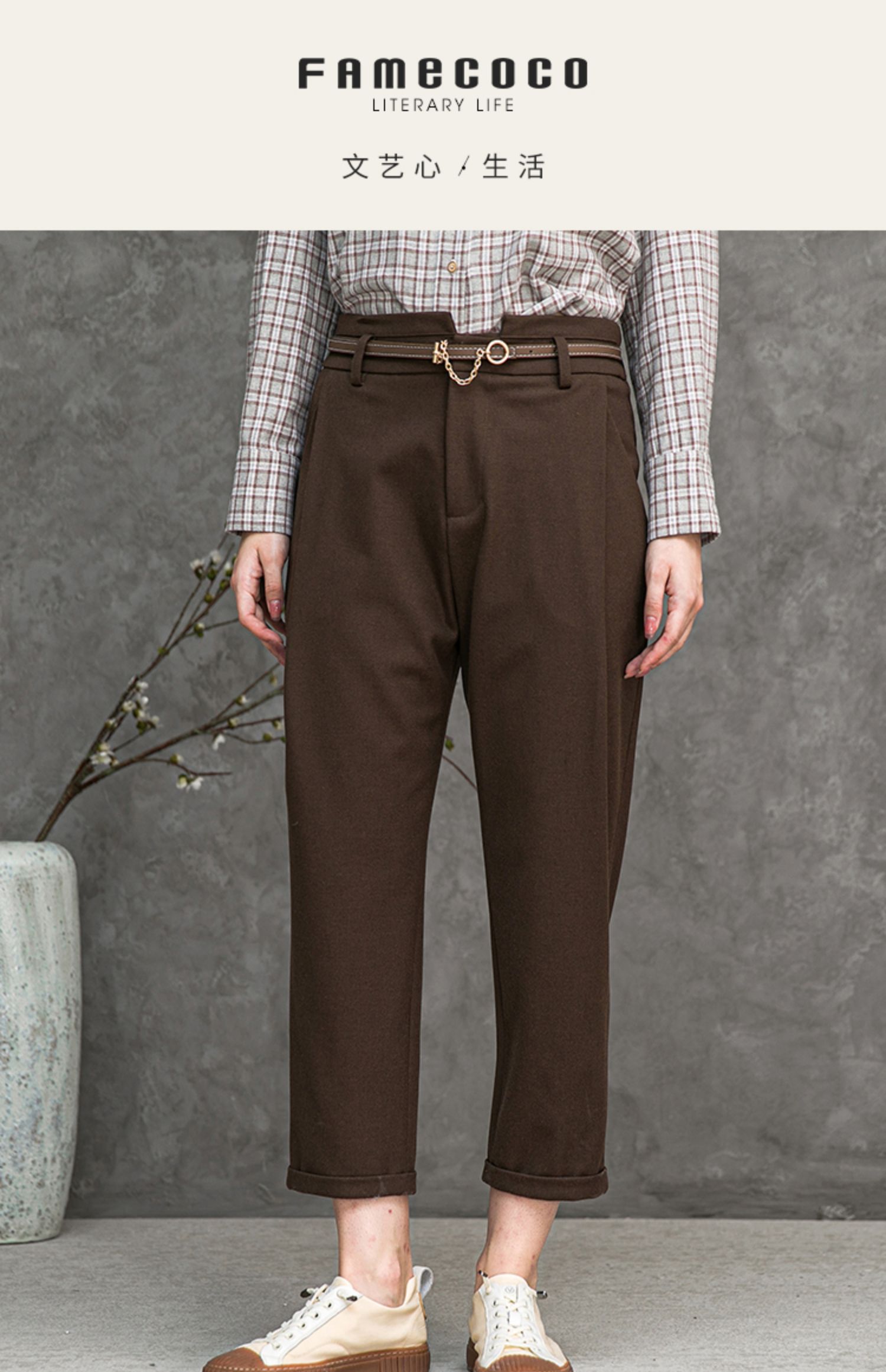 Famecoco范可儿裤子女秋冬季不规则宽松休闲裤F218GA017