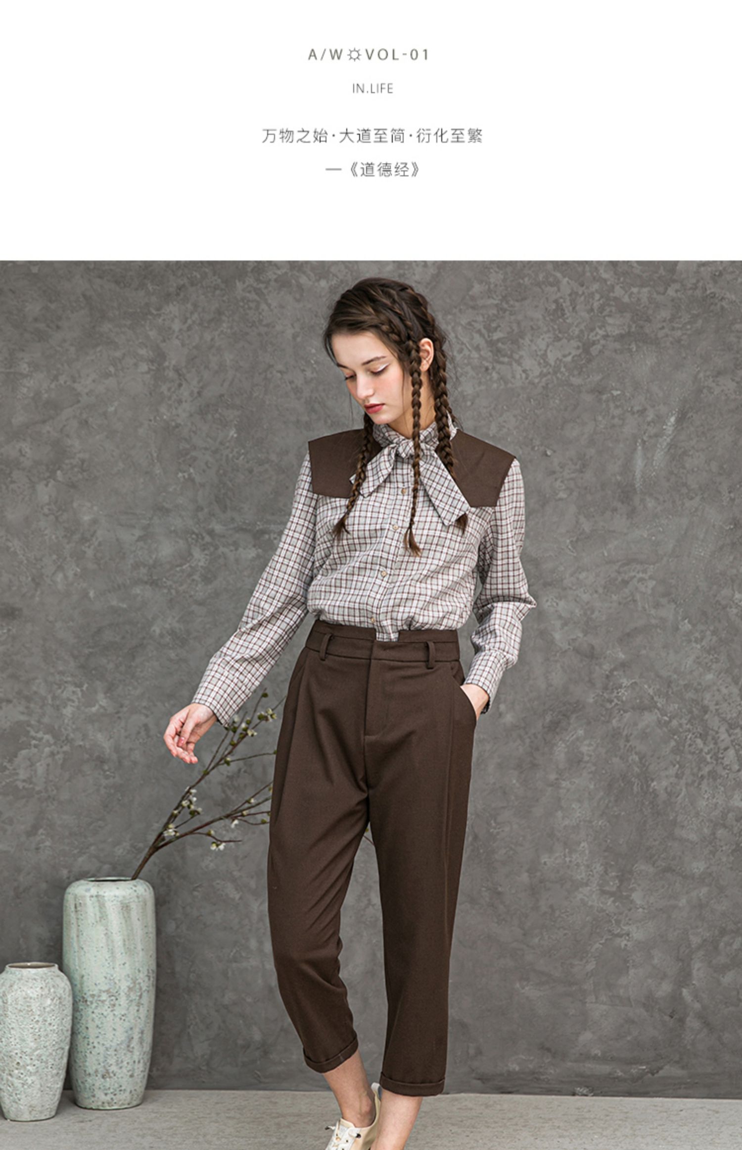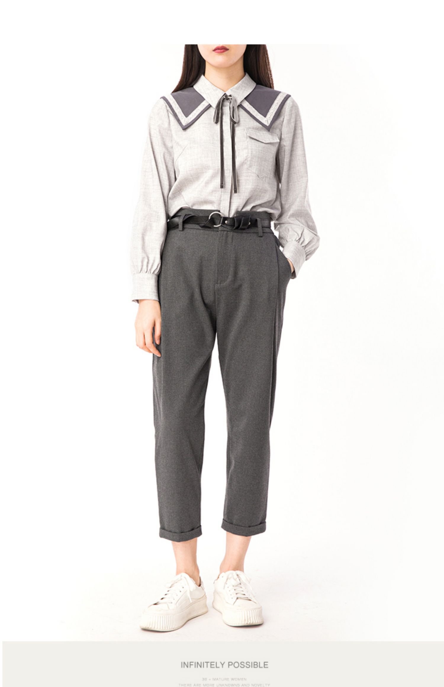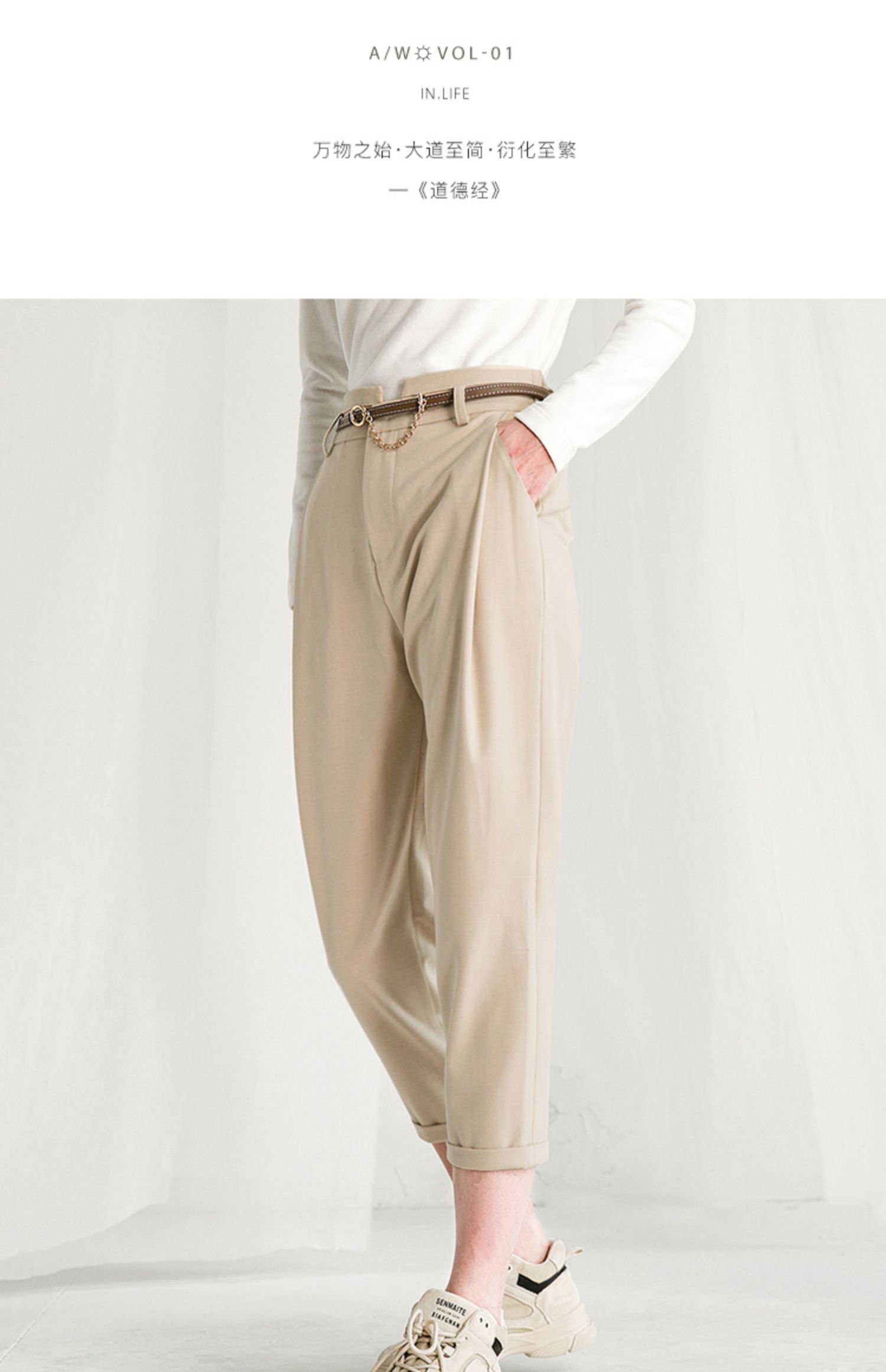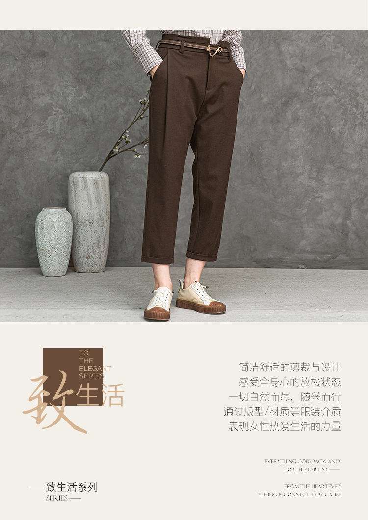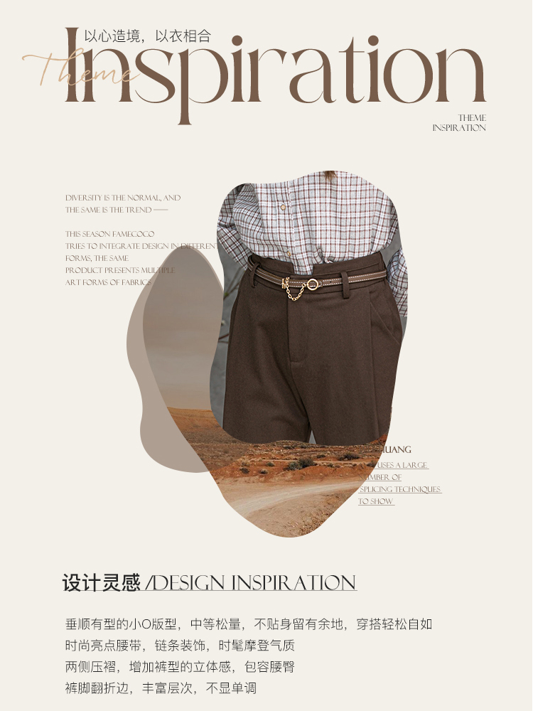Famecoco范可儿裤子女秋冬季不规则宽松休闲裤F218GA017