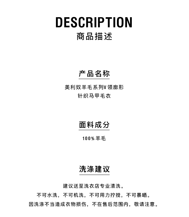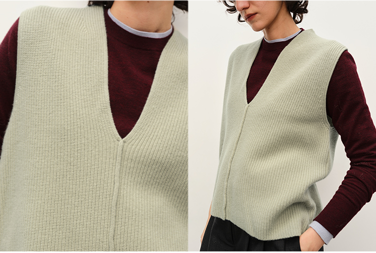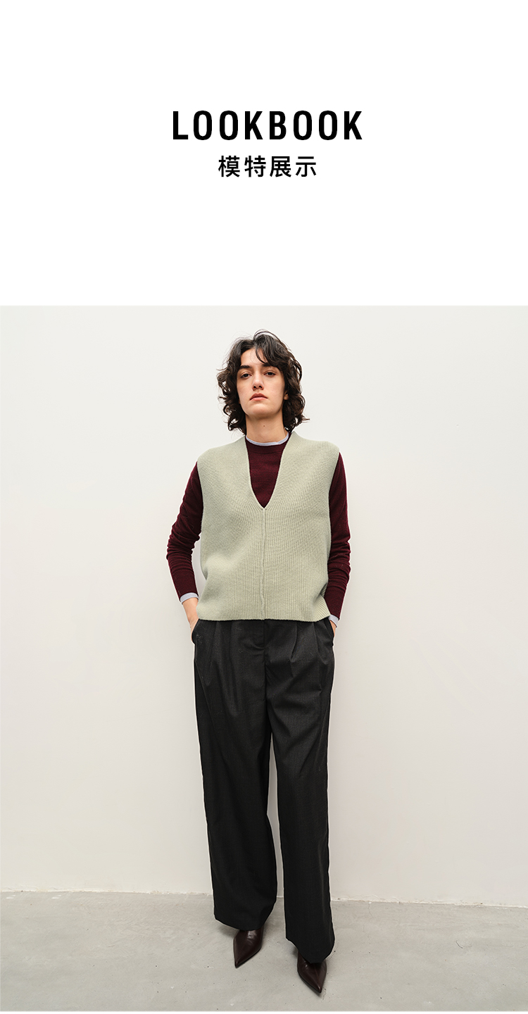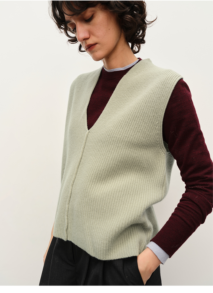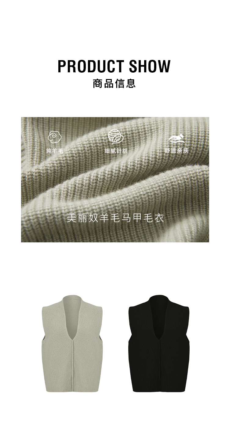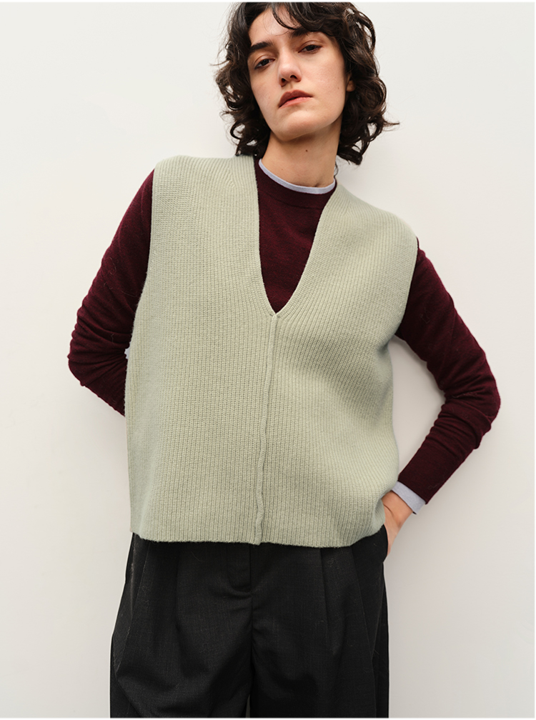 HIDEMI 进口美利奴羊毛系列V领廓形针织马甲毛衣