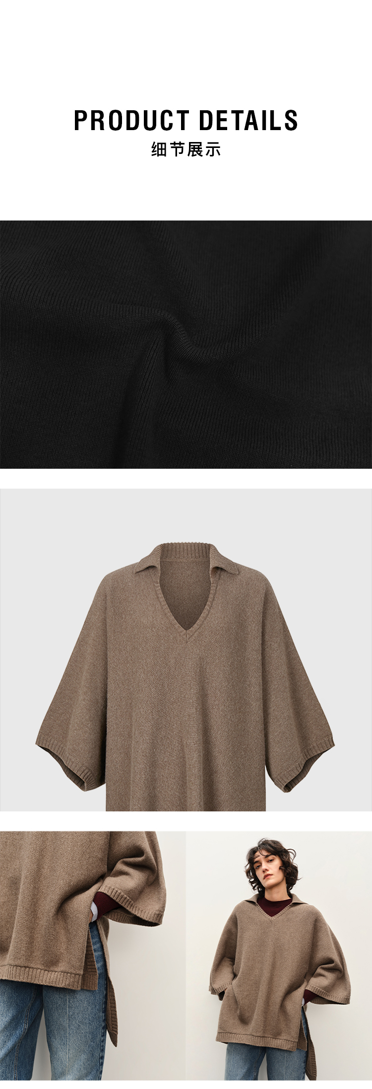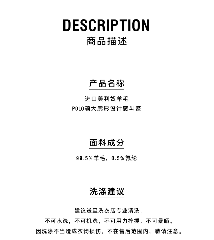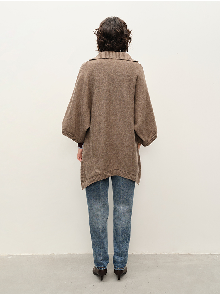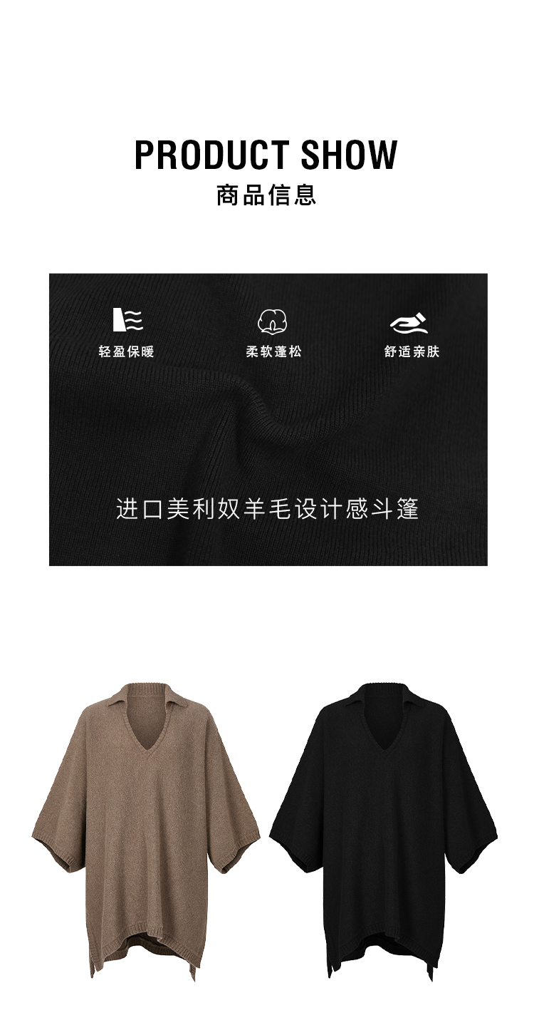 HIDEMI 进口美利奴羊毛POLO领大廓形设计感斗篷