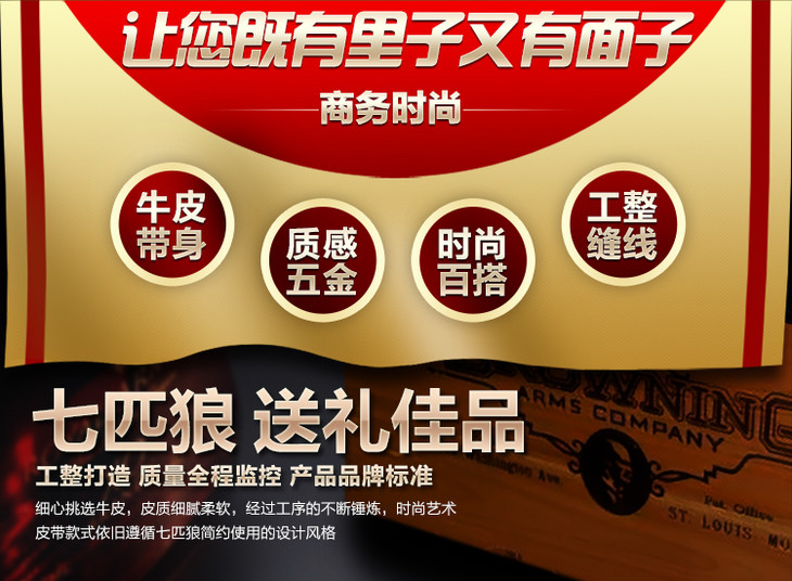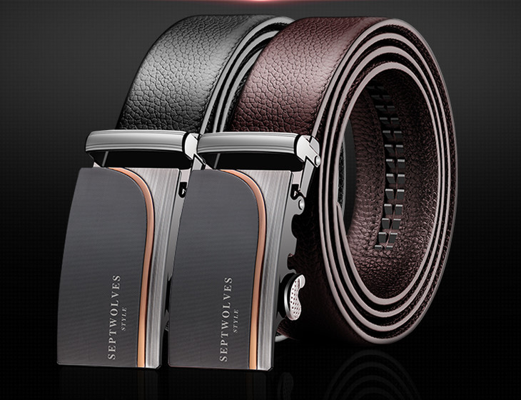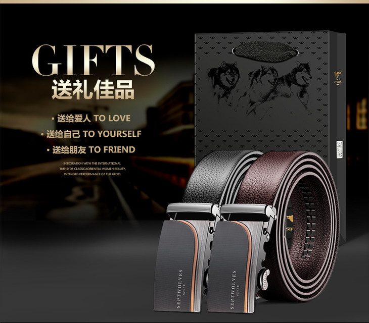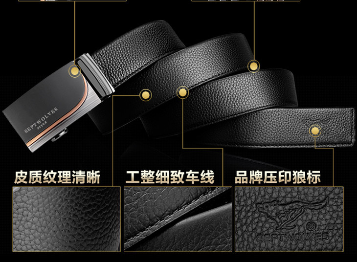 七匹狼SEPTWOLVES皮带 男士自动扣腰带 商务休闲双面头层牛皮裤带