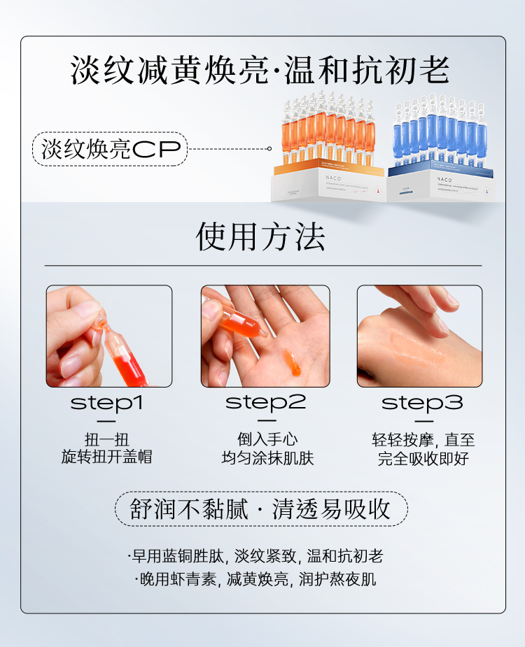 【老客专属福利】淡纹焕亮CP组合#NACO虾青素双抗弹润次抛精华液1.2ml*30支+NACO蓝铜胜肽淡纹紧致次抛精华液1.2ml*30支(升级版)