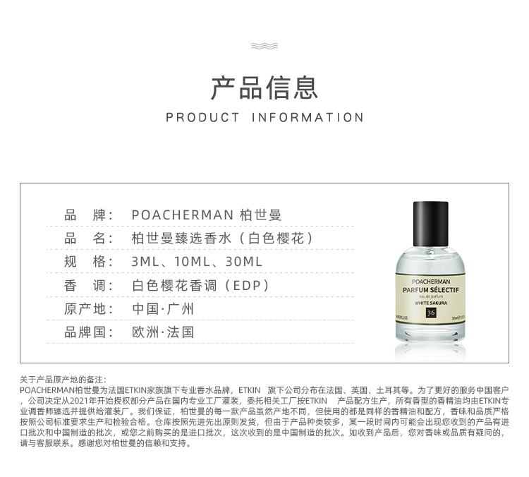 白色樱花味香水SAKURA东京浪漫樱花女士香水持久淡香清新自然淡香