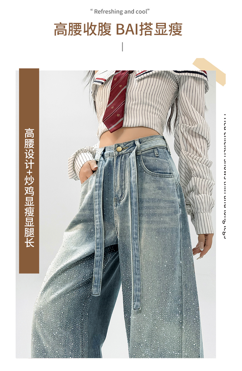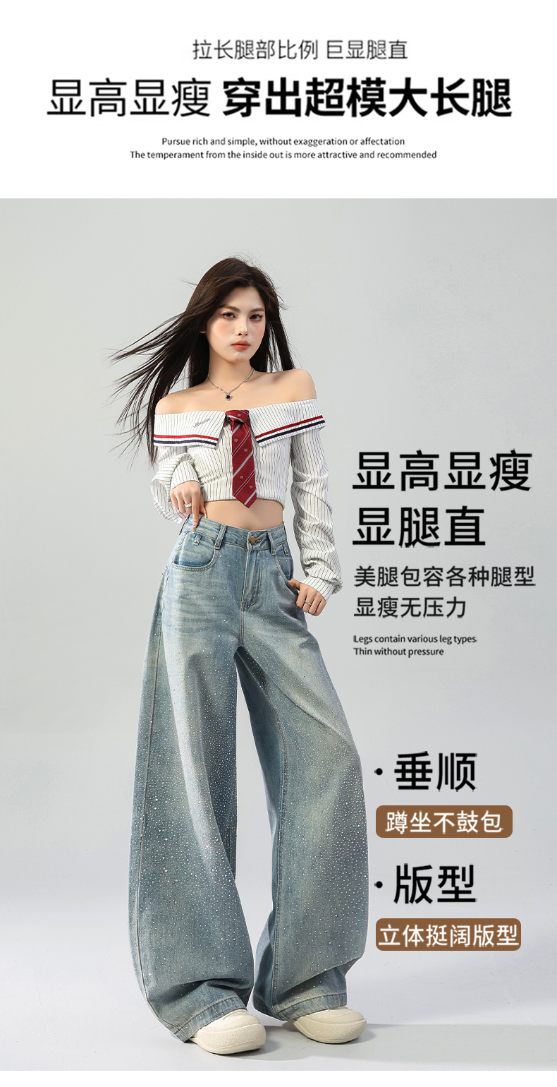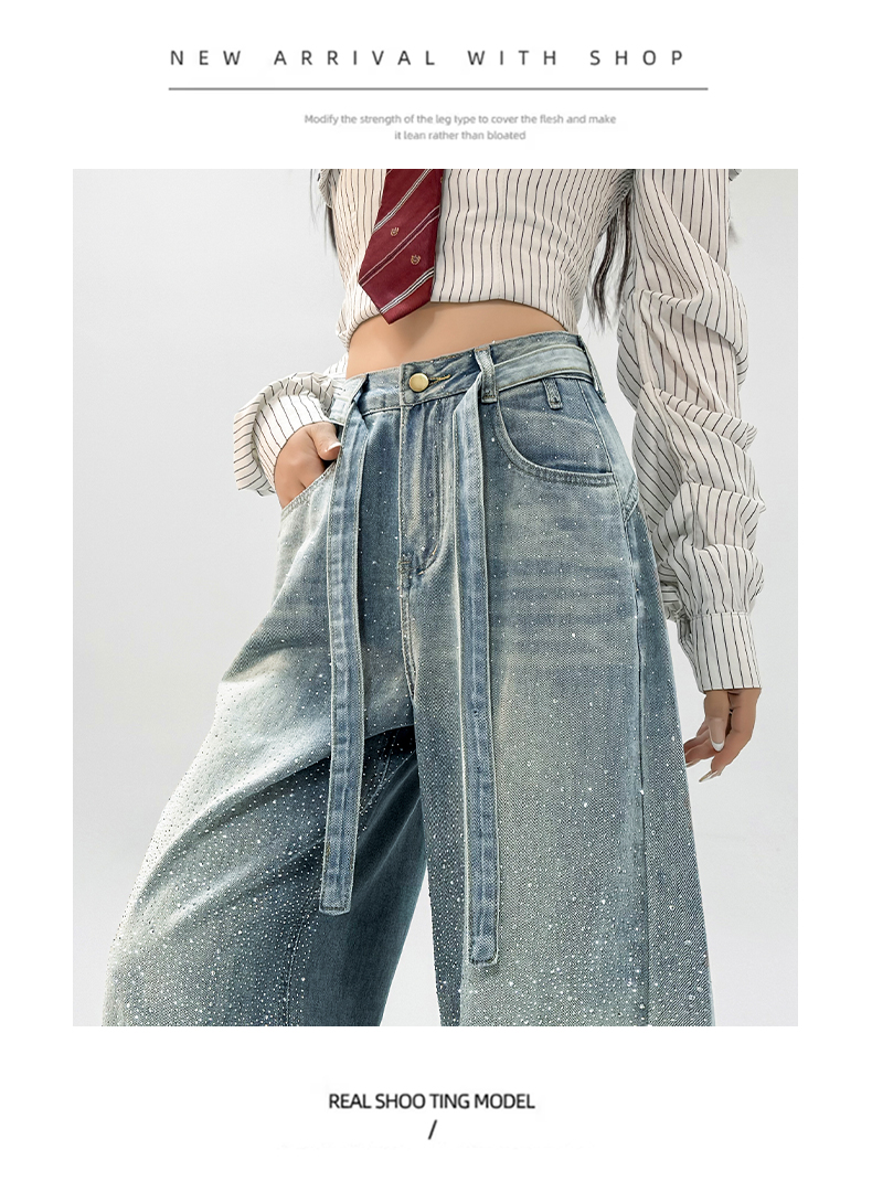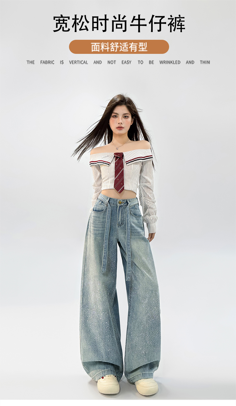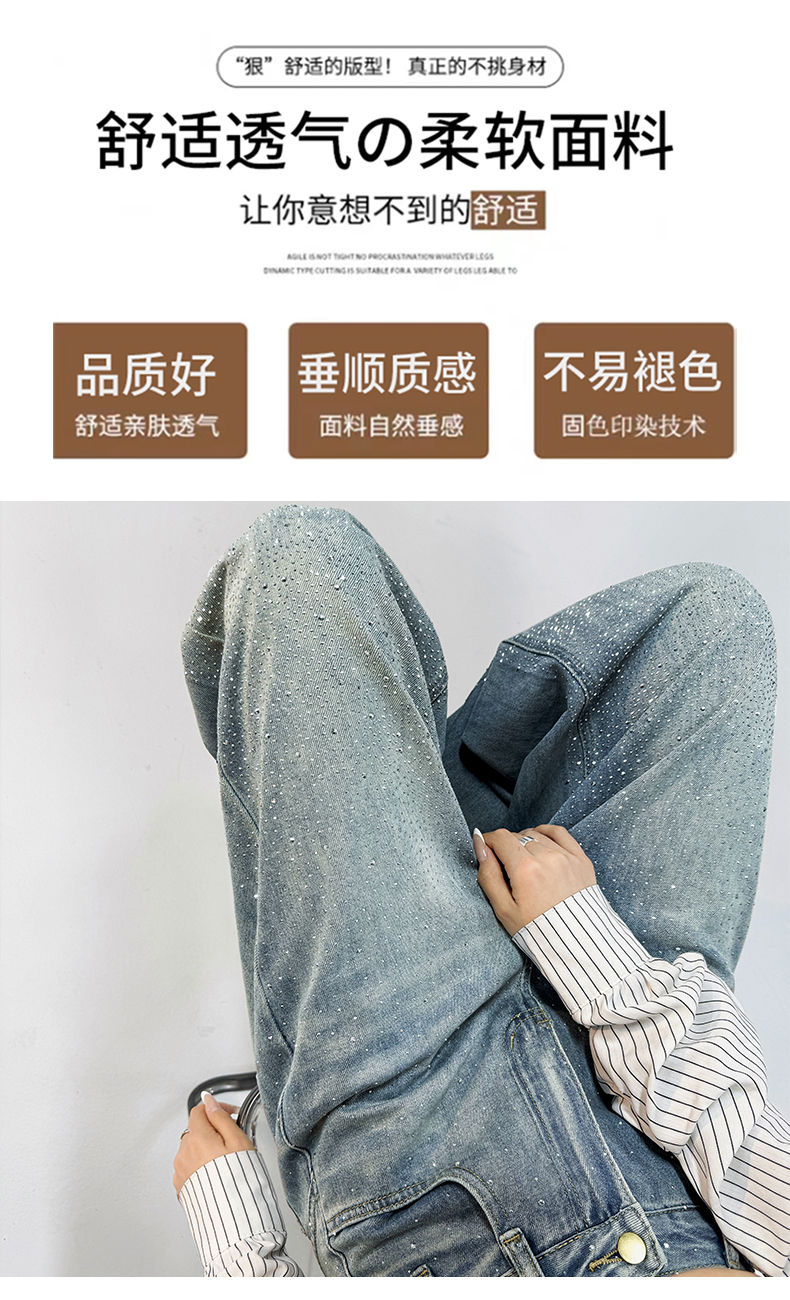 天丝棉牛仔裤 满天星烫钻垂感显瘦裤