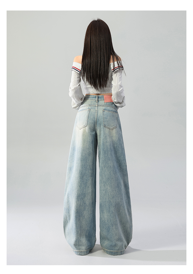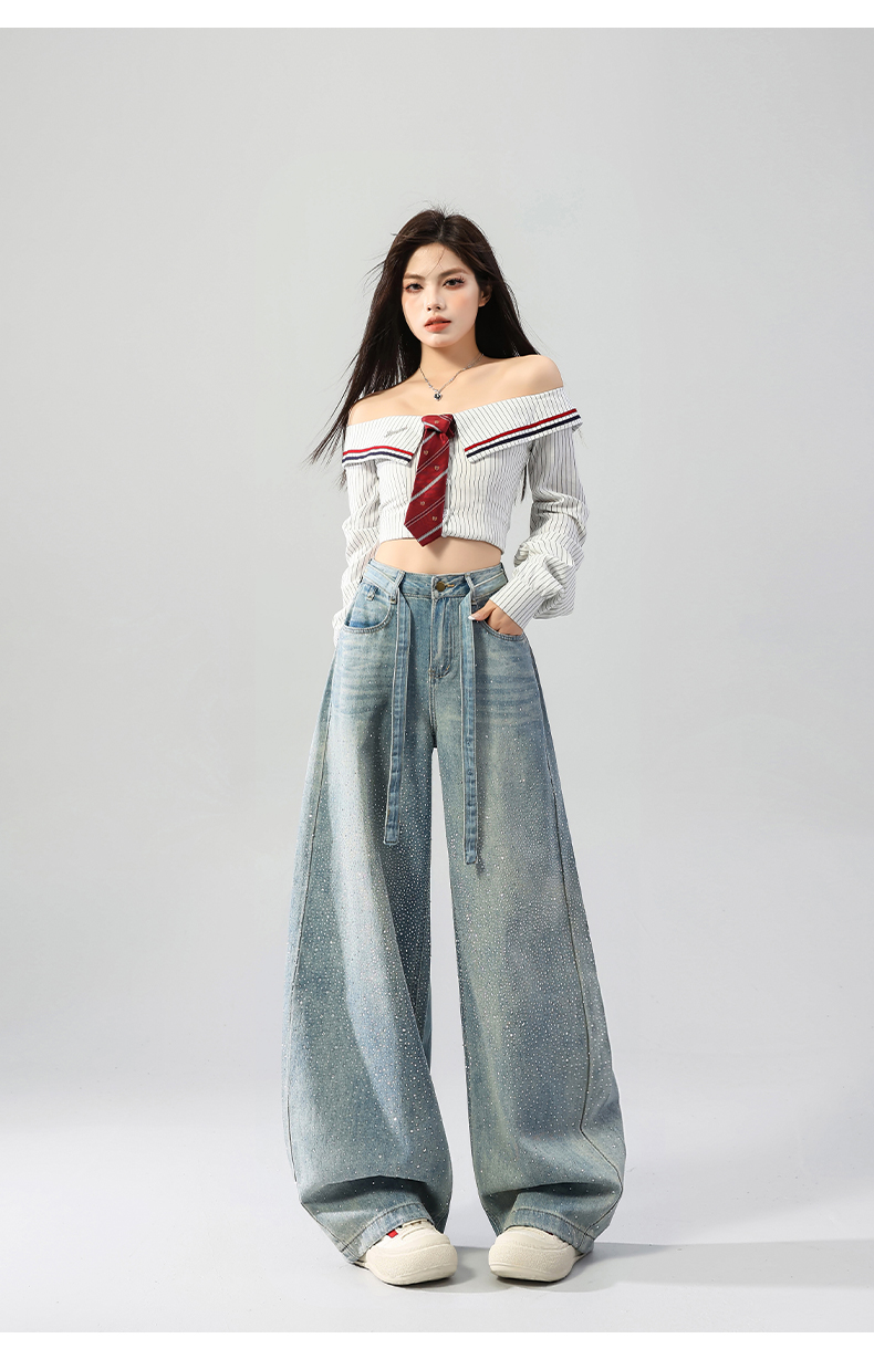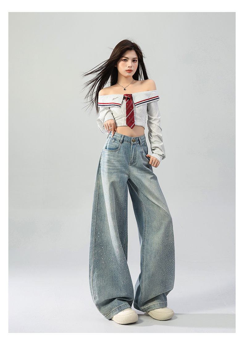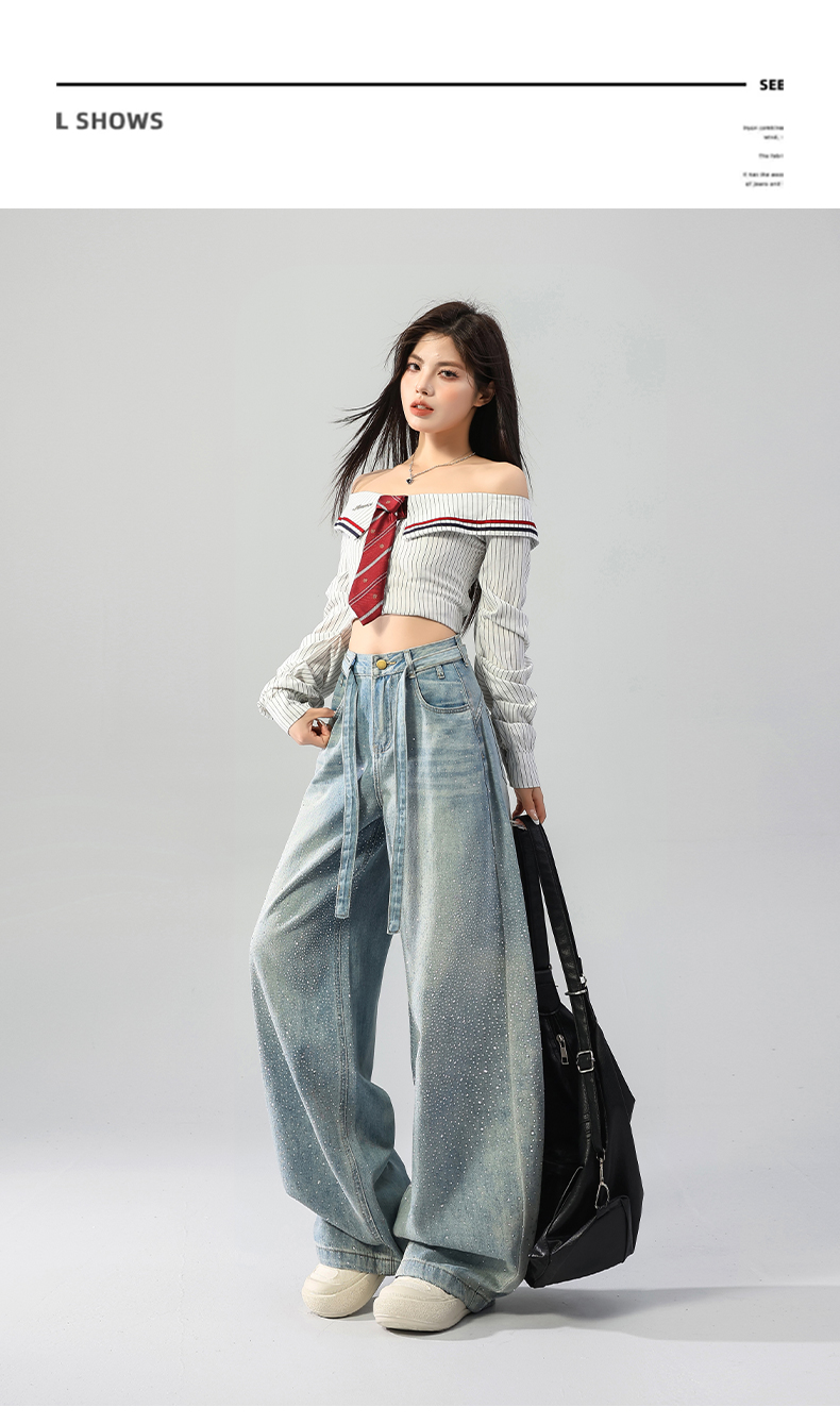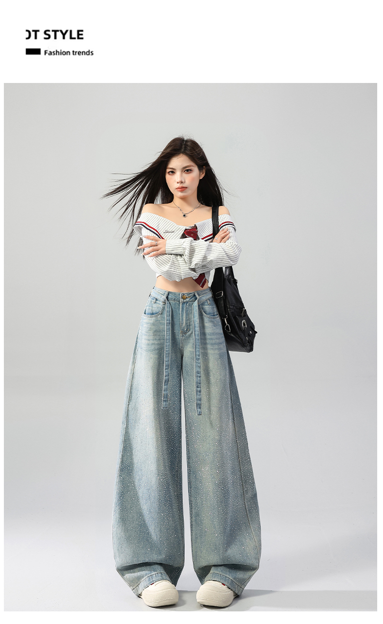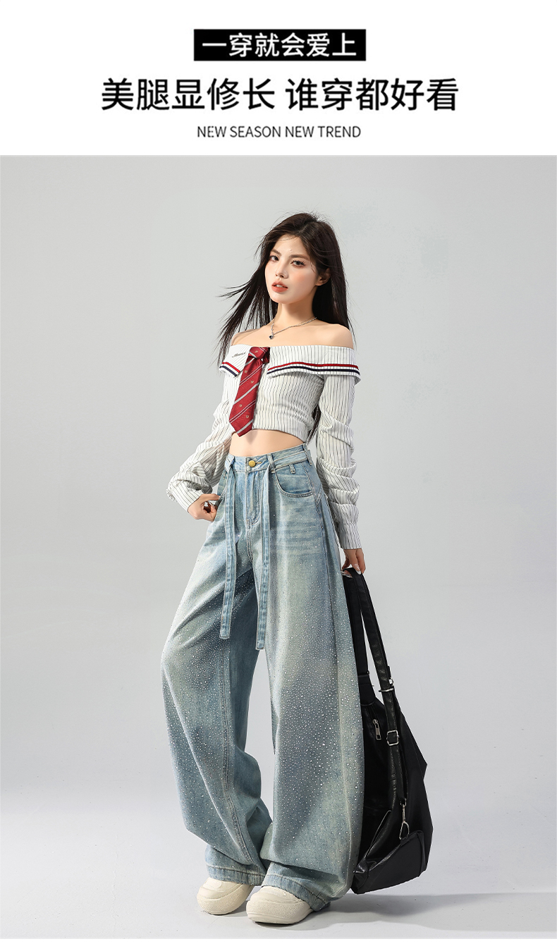 天丝棉牛仔裤 满天星烫钻垂感显瘦裤