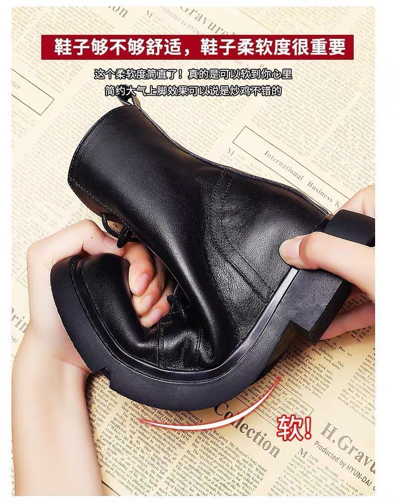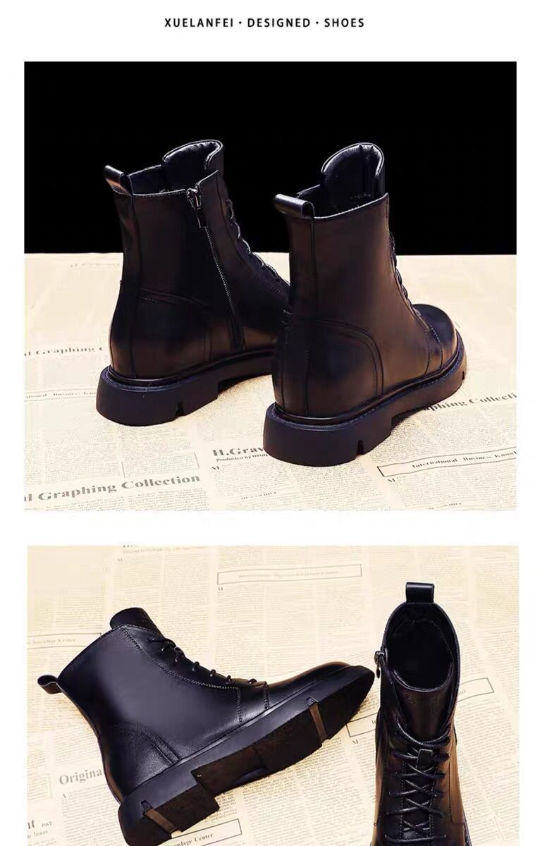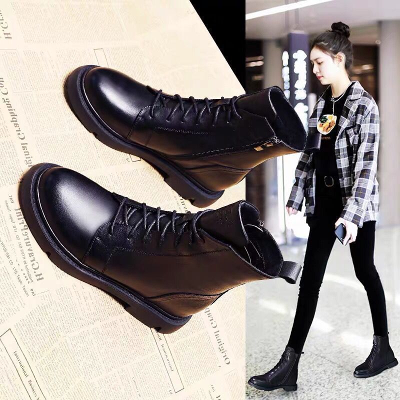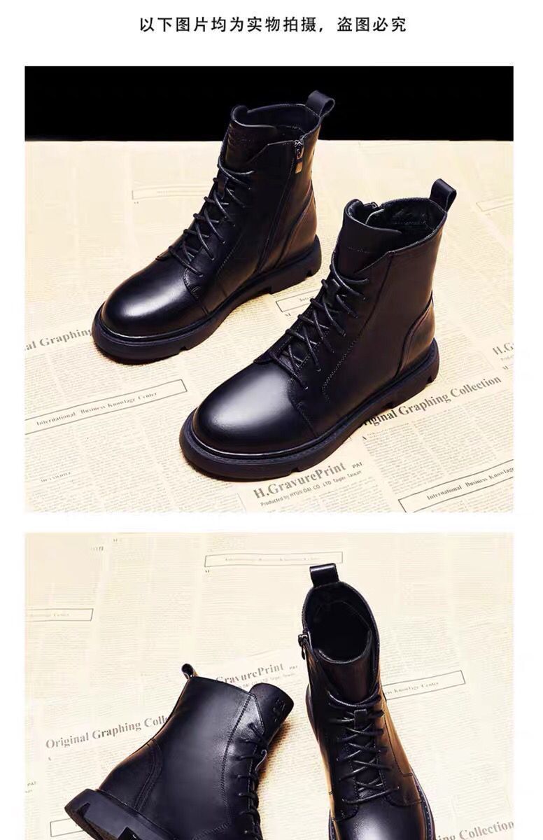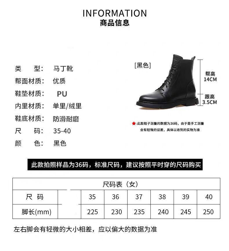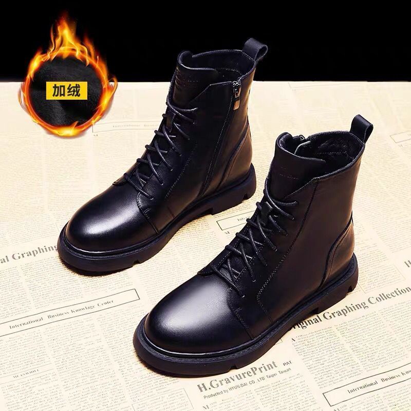 中筒时尚马丁靴女风平底2023秋冬新款加绒黑色短靴女靴ain05