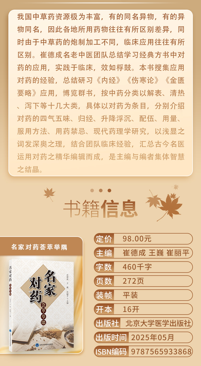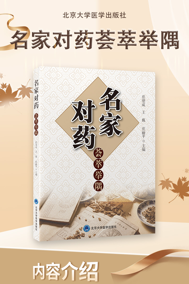 名家对药荟萃举隅 崔德成 王巍 崔丽平 汇集应用对药的经验介绍对药的四气五味归经升降浮沉配伍用量服用方法等北京大学医学出版社