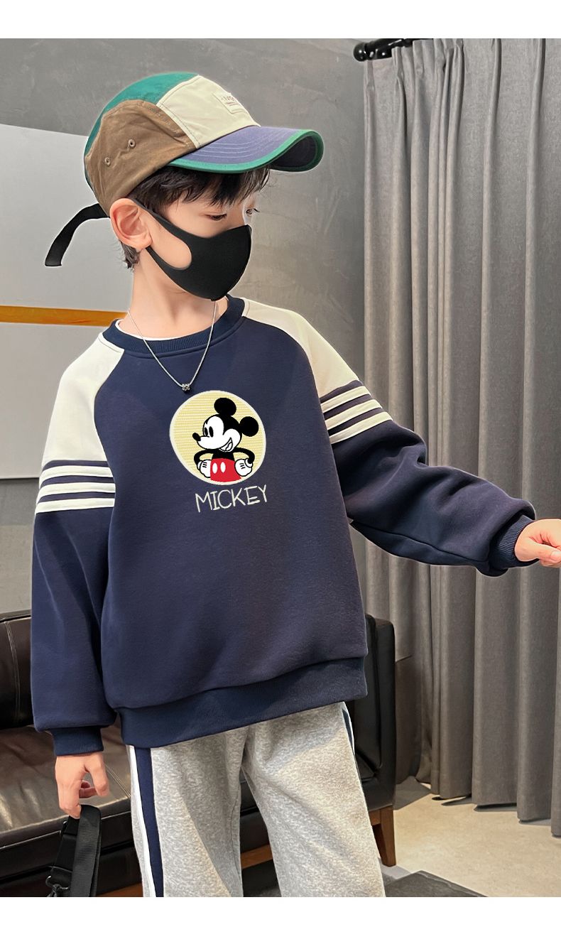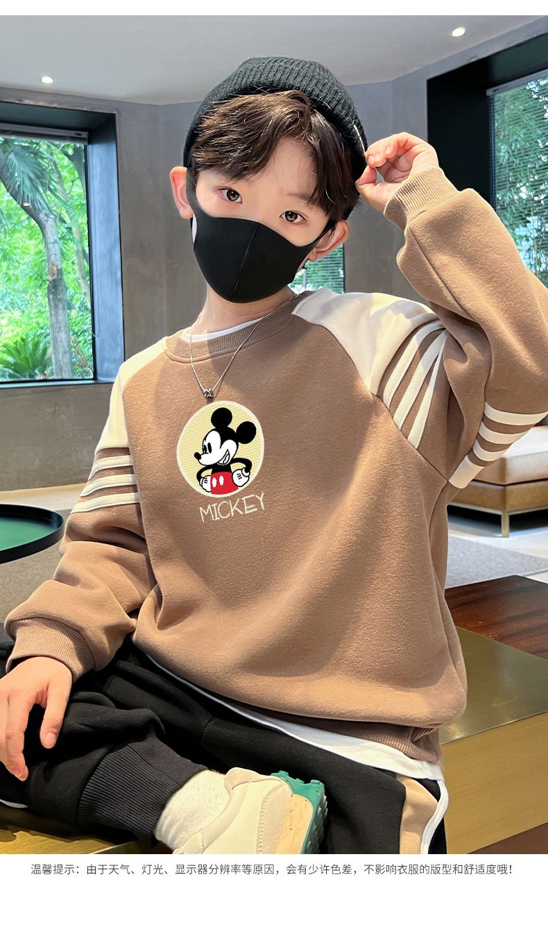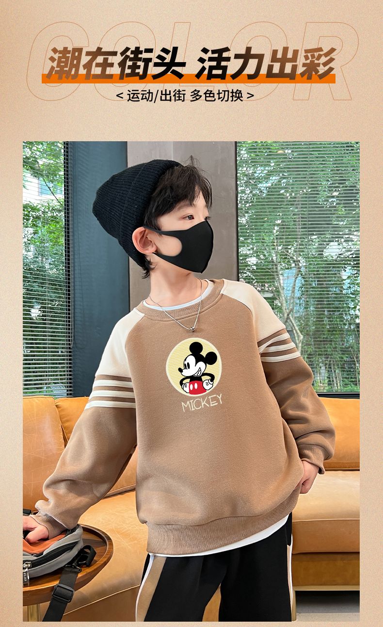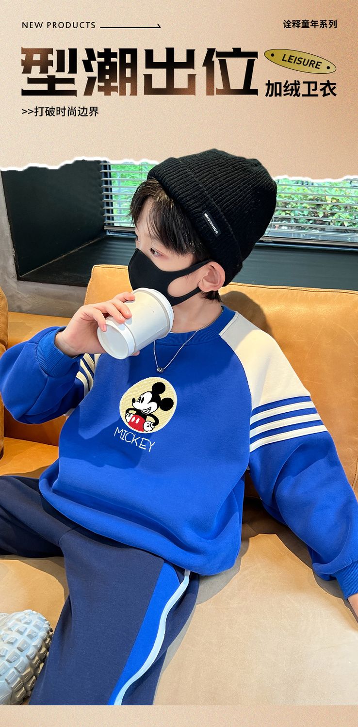 迪士尼男童加绒卫衣2024新款儿童上衣冬季一体绒加厚冬装大童衣服