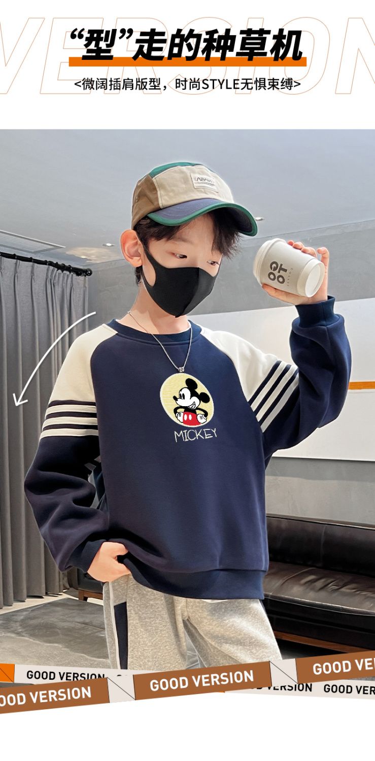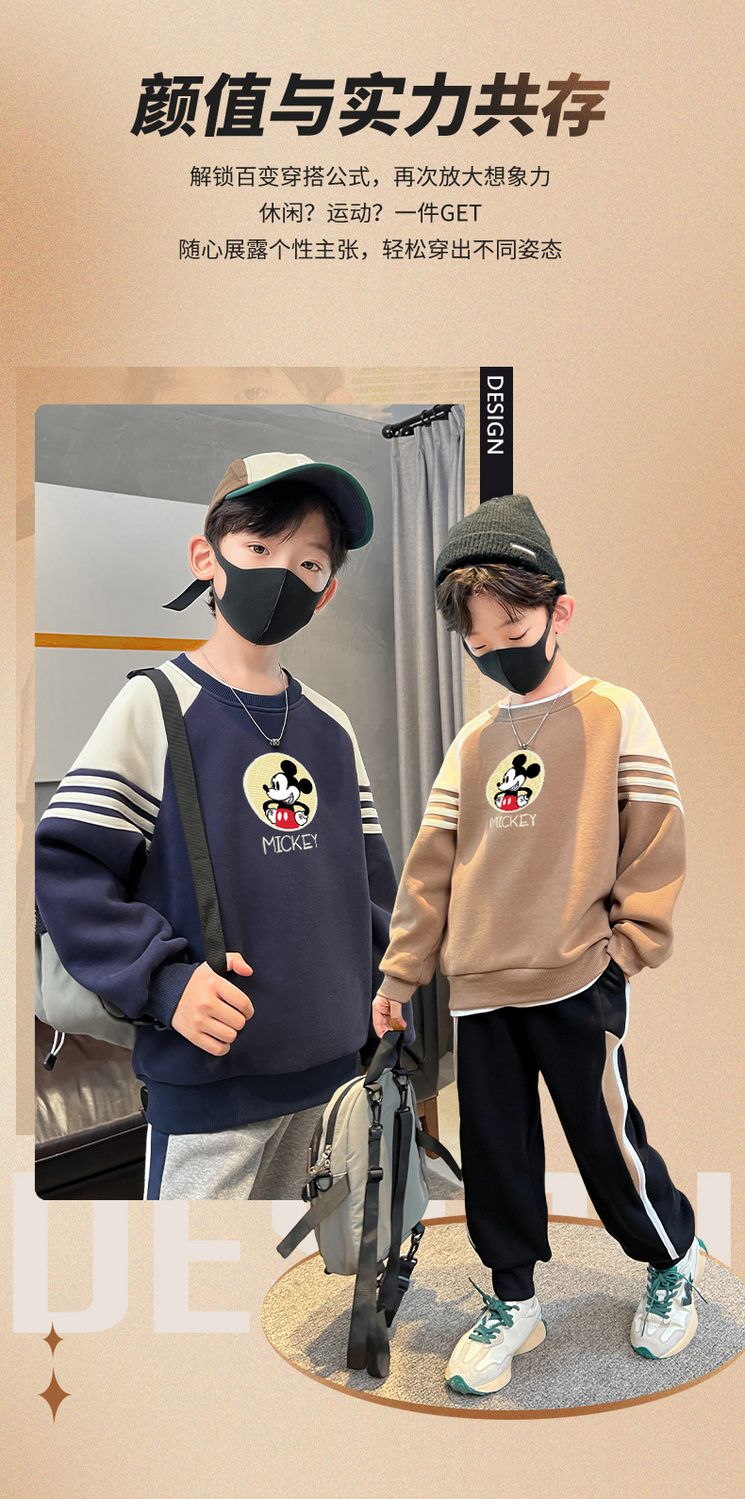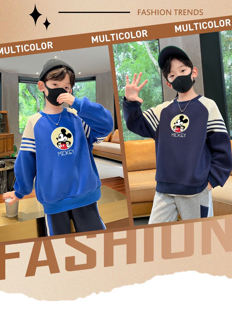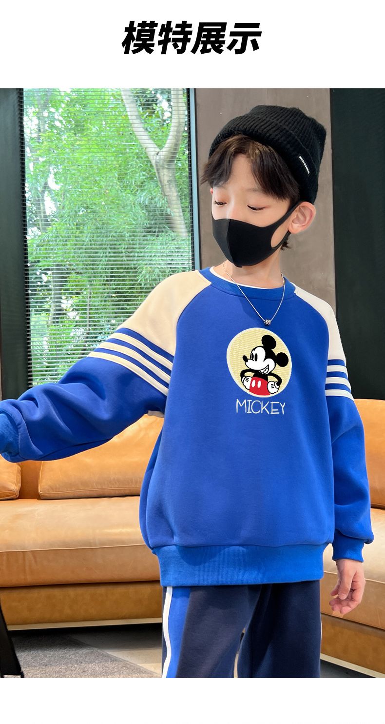 迪士尼男童加绒卫衣2024新款儿童上衣冬季一体绒加厚冬装大童衣服