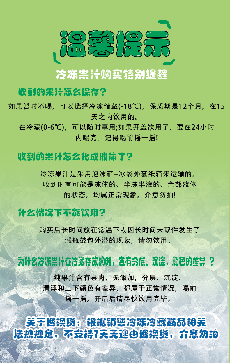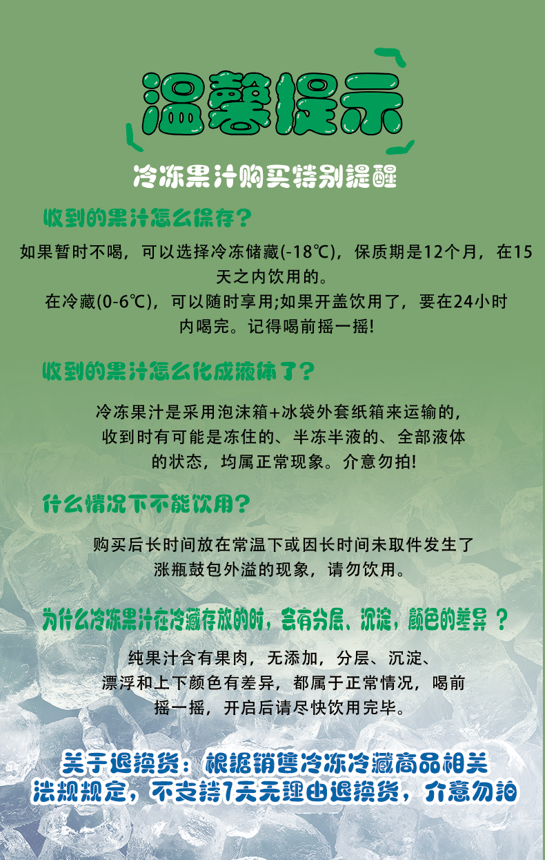 ✅完整保存果汁香气和自然口感,避免煮熟味等不良风味,冷链储存下能长时间保持新鲜度