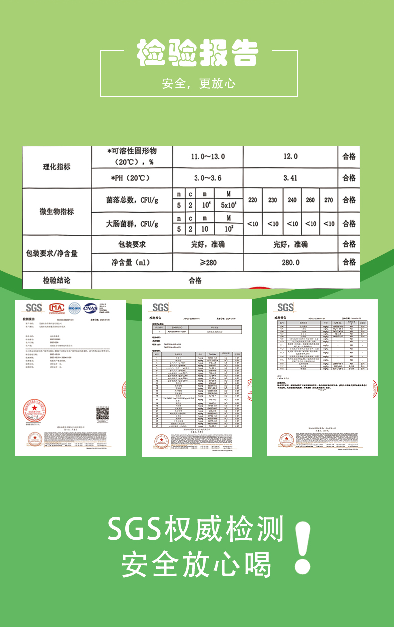 ✅配料干净:果汁含量100%!0添加0香精0色素0防腐剂0酒精,通过SGS欧盟农残检测