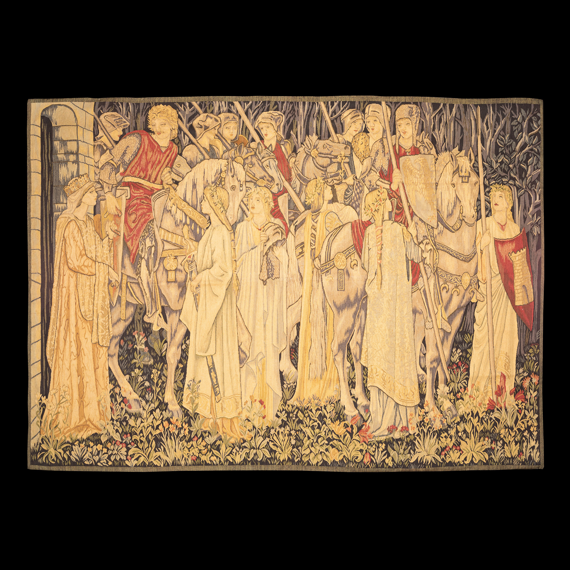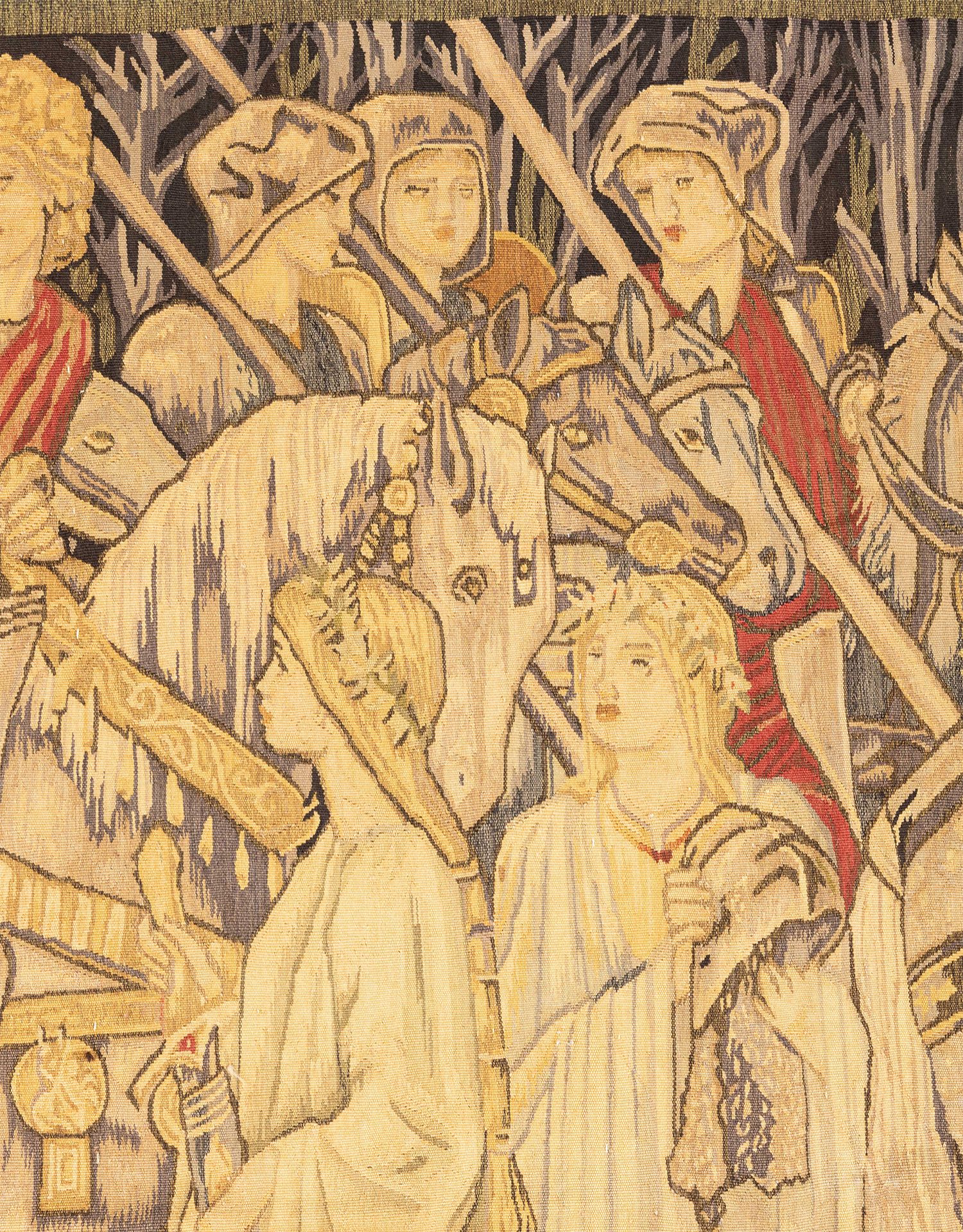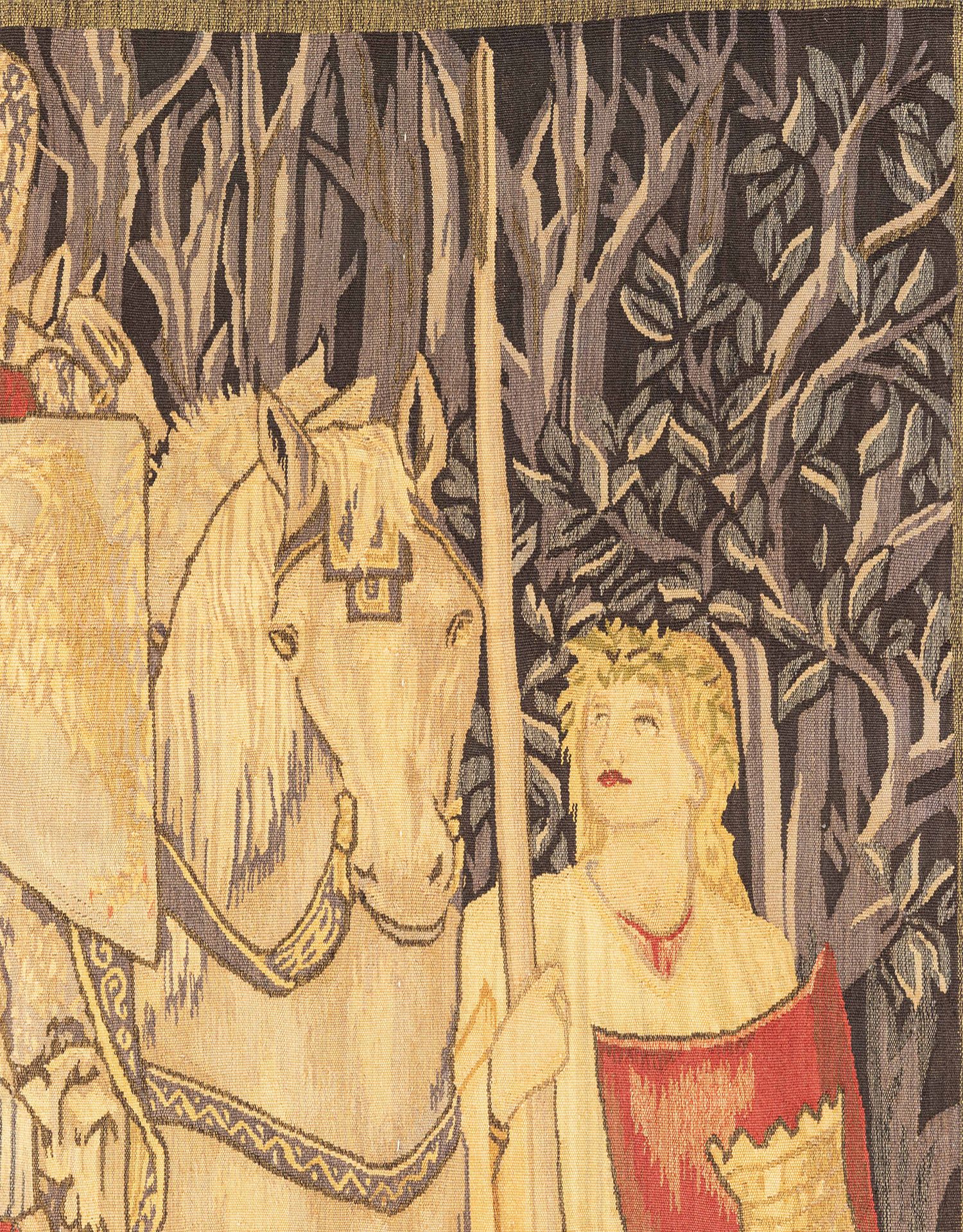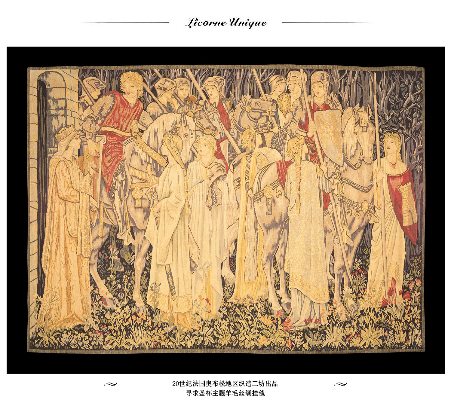 独角鹿西洋古董20世纪法国奥布松织造工坊寻求圣杯羊毛丝绸挂毯