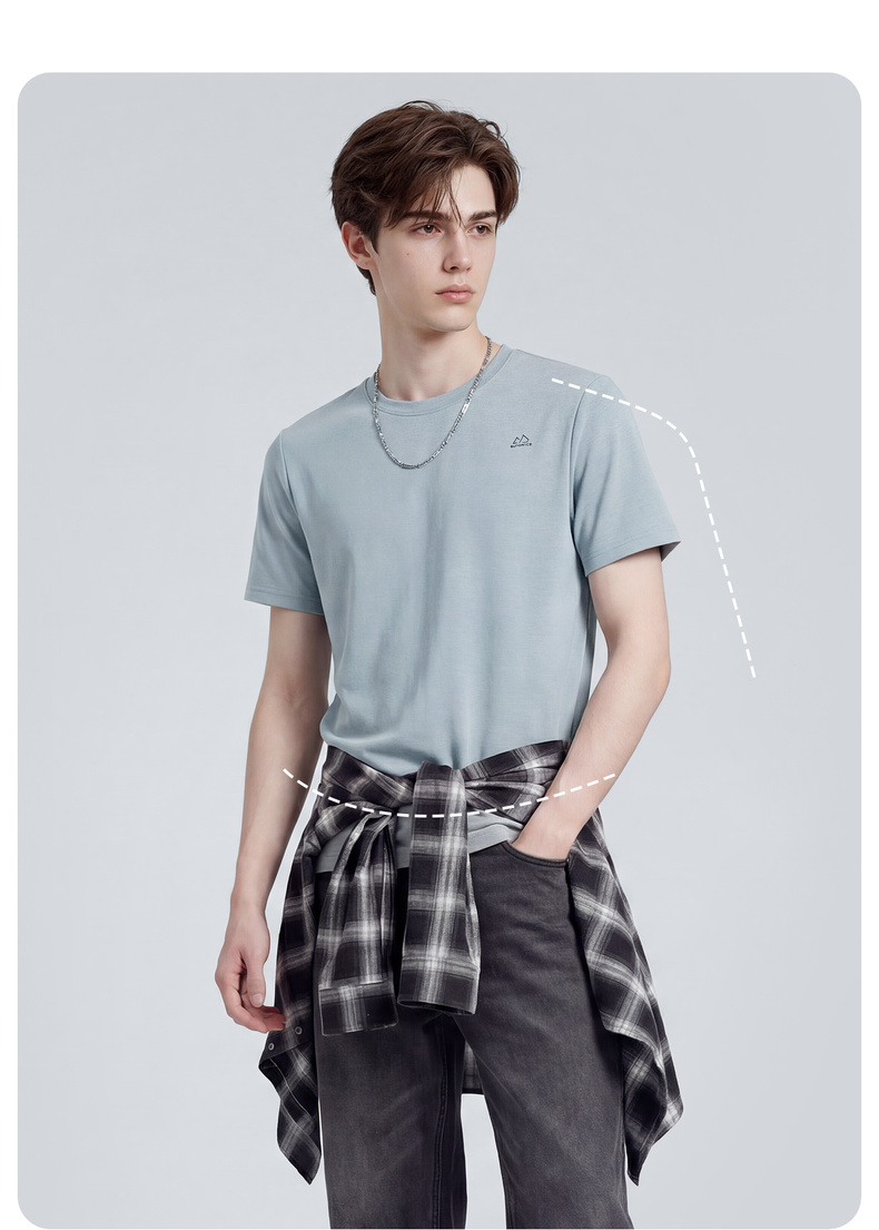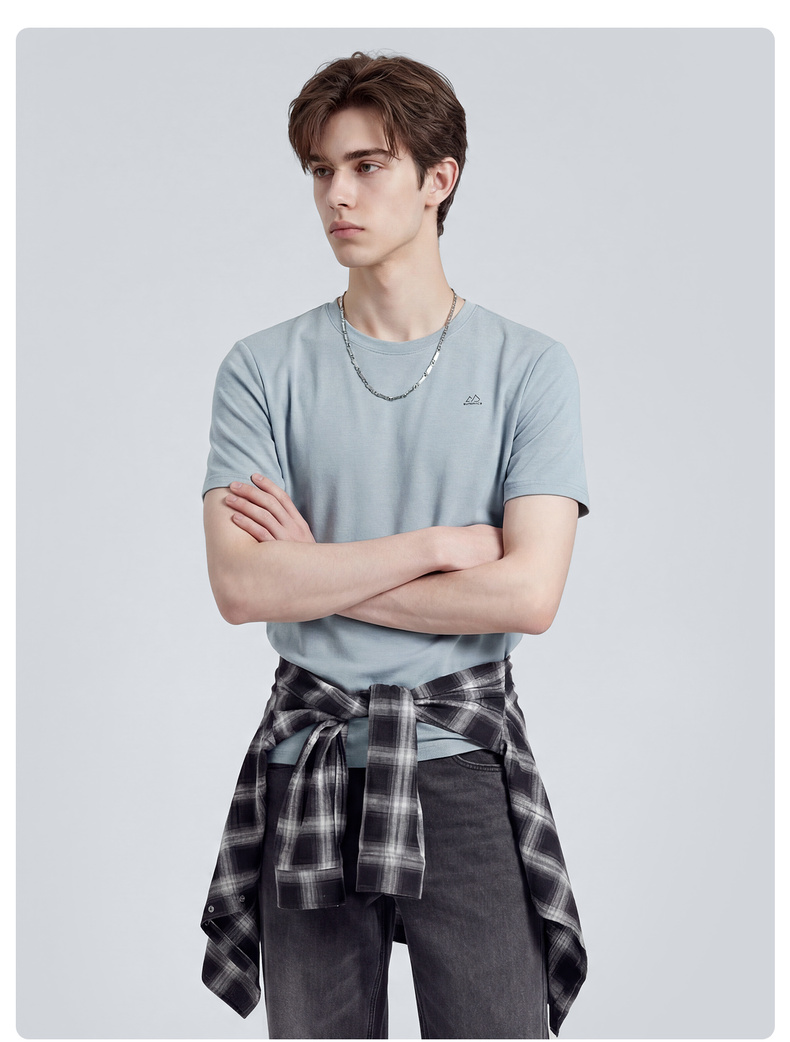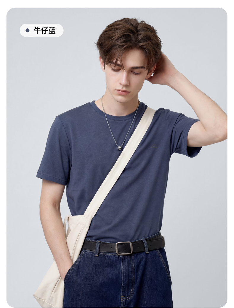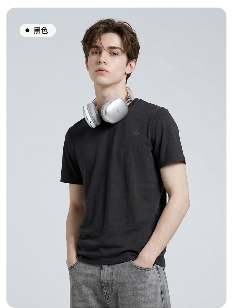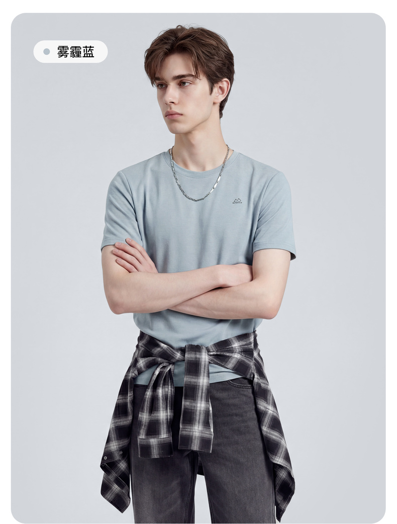 圣得西男士T恤2025年夏季新款通勤休闲居家百搭纯色圆领短袖上衣