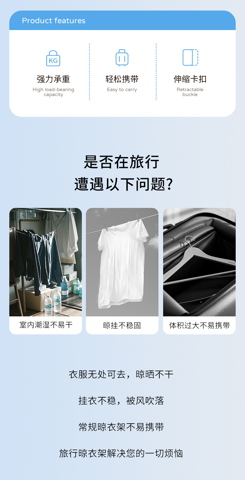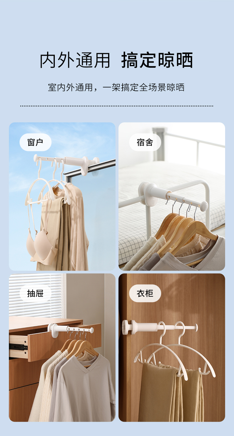 FaSoLa旅行晾衣架便携式旅游出差酒店室内折叠挂衣架免打孔伸缩晾晒神器