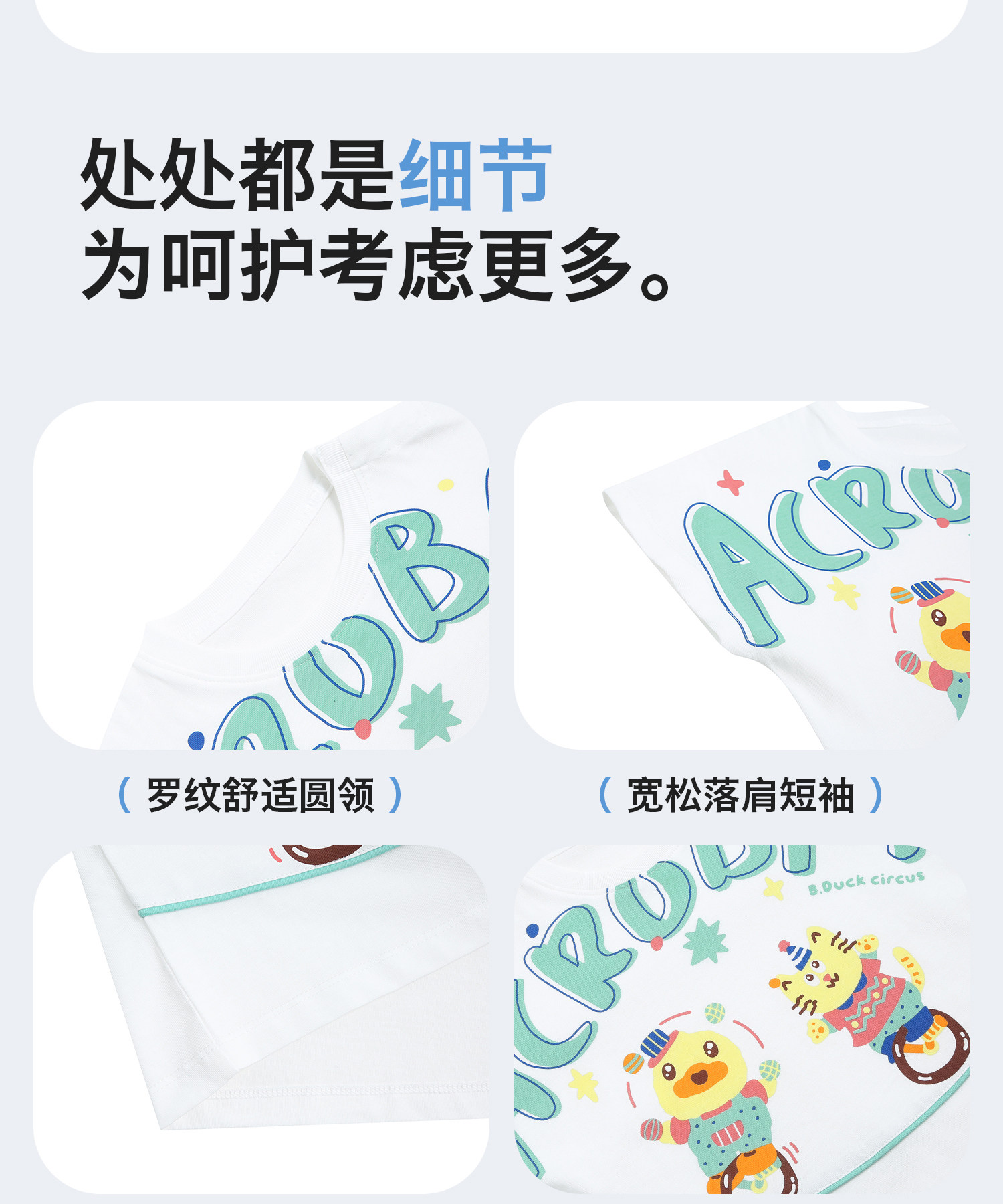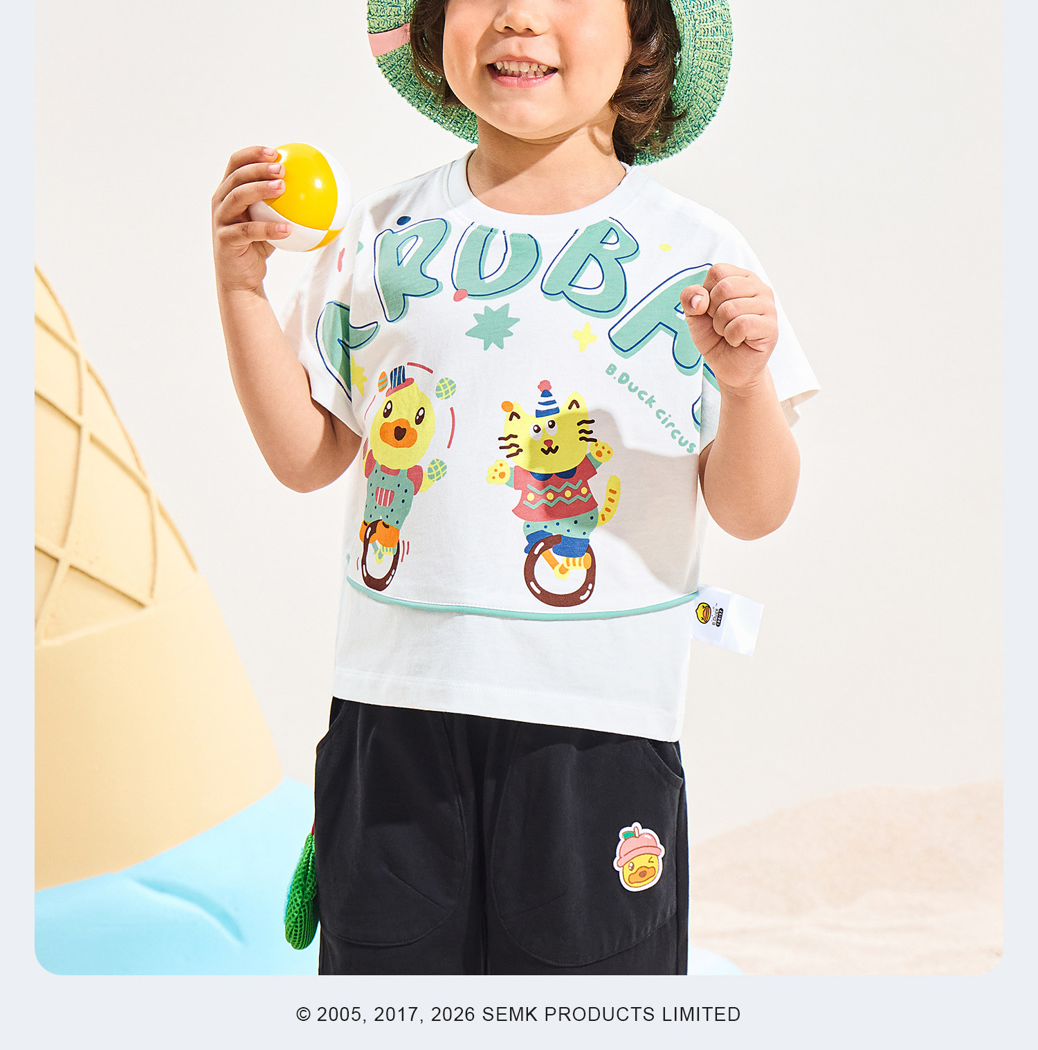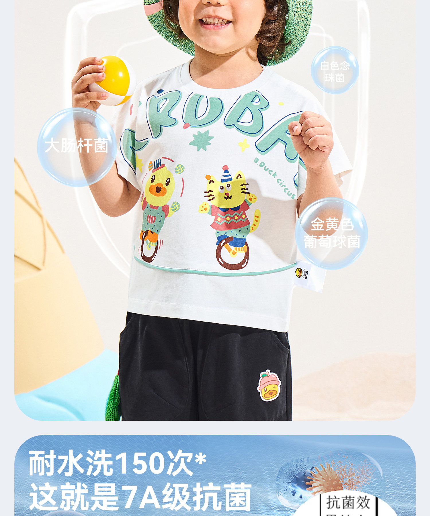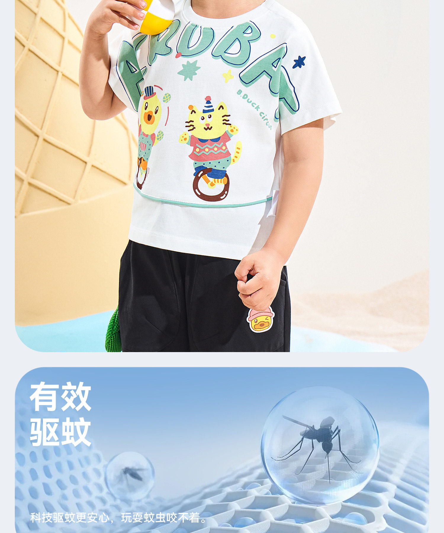 [驱蚊抗菌]bduck小黄鸭童装儿童纯棉T恤小男孩透气短袖夏款上衣90-150 BF2701097