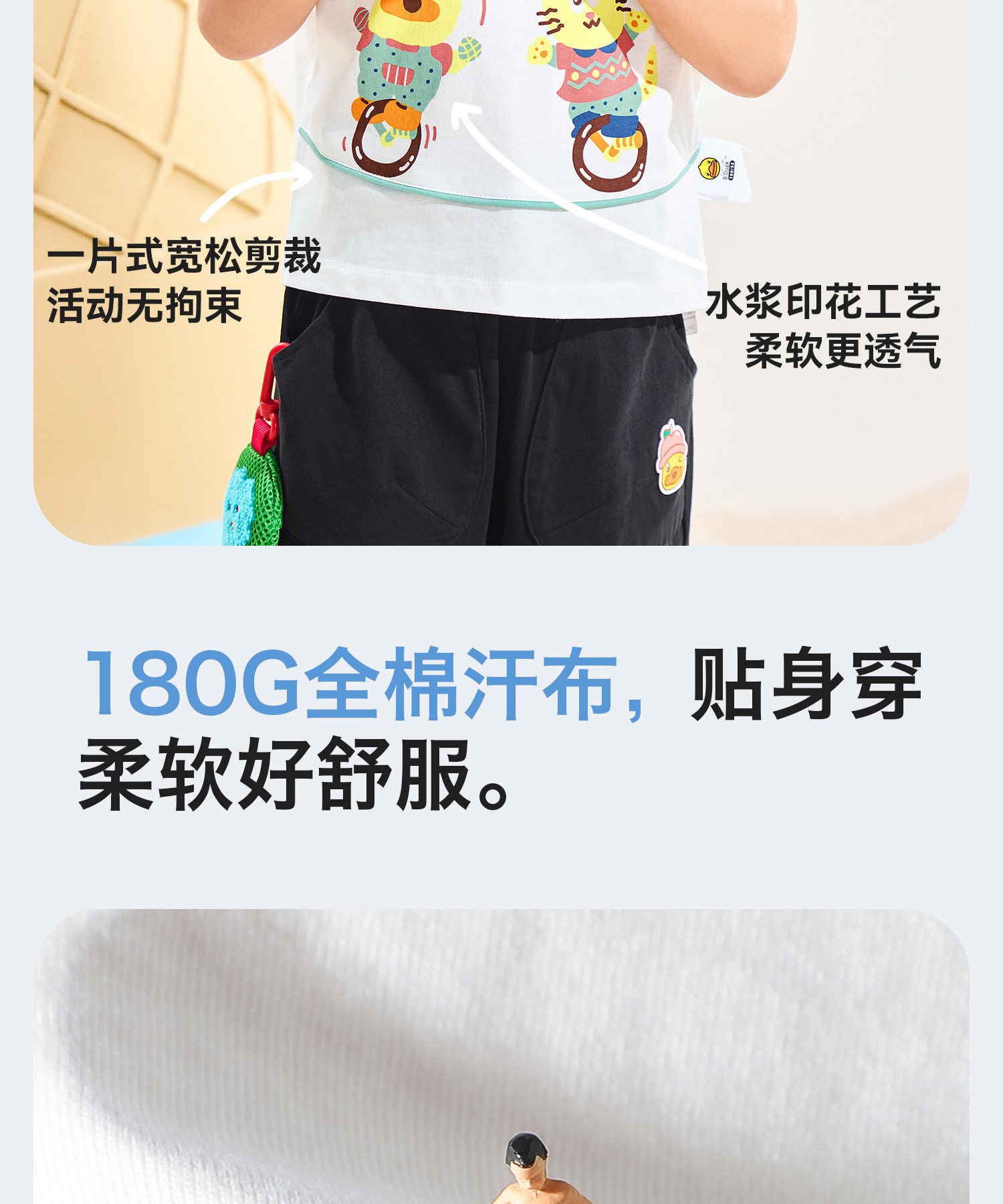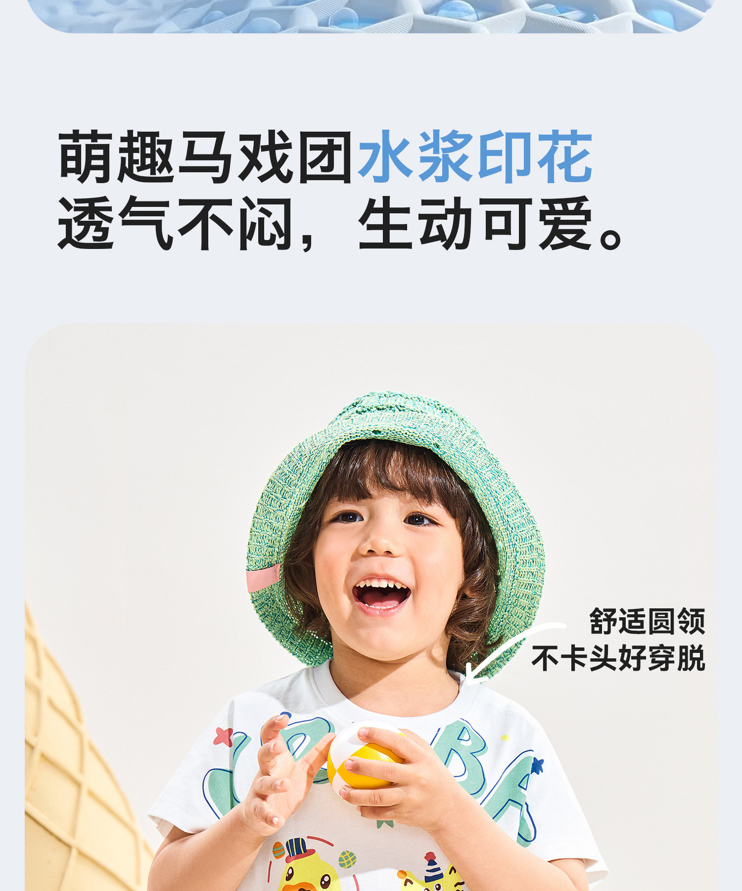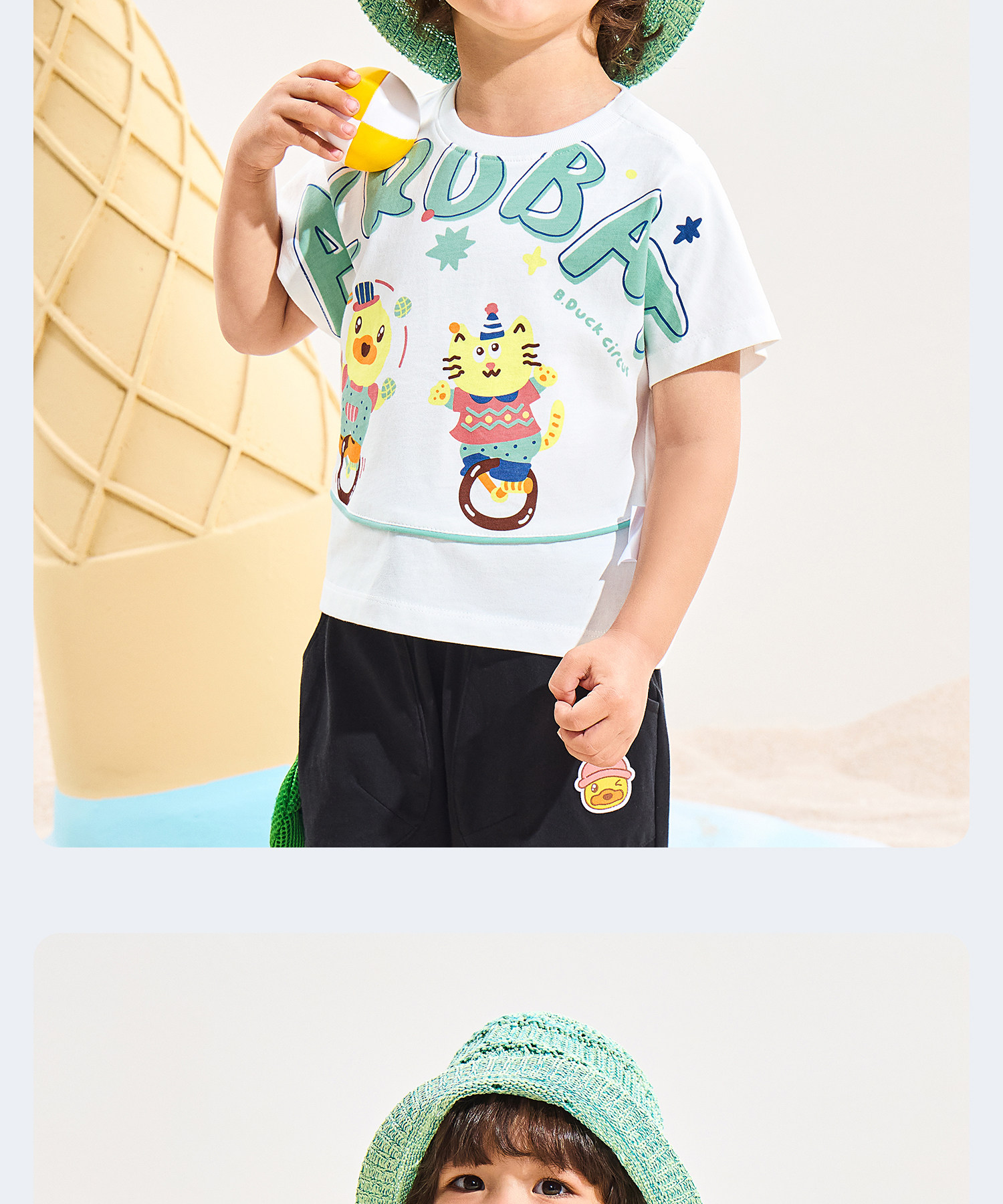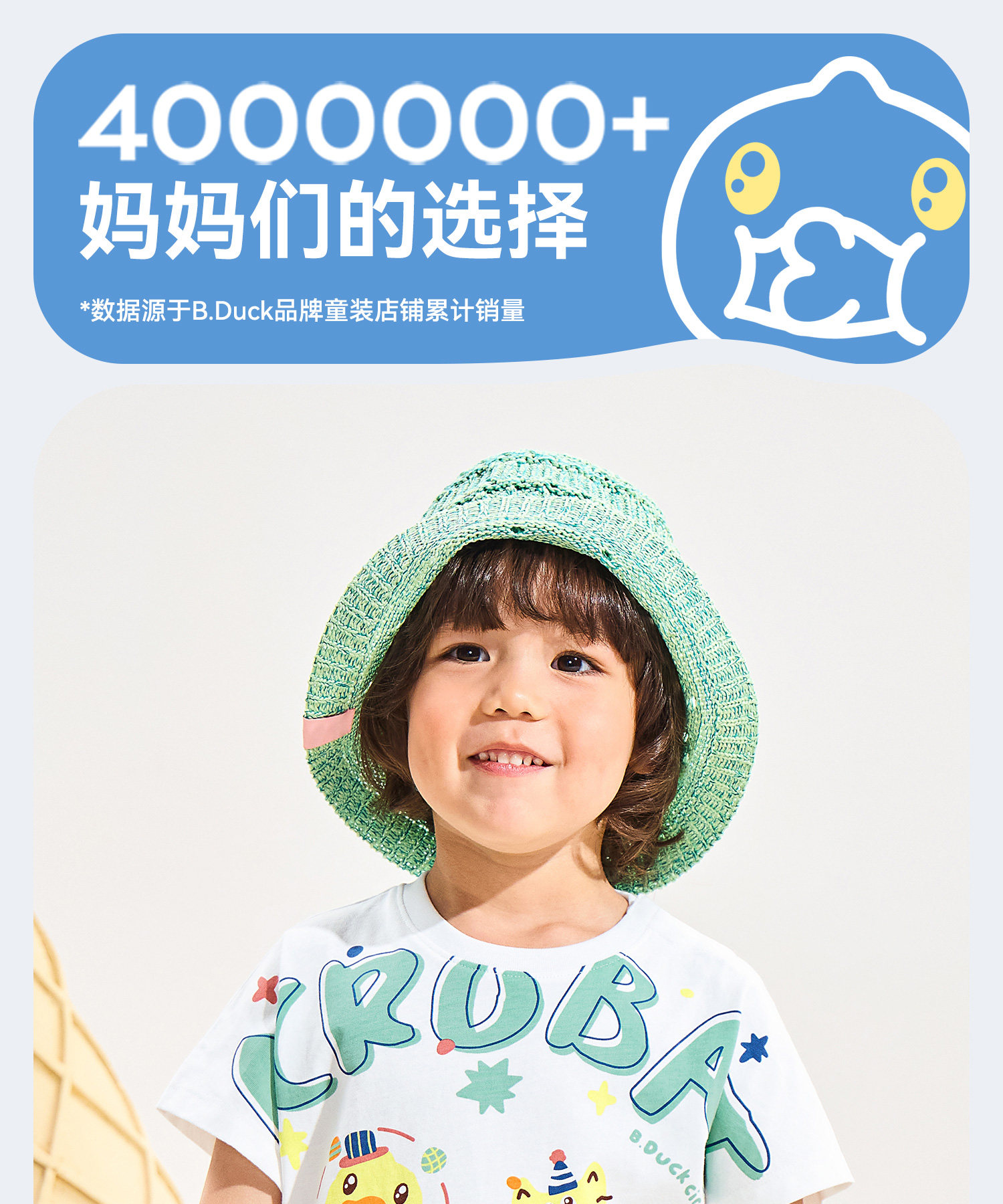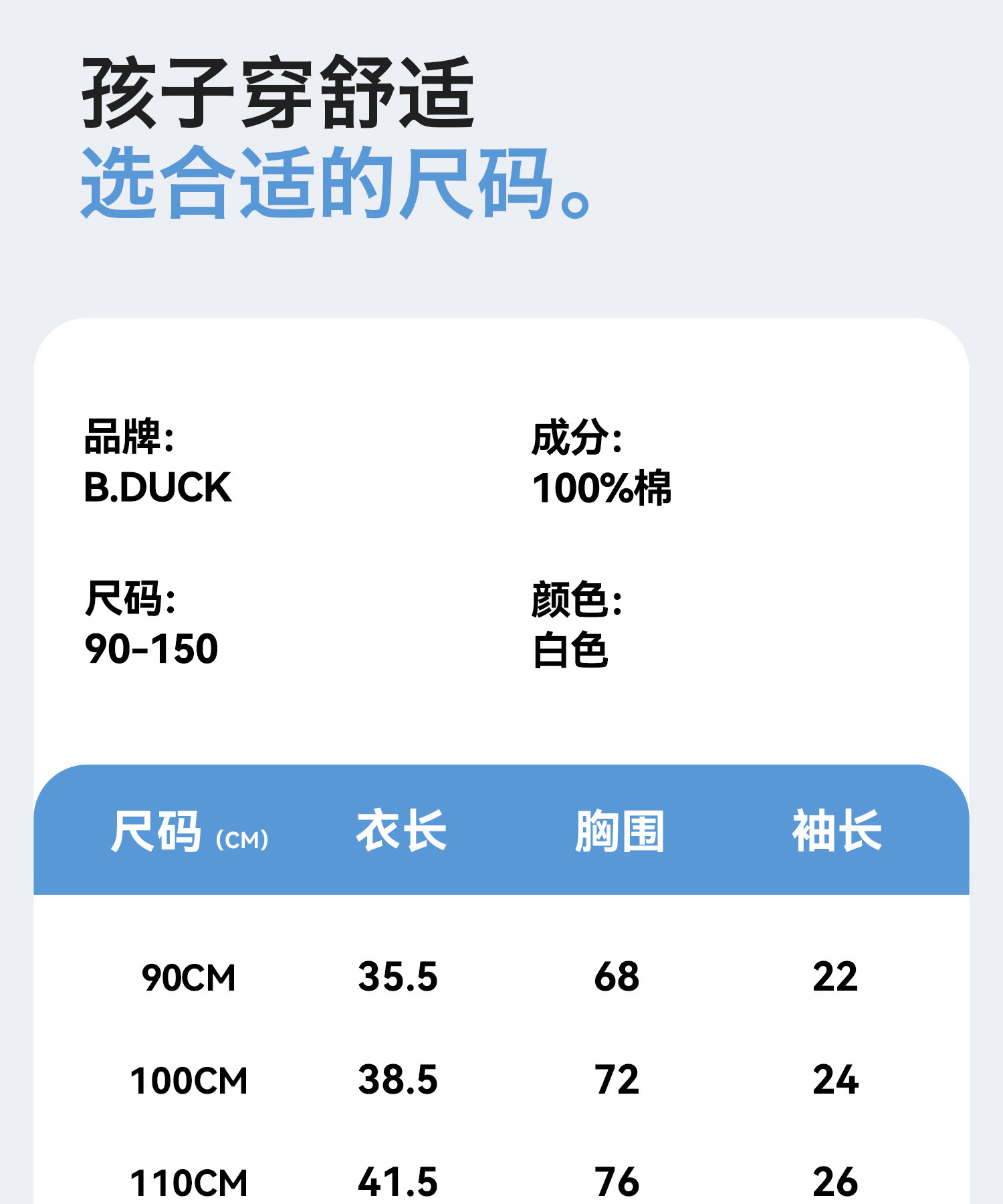 [驱蚊抗菌]bduck小黄鸭童装儿童纯棉T恤小男孩透气短袖夏款上衣90-150 BF2701097