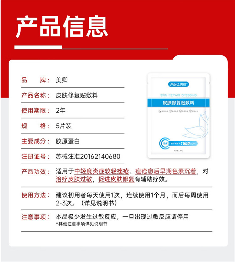 升级款】美卿白绷带胶原蛋白皮肤修复贴敷料 5片/盒