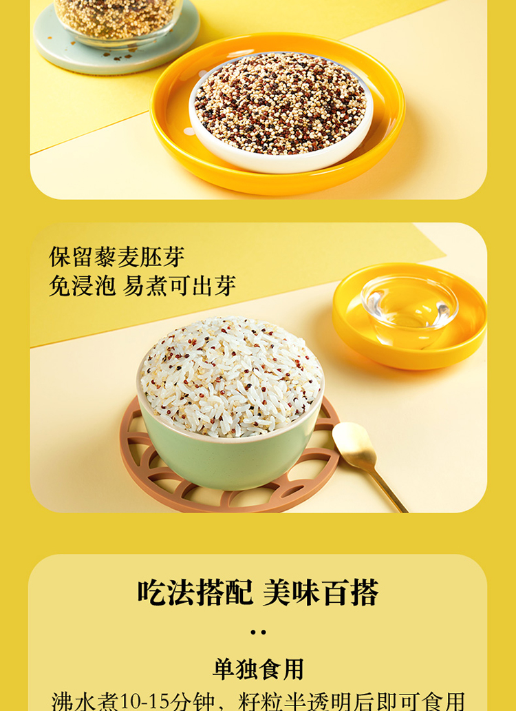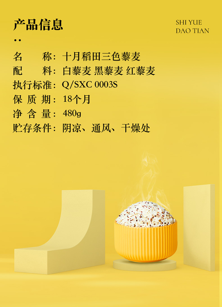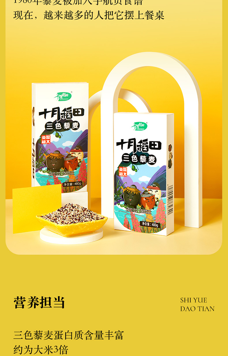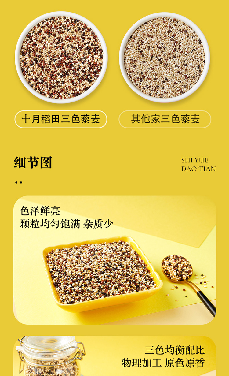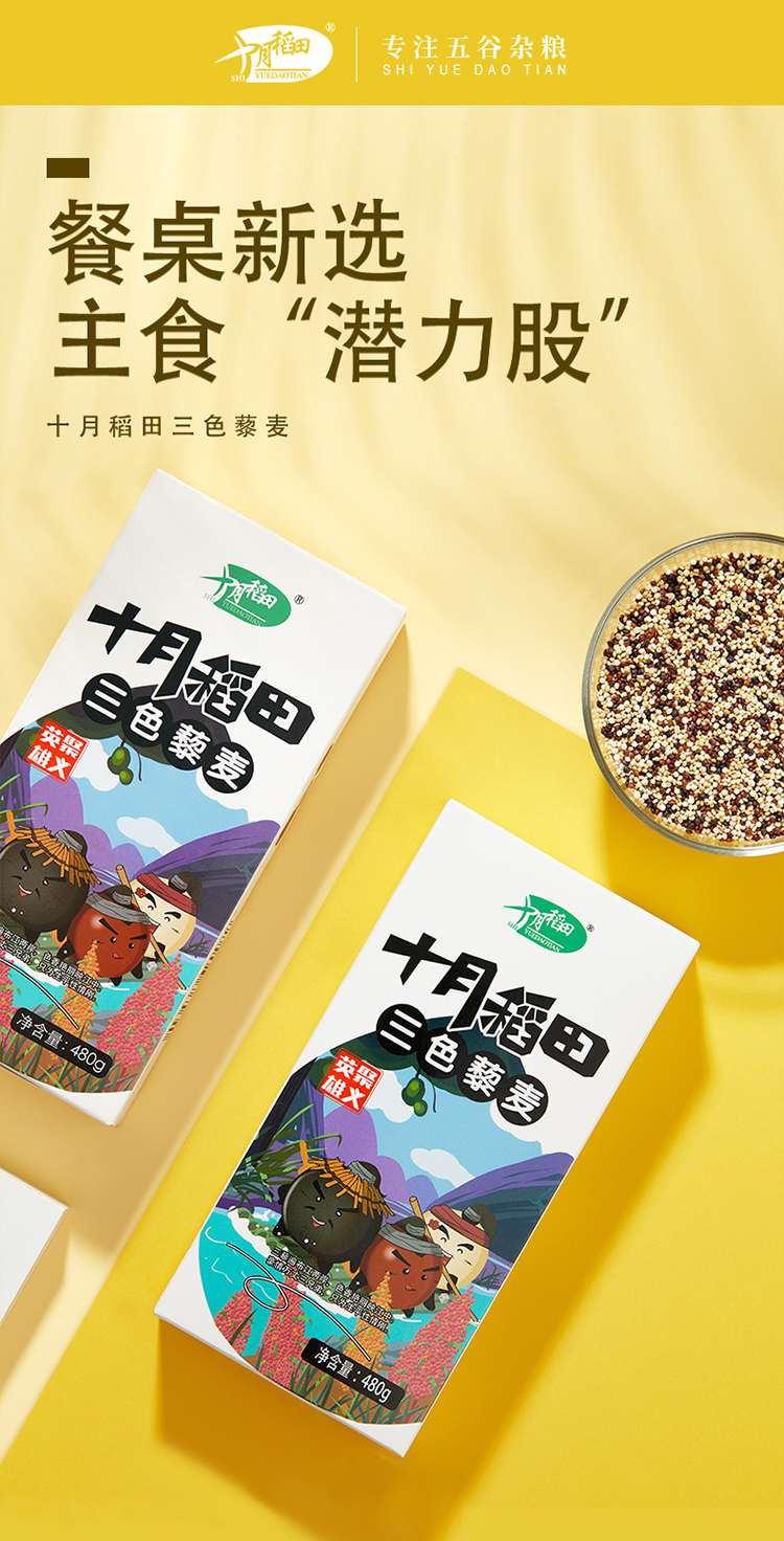 十月稻田 三色藜麦 (藜麦米 藜麦 黎麦 轻食 五谷杂粮 大米伴侣 粥米搭档 真空装)480g