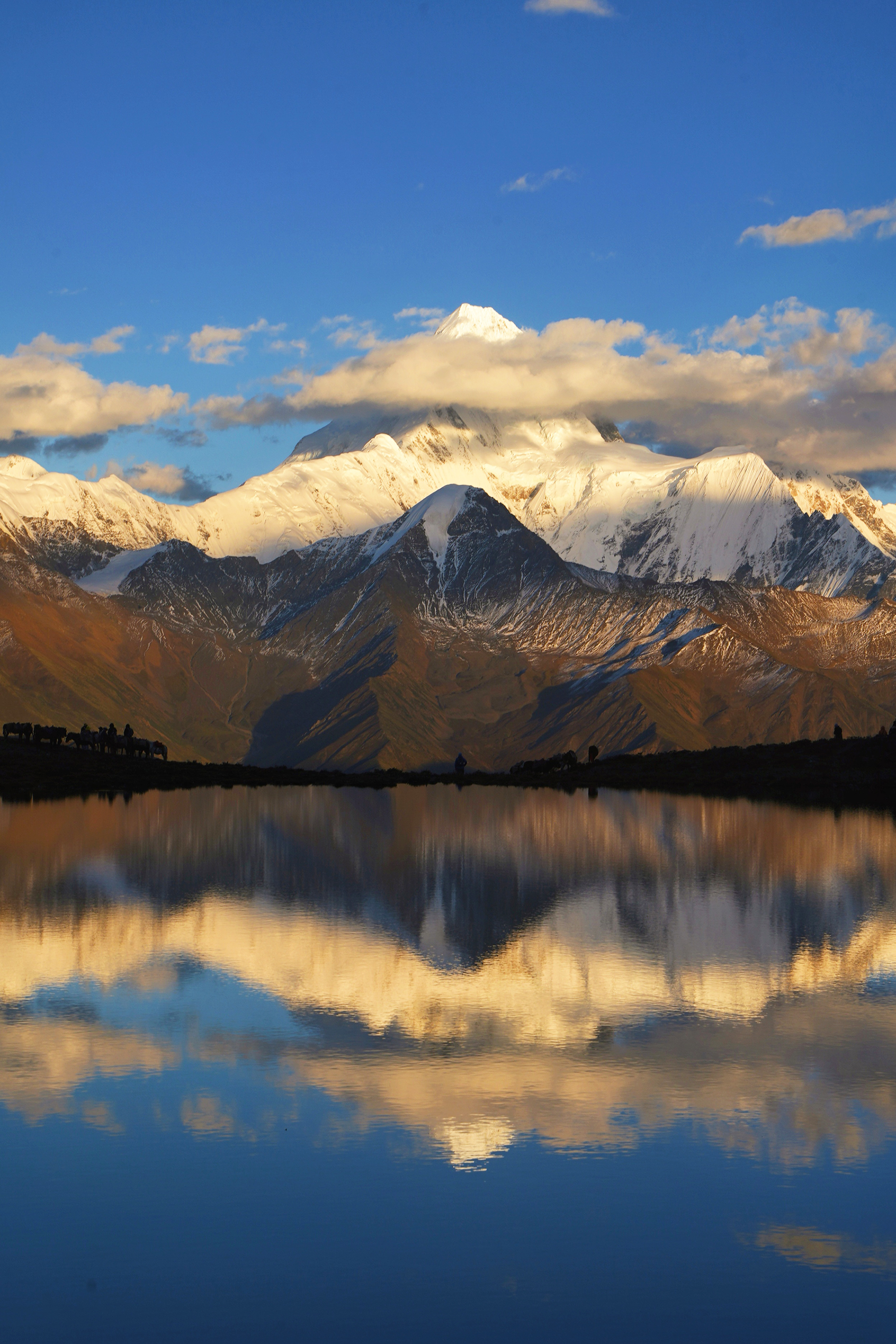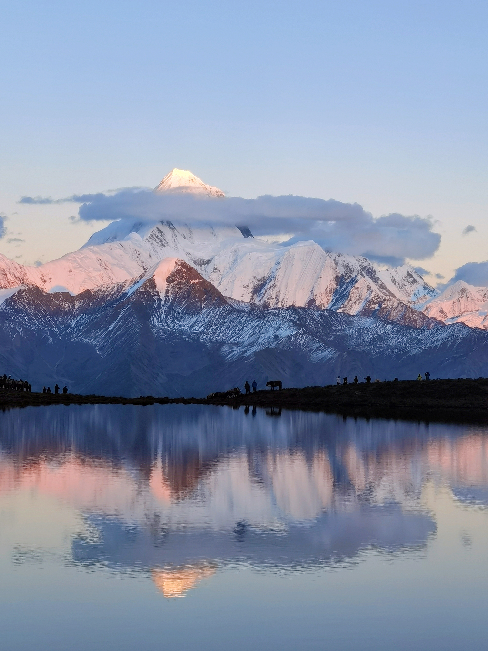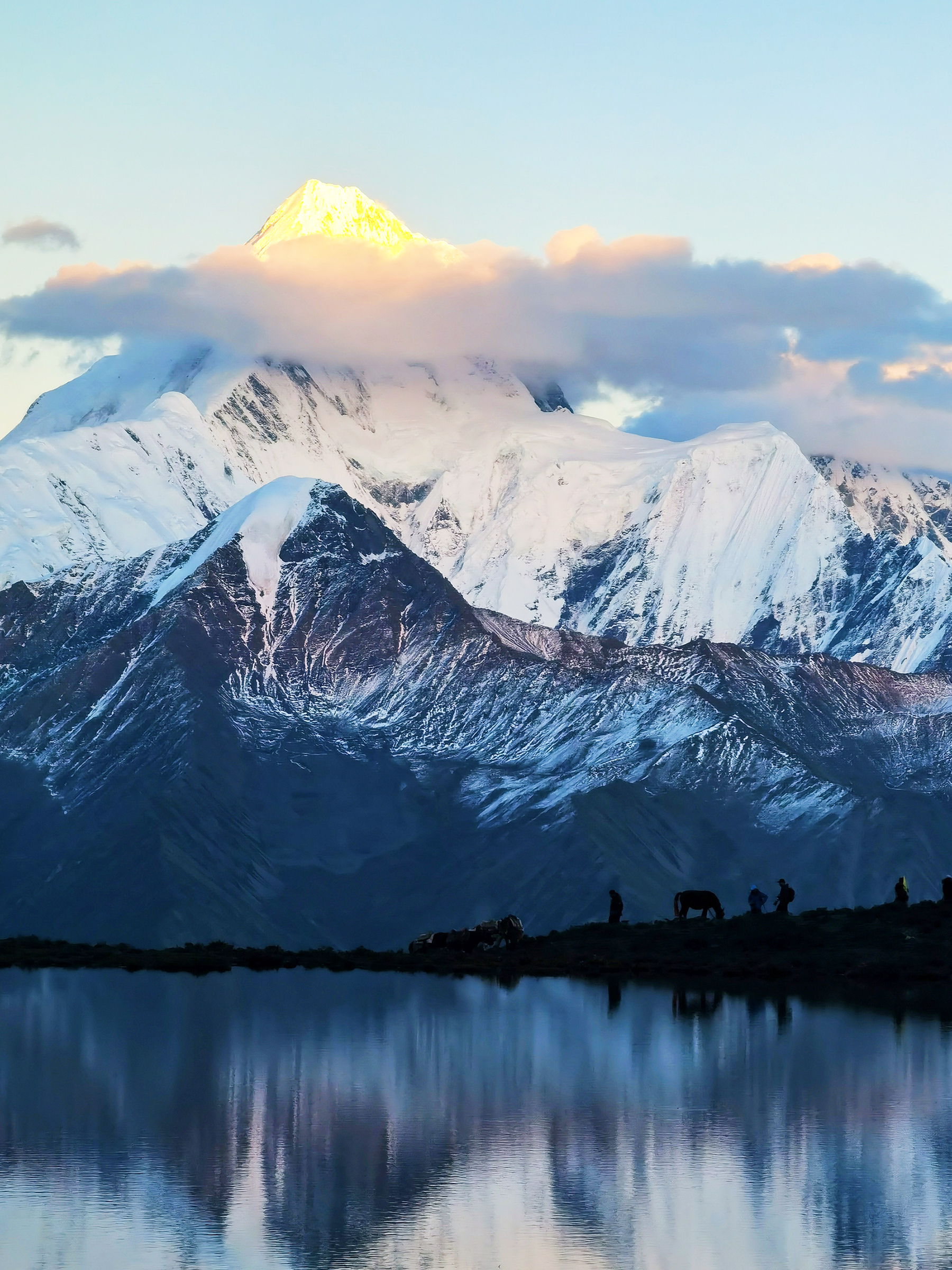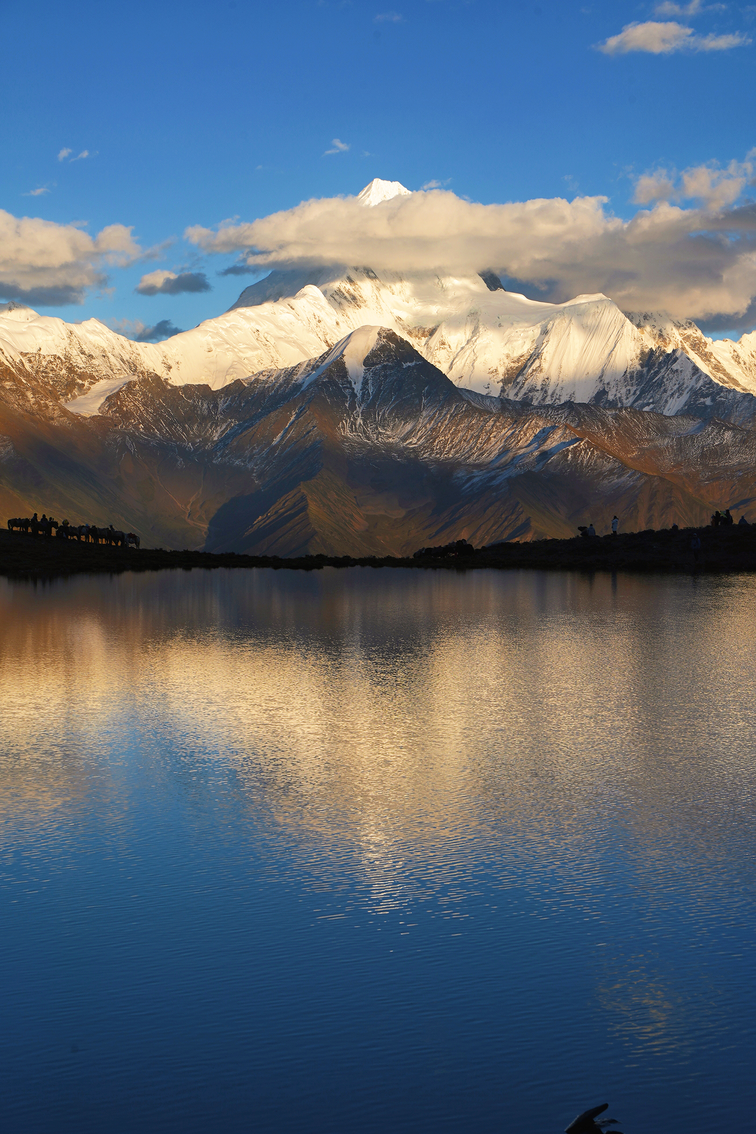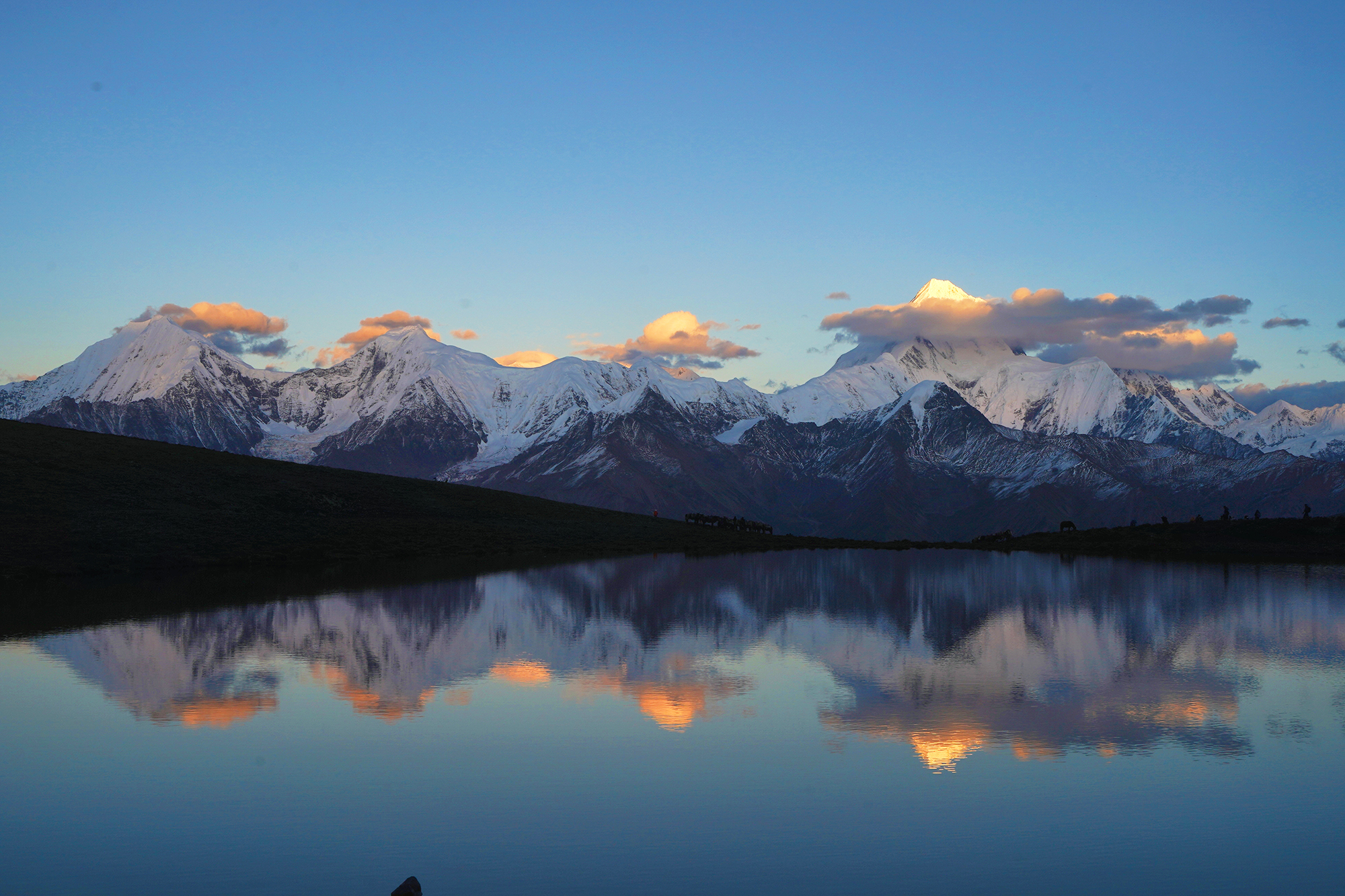 当天气允许,贡嘎群峰在海子中的倒影会非常漂亮,