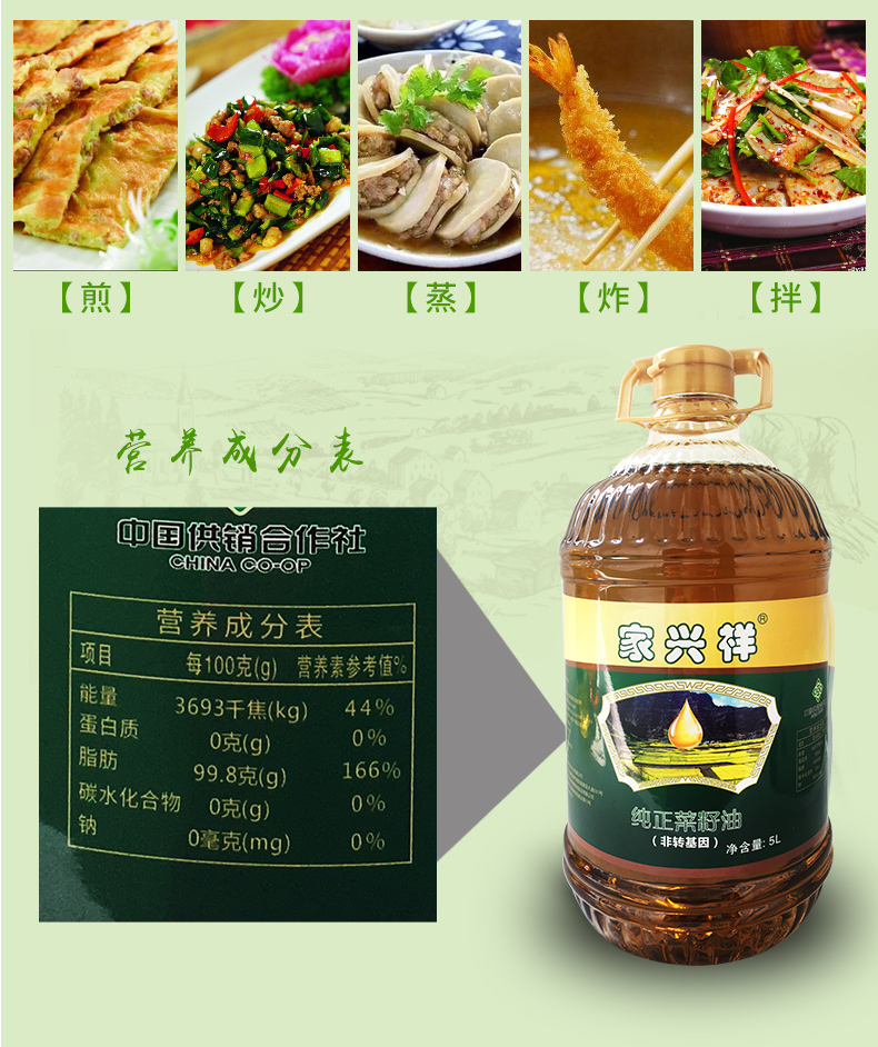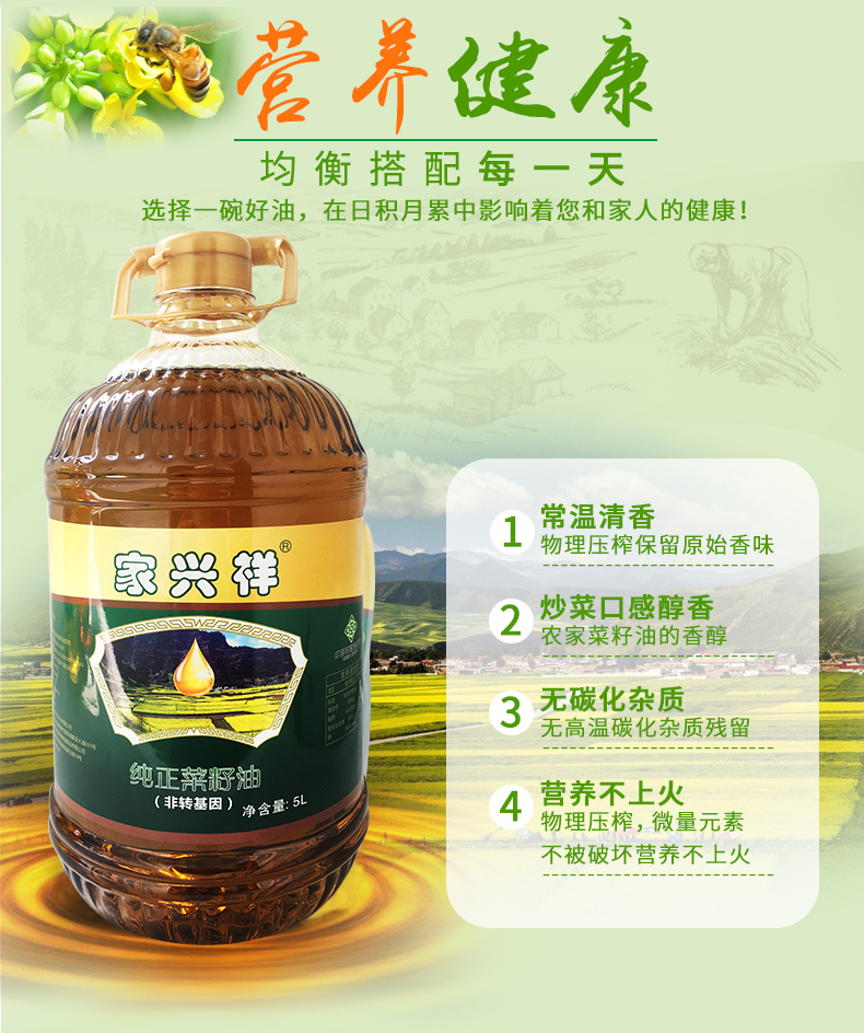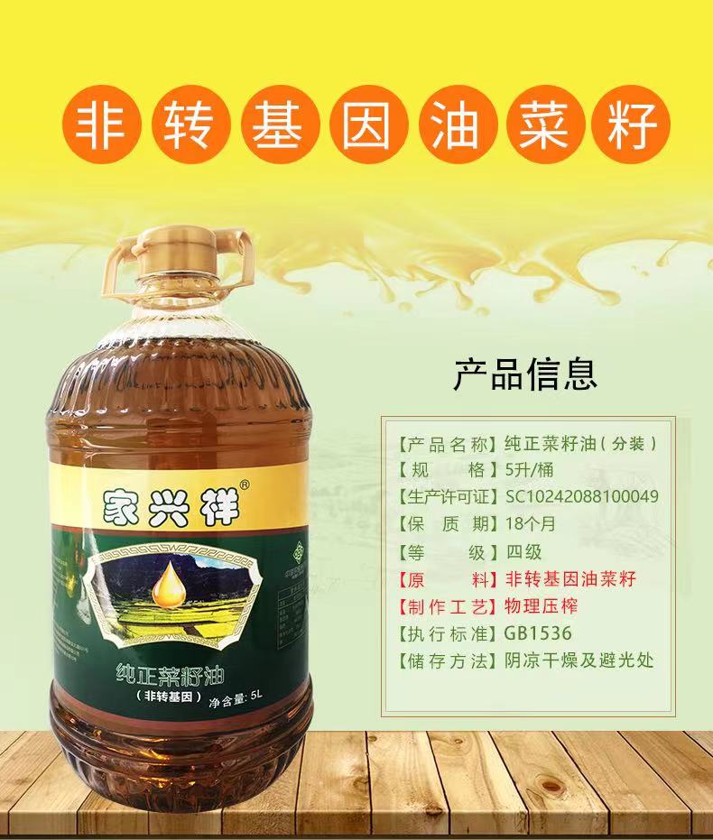 恩施家兴祥纯正浓香菜籽油(二级)5L/桶