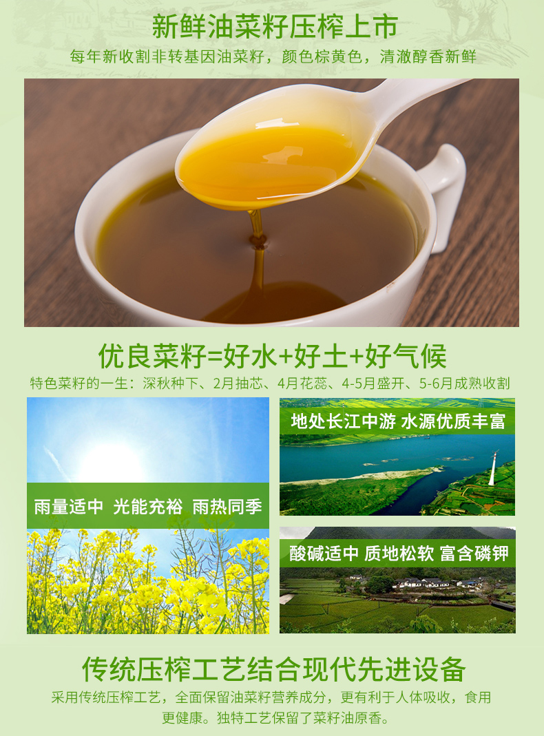 恩施西谷压榨菜籽油5L/桶
