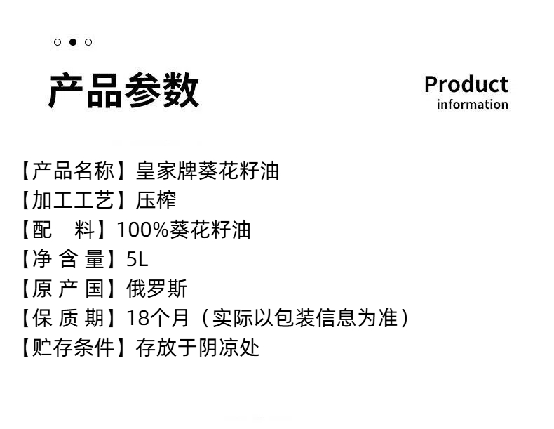 俄罗斯进口皇家牌葵花籽油5L/桶