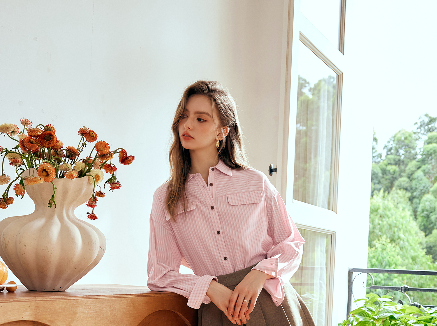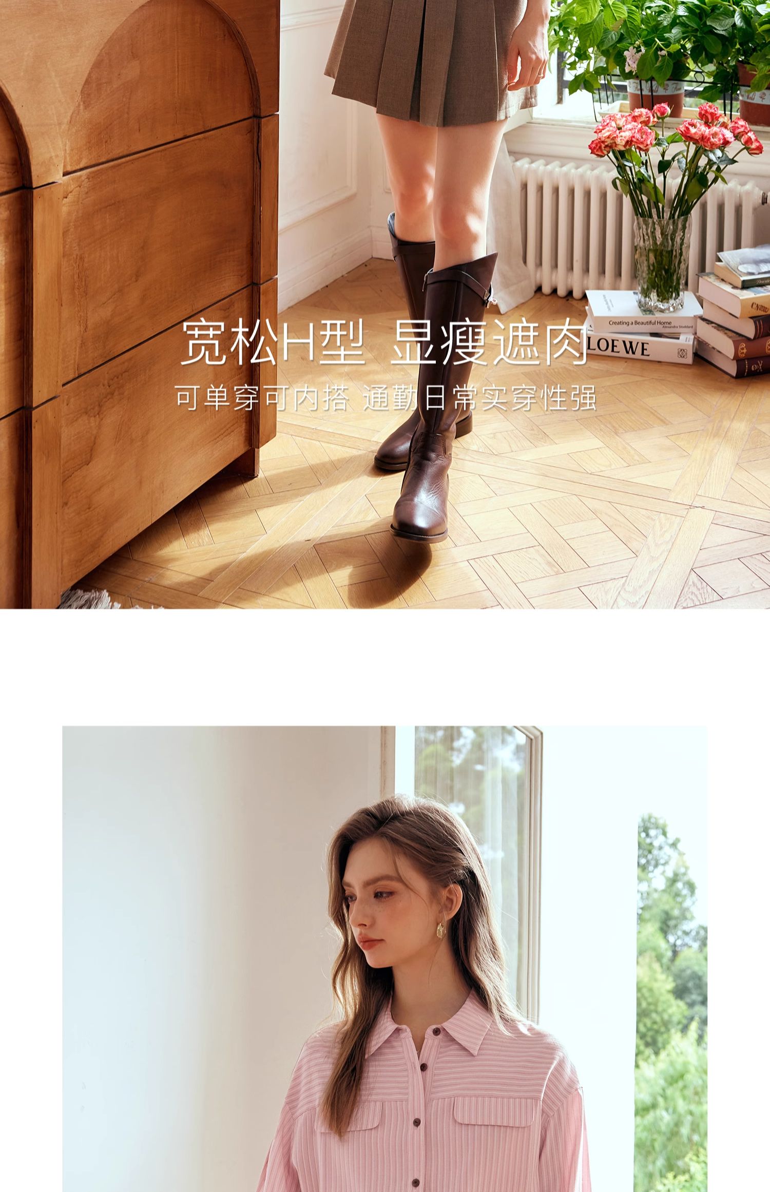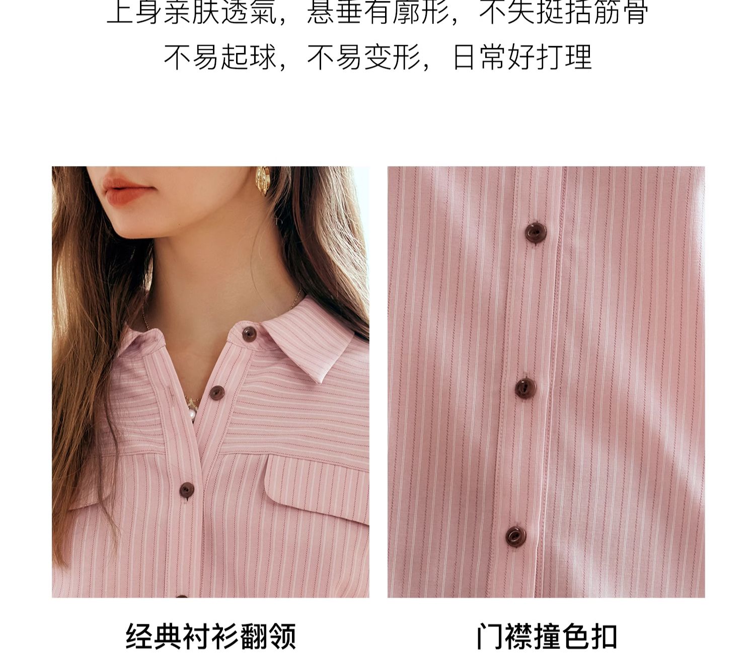 OLrain欧芮儿条纹长袖衬衫女秋季2024年新款通勤气质显瘦百搭衬衣
