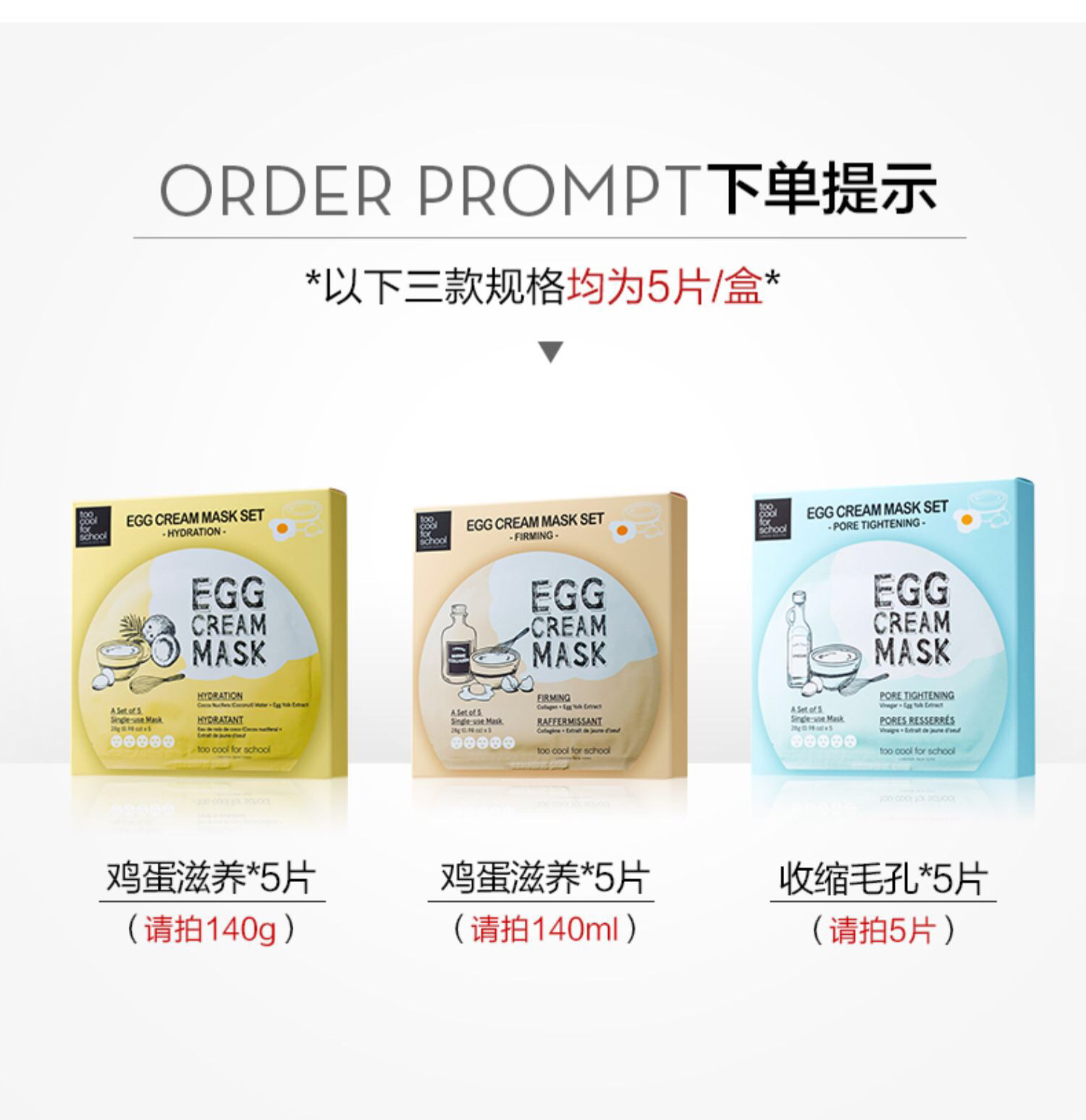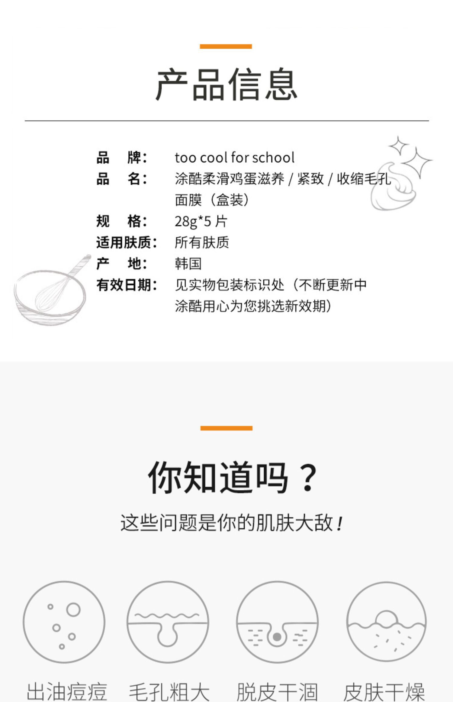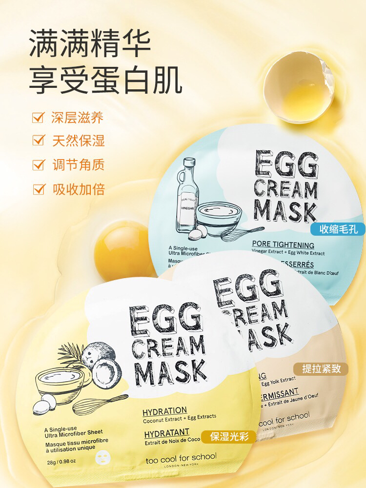 韩国too cool 涂酷鸡蛋面膜补水保湿提拉紧致5片装-会员6折
