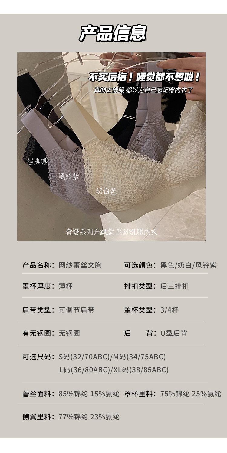 【清仓大促】洁丽雅无钢圈蕾丝美背文胸