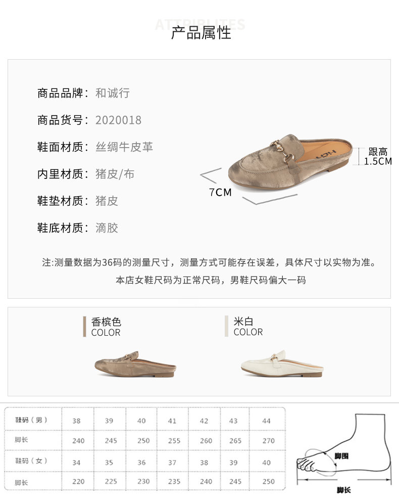 和诚行 2025夏季新款真皮法式平底单鞋女百搭通勤包头拖鞋2020018