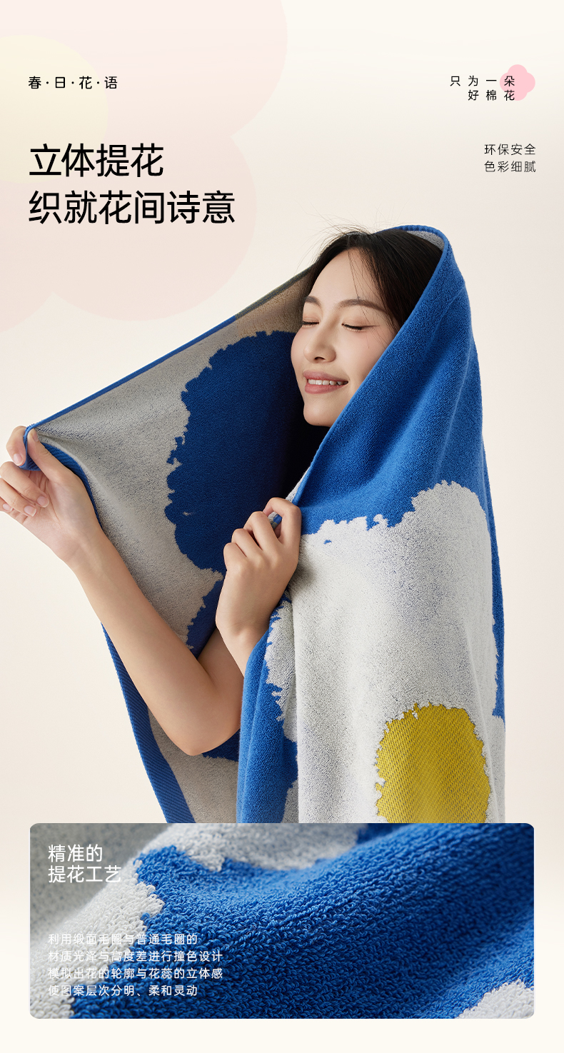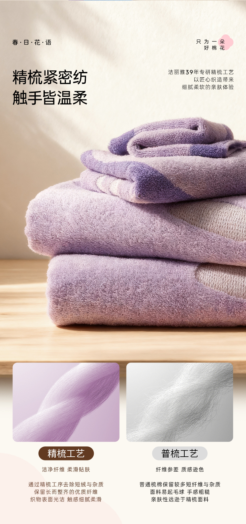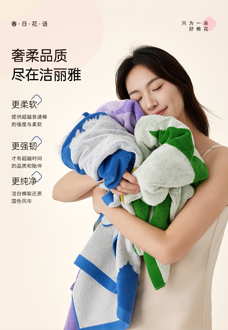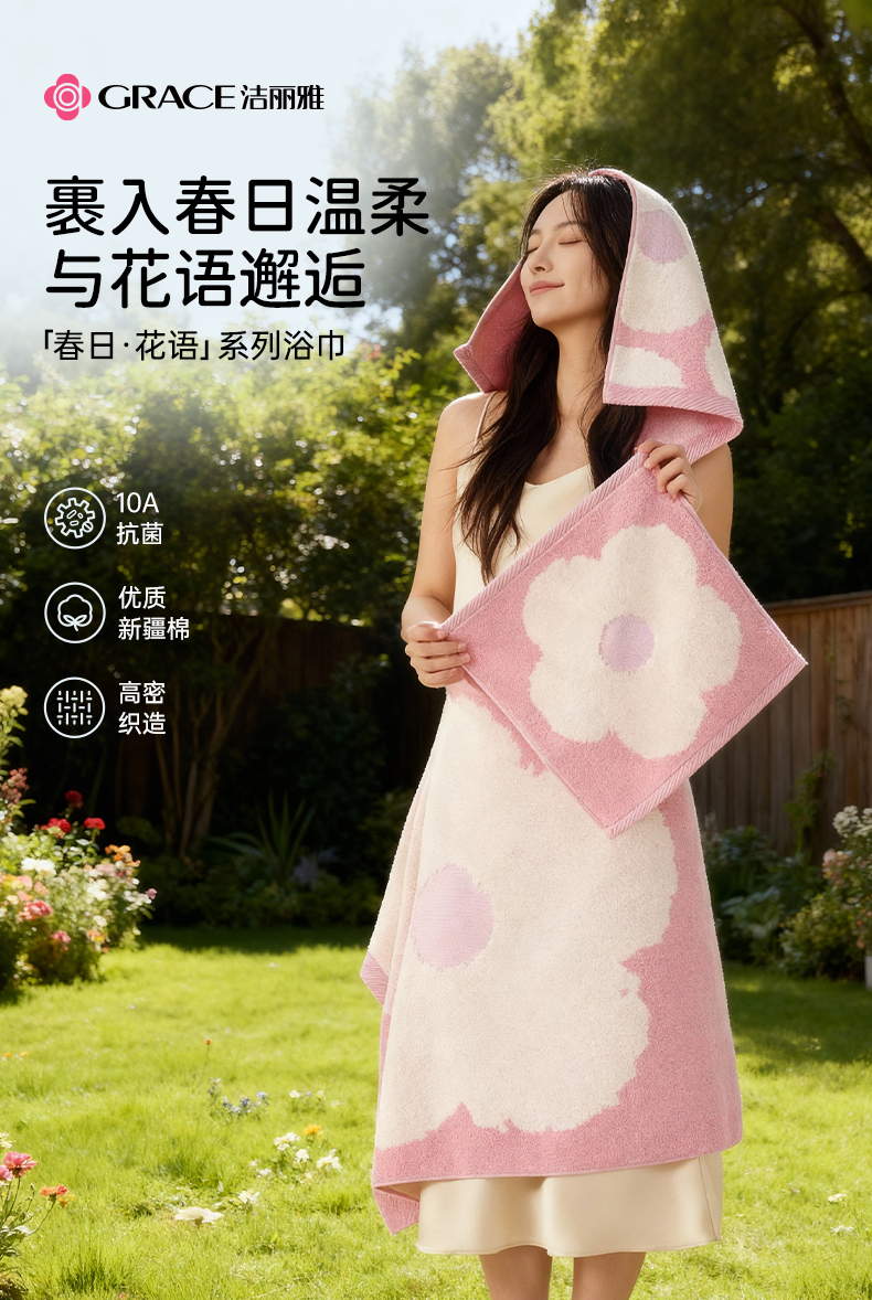 洁丽雅春日花语方巾毛巾浴巾纯棉家用洗脸洗澡易拧干不易掉毛吸水
