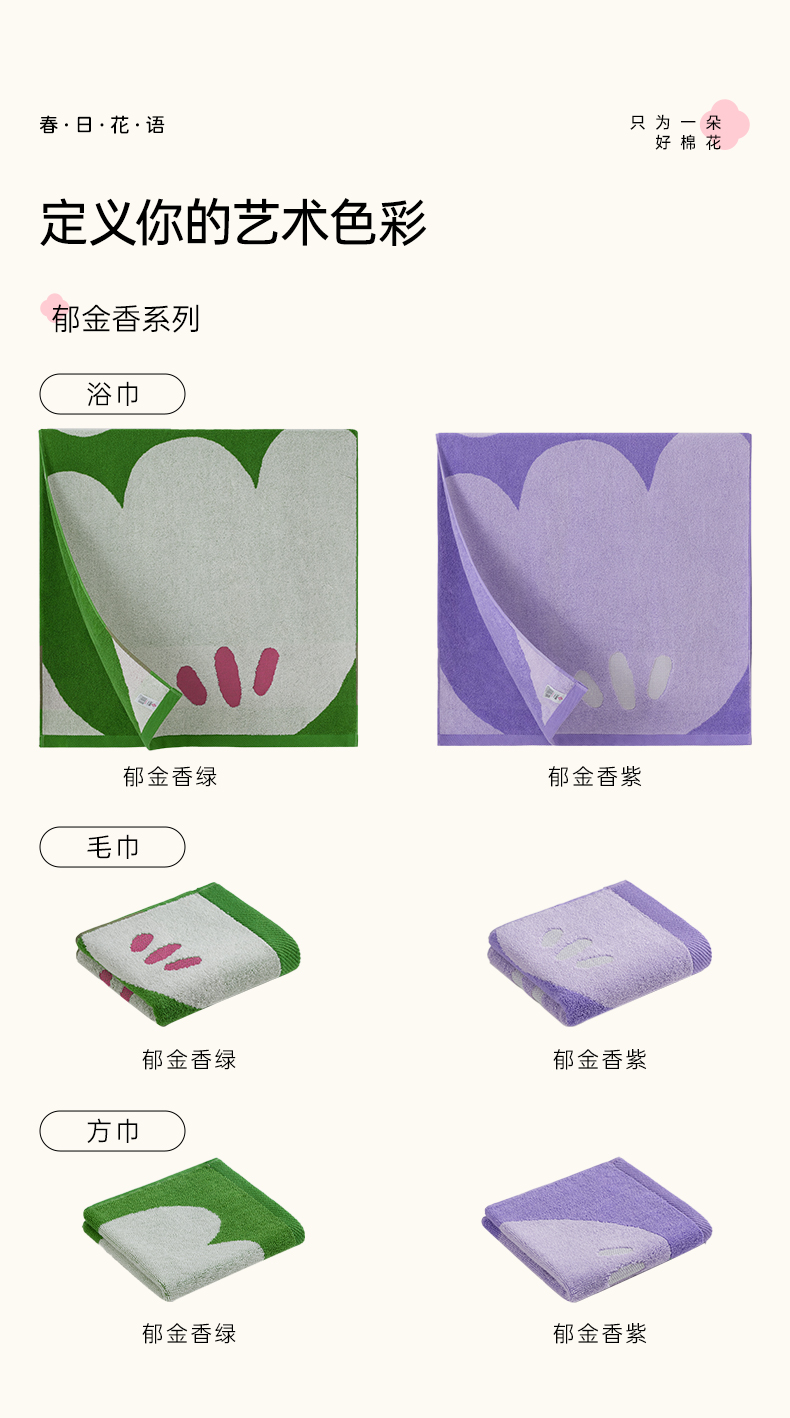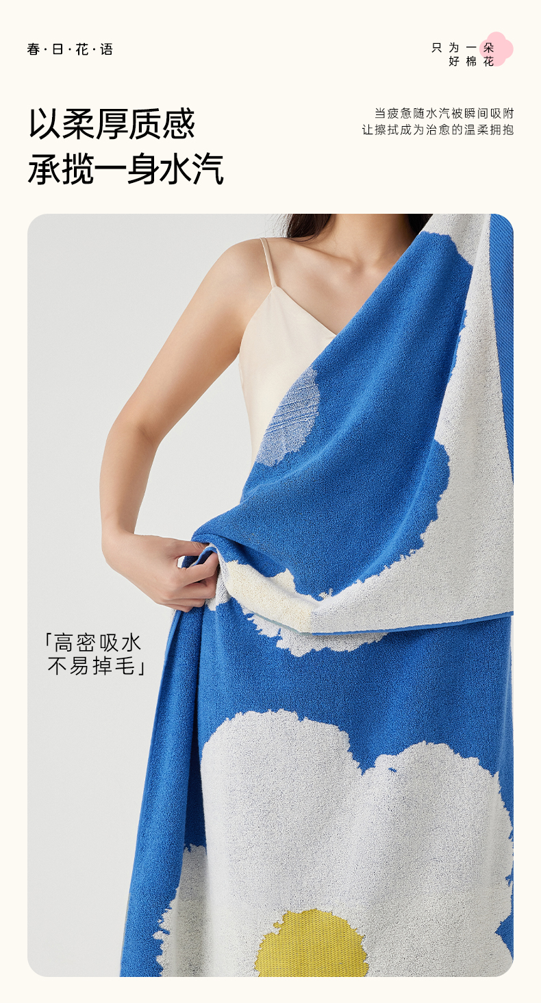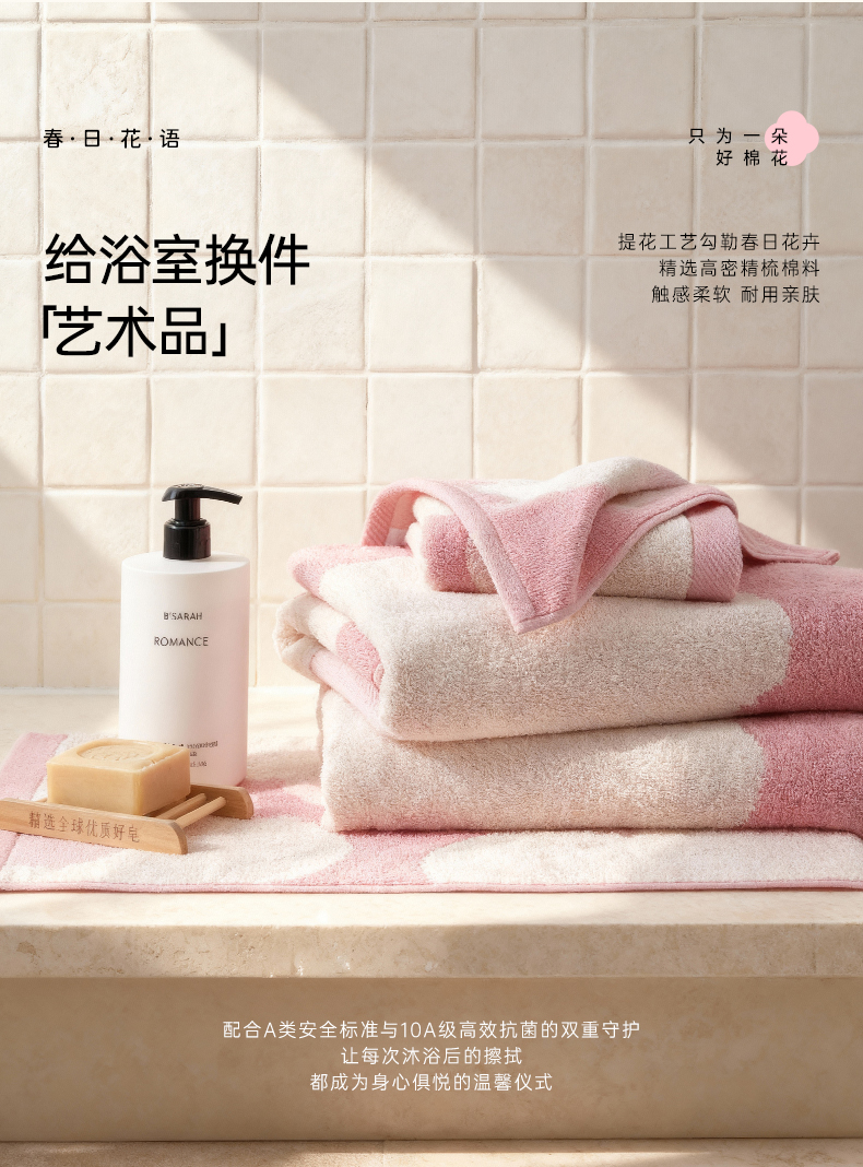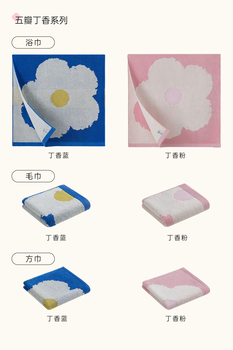 洁丽雅春日花语方巾毛巾浴巾纯棉家用洗脸洗澡易拧干不易掉毛吸水