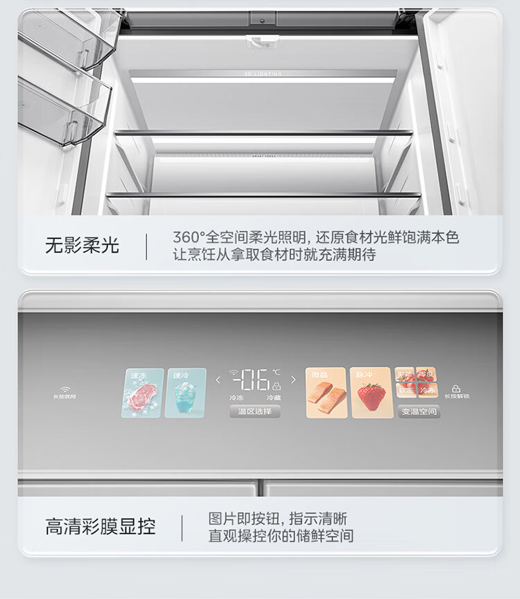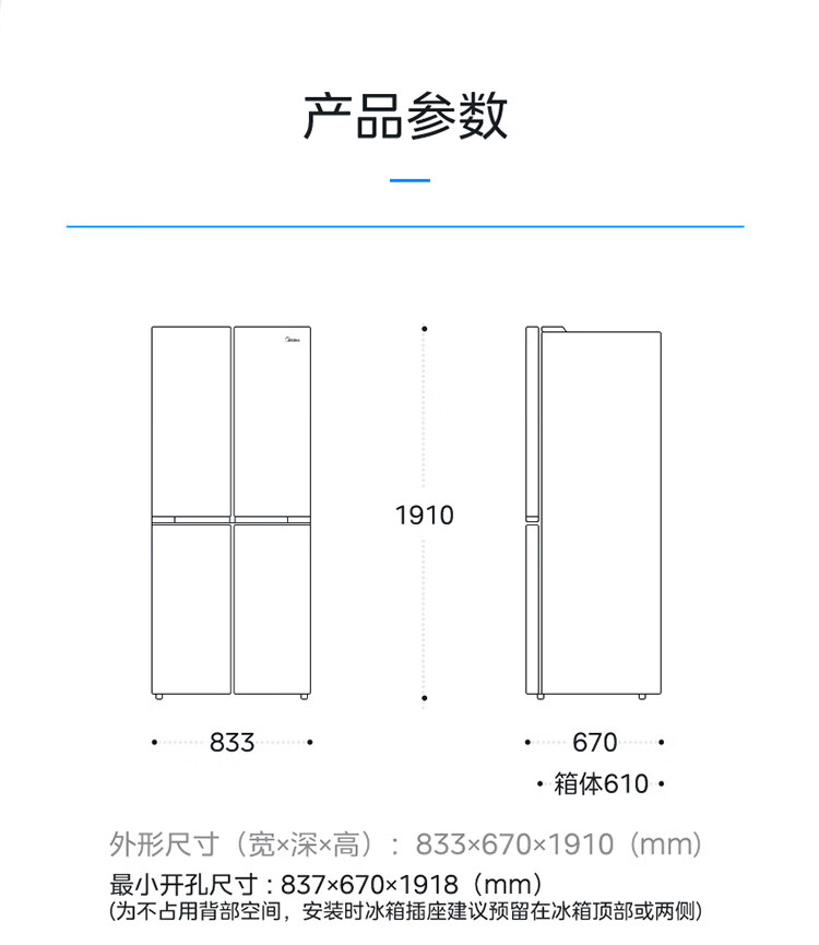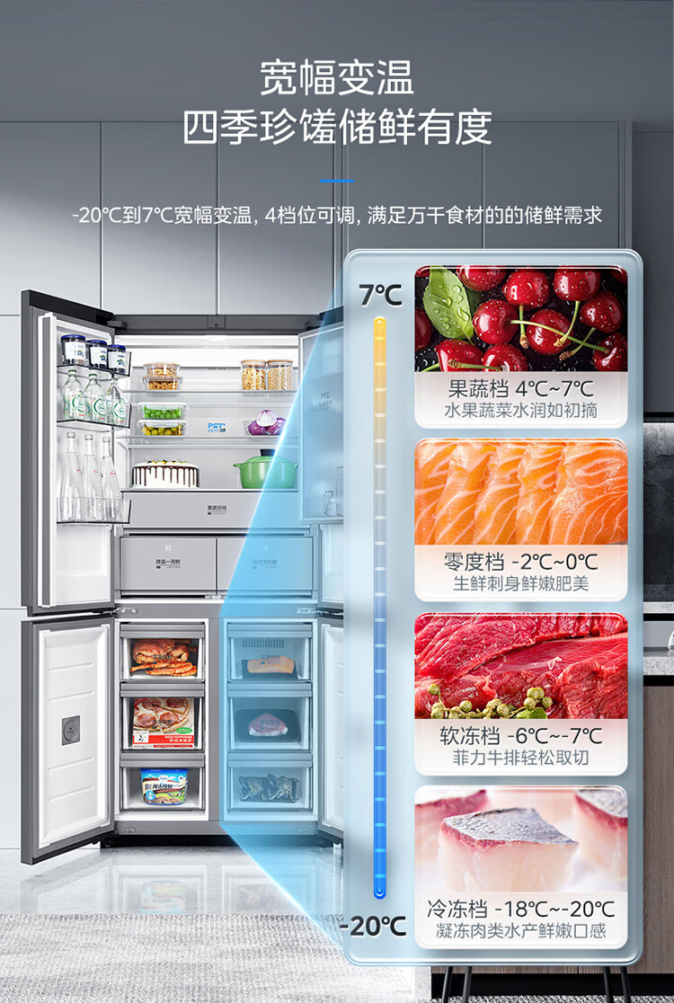 美的(Midea)冰箱651升十字四门微晶一周鲜净化除菌保鲜速冻智能家用微晶大冰箱BCD-651WSGPZMA钻影白