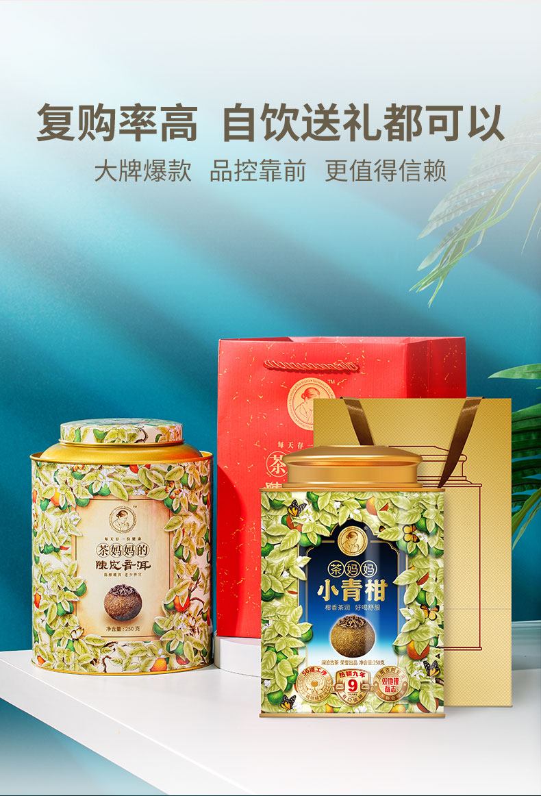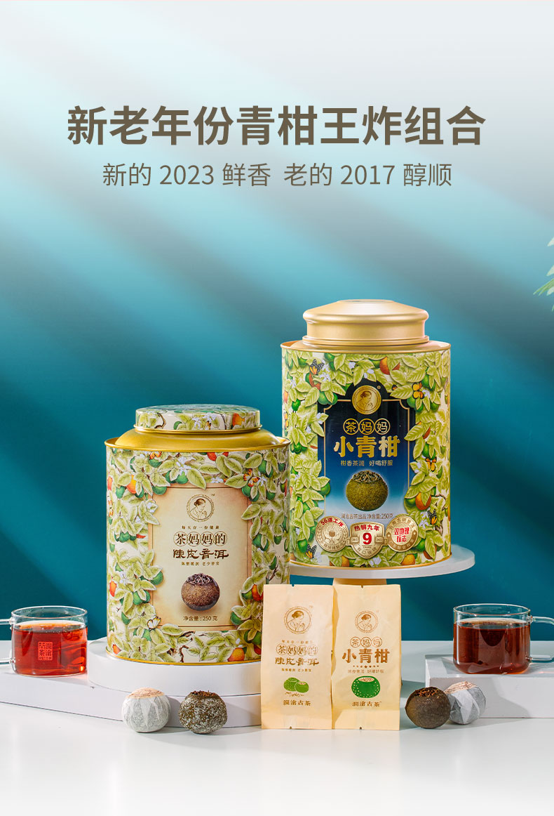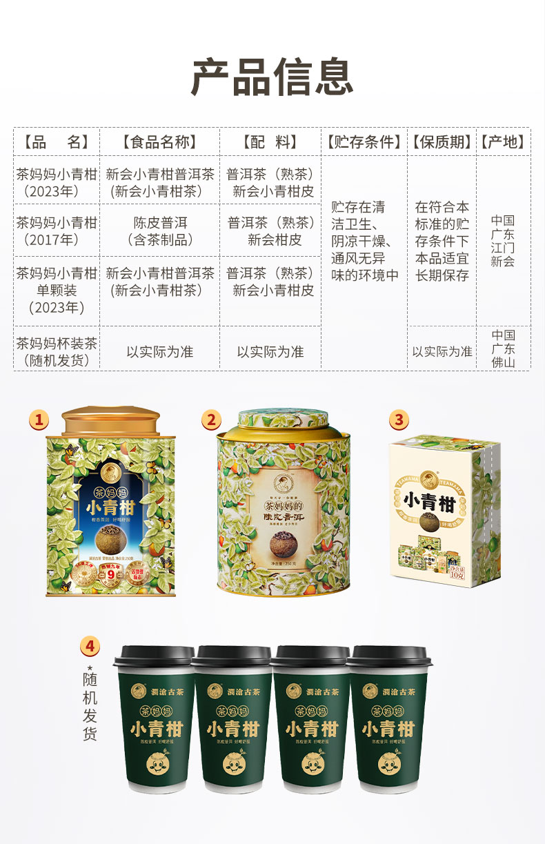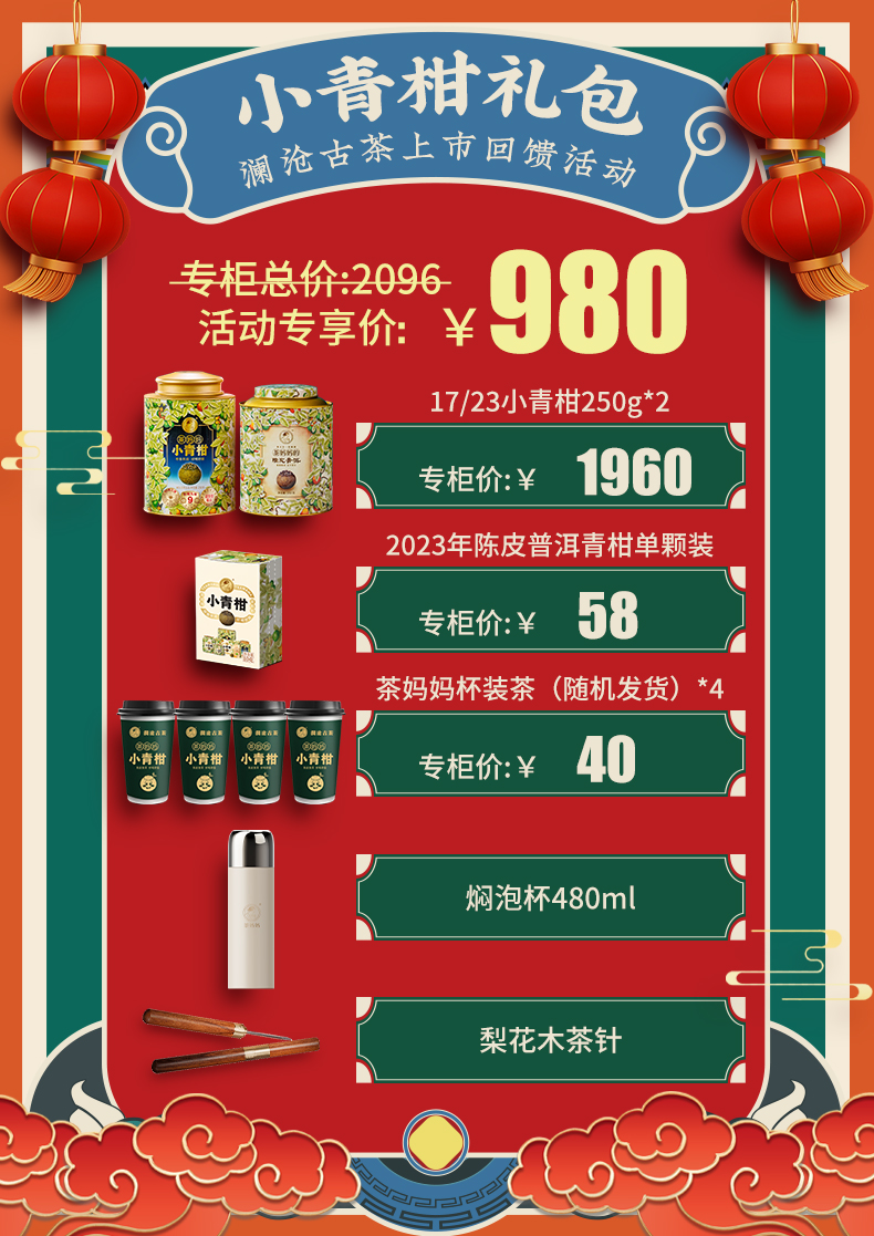 【上市狂欢年货节】澜沧古茶2017年茶妈妈小青柑250g+2023年小青柑250g+青柑单颗装+杯装茶*4杯+焖泡杯480ml小青柑礼包