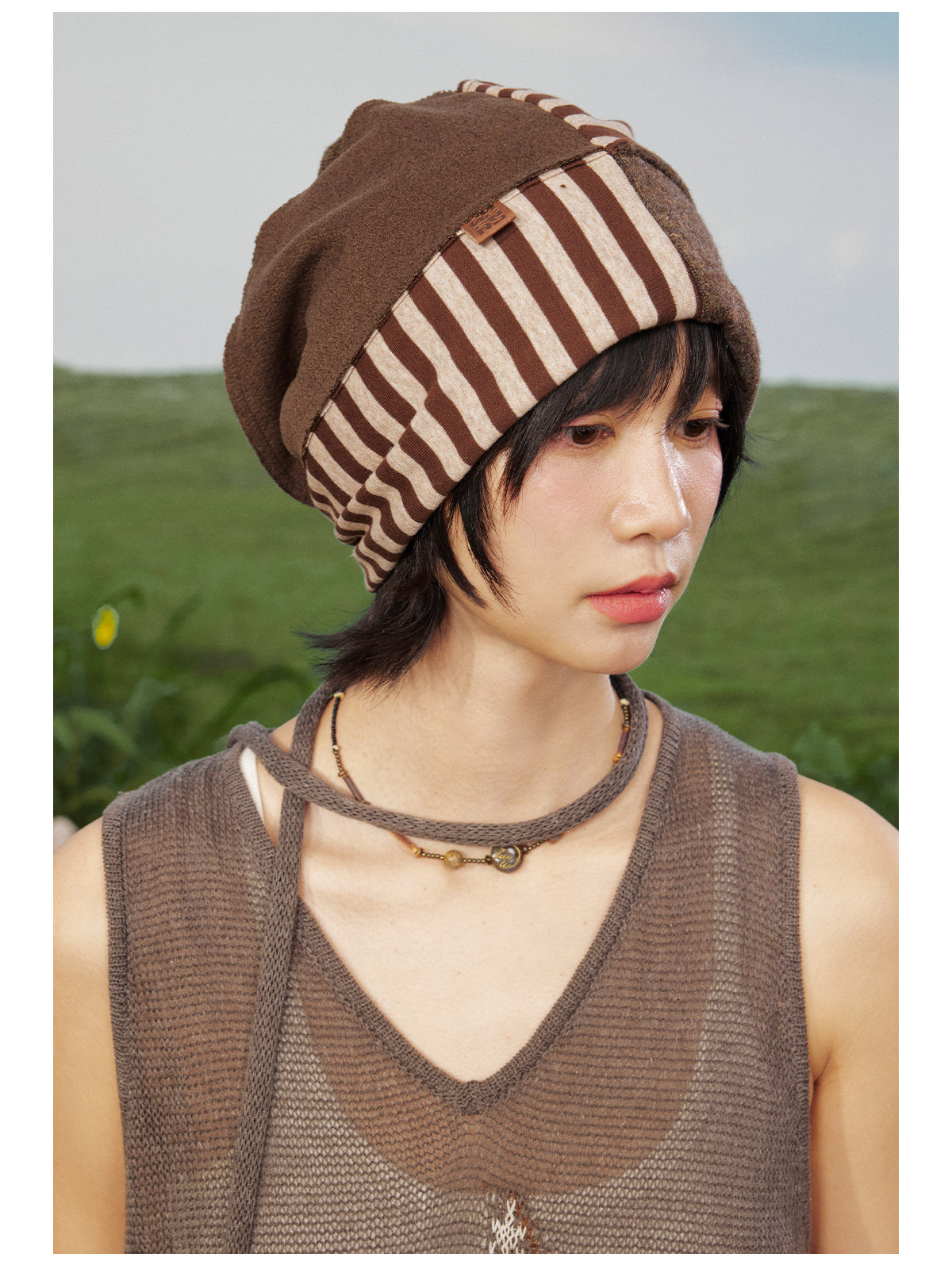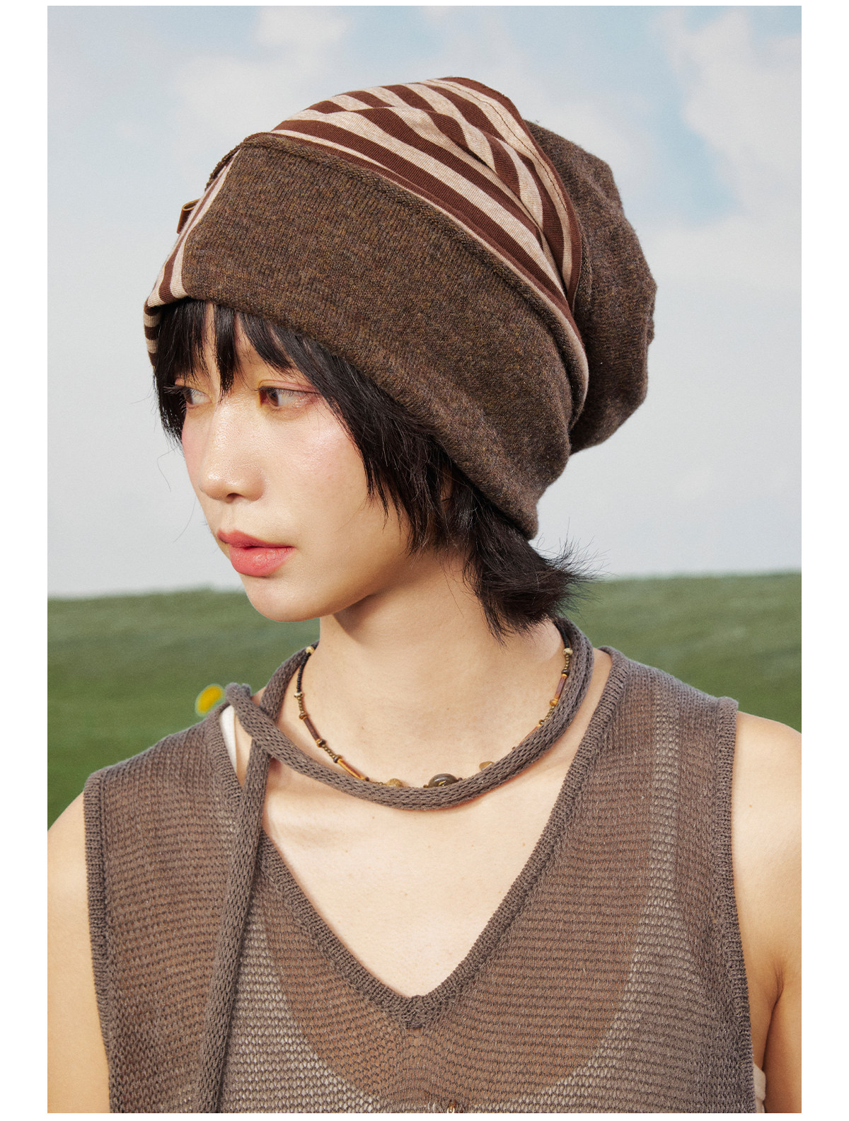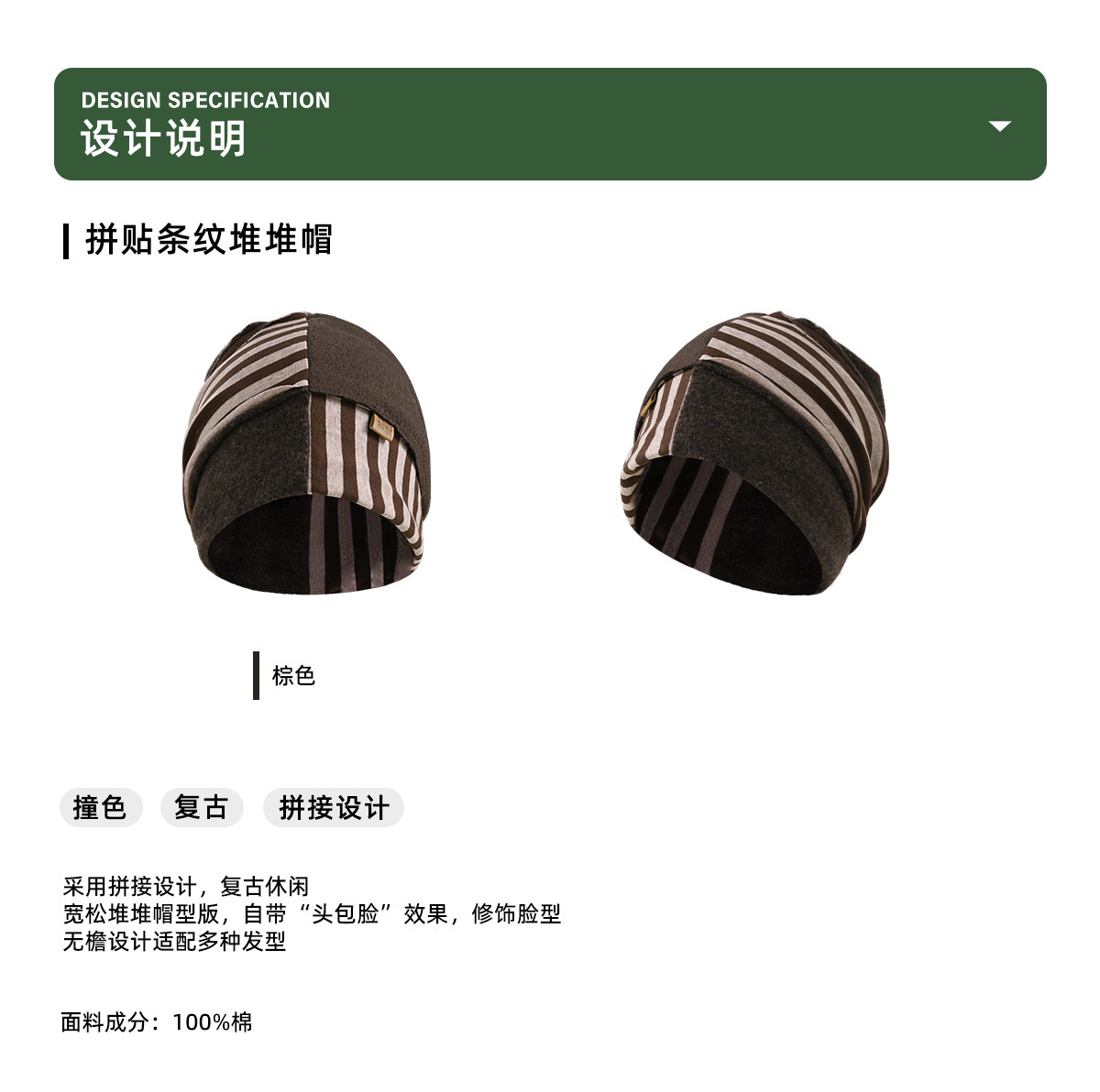 早乙女惠子saotome/STMPSMZ211614/拼贴条纹堆堆帽