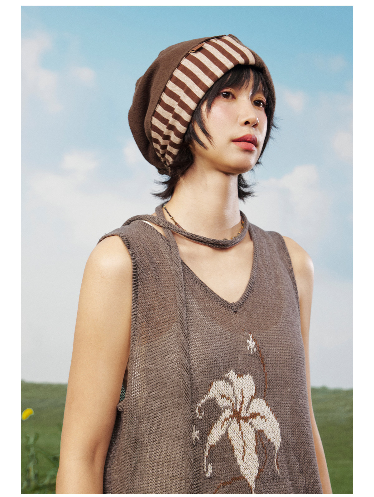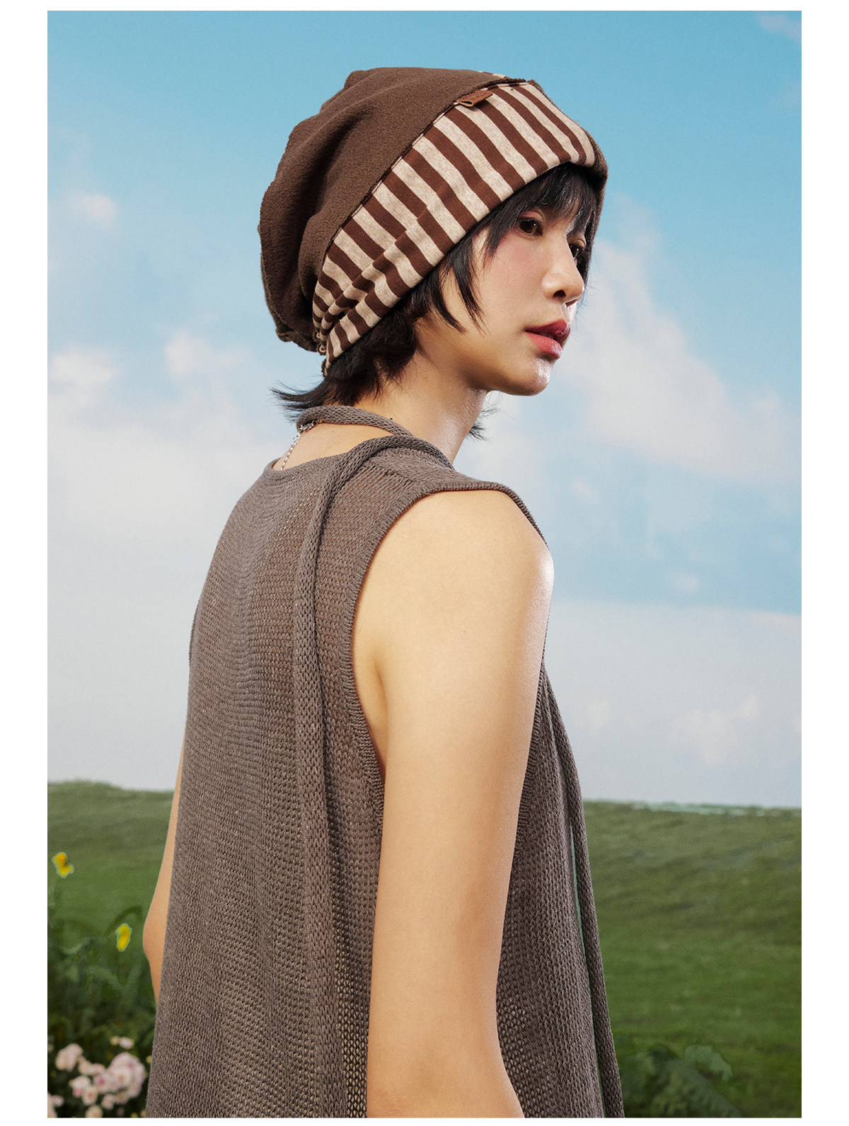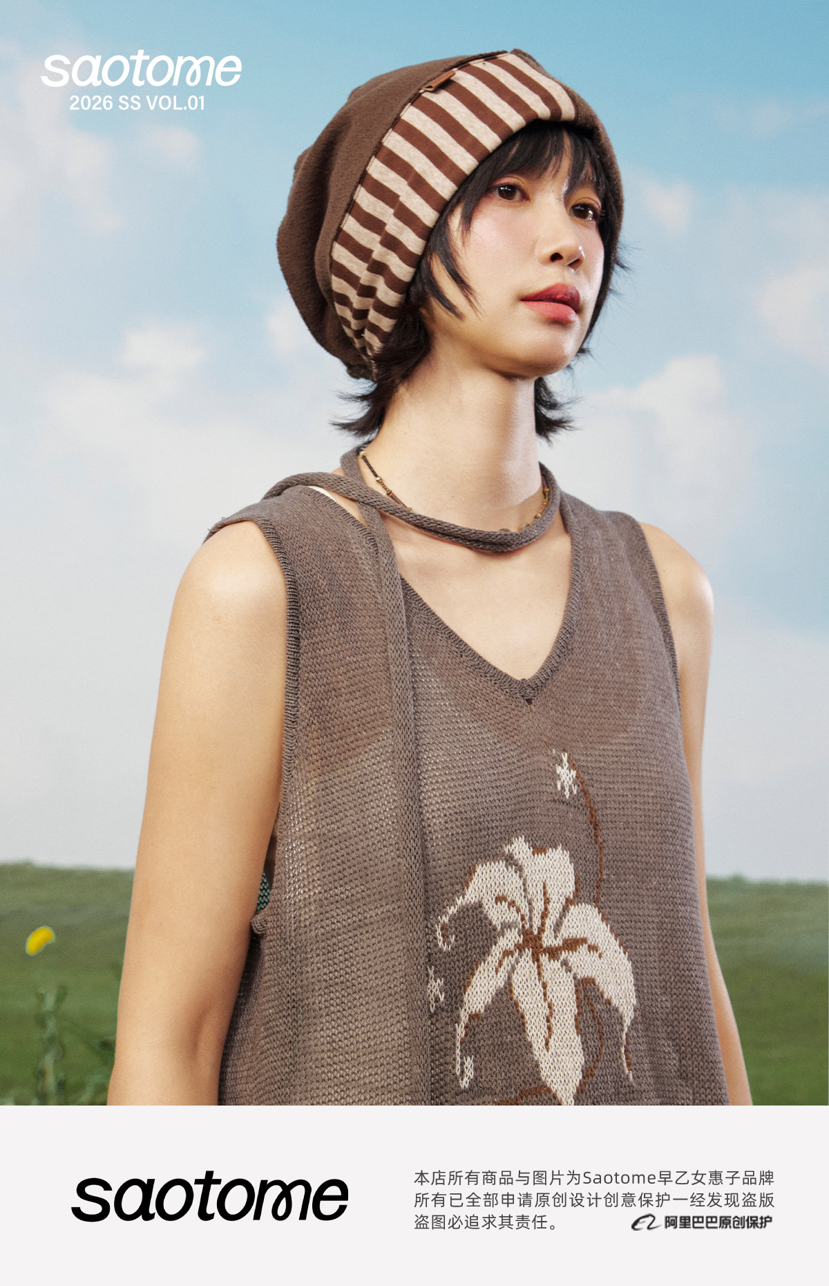 早乙女惠子saotome/STMPSMZ211614/拼贴条纹堆堆帽